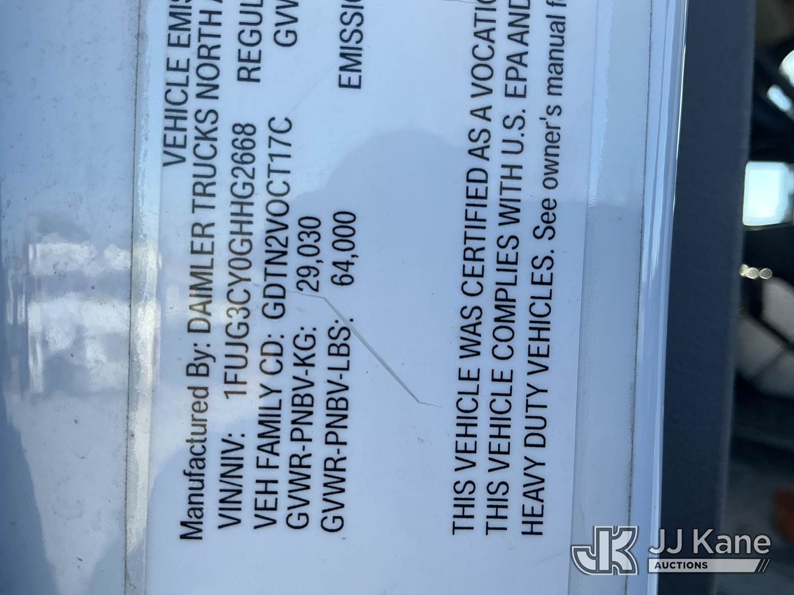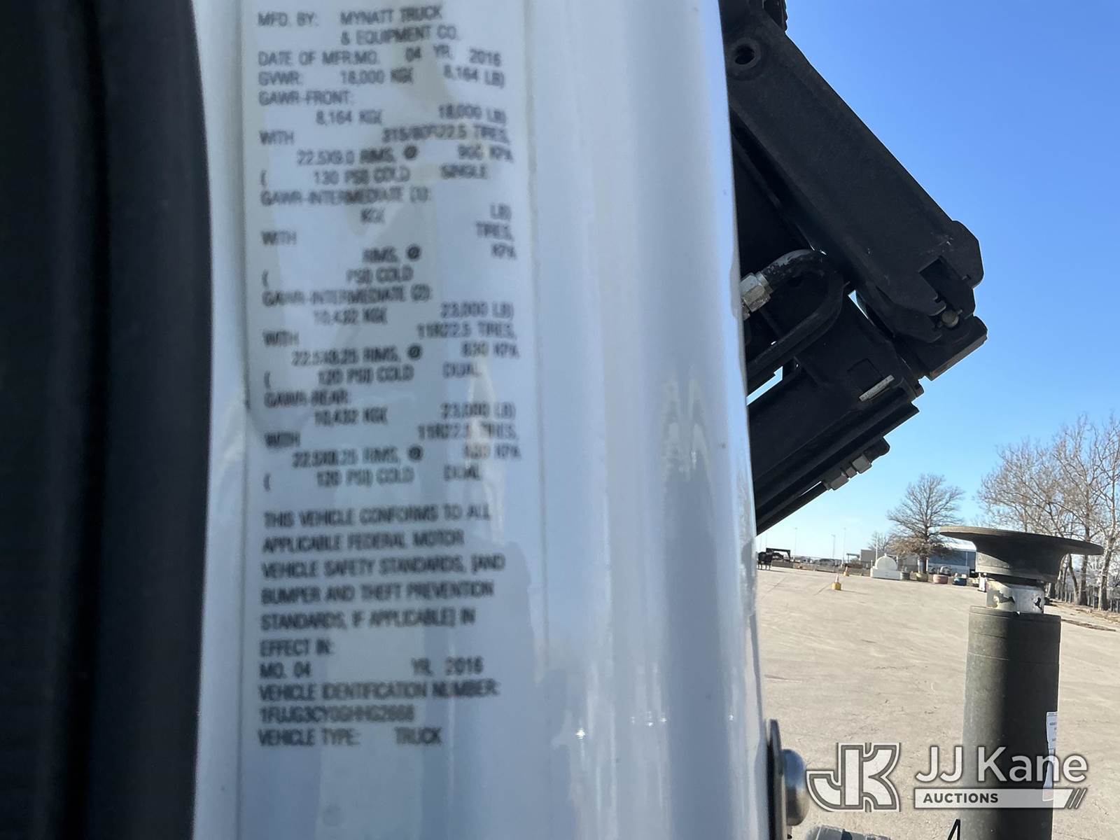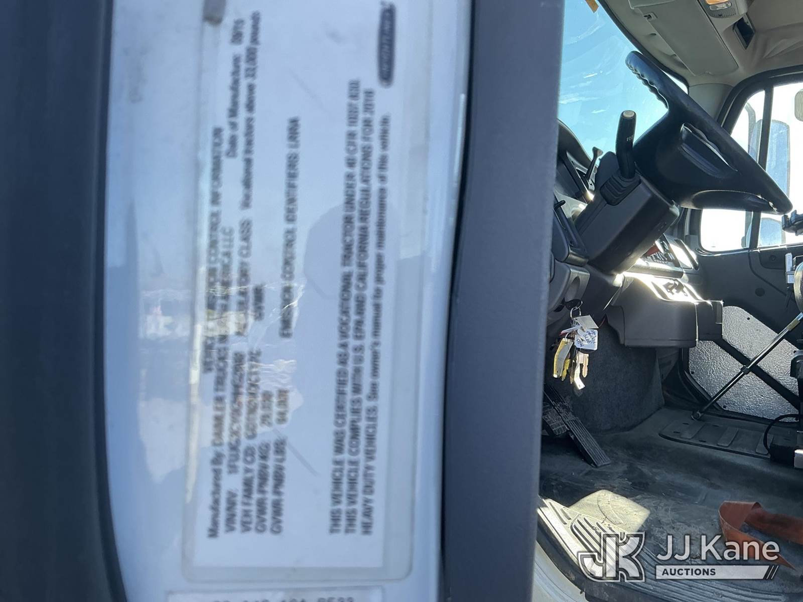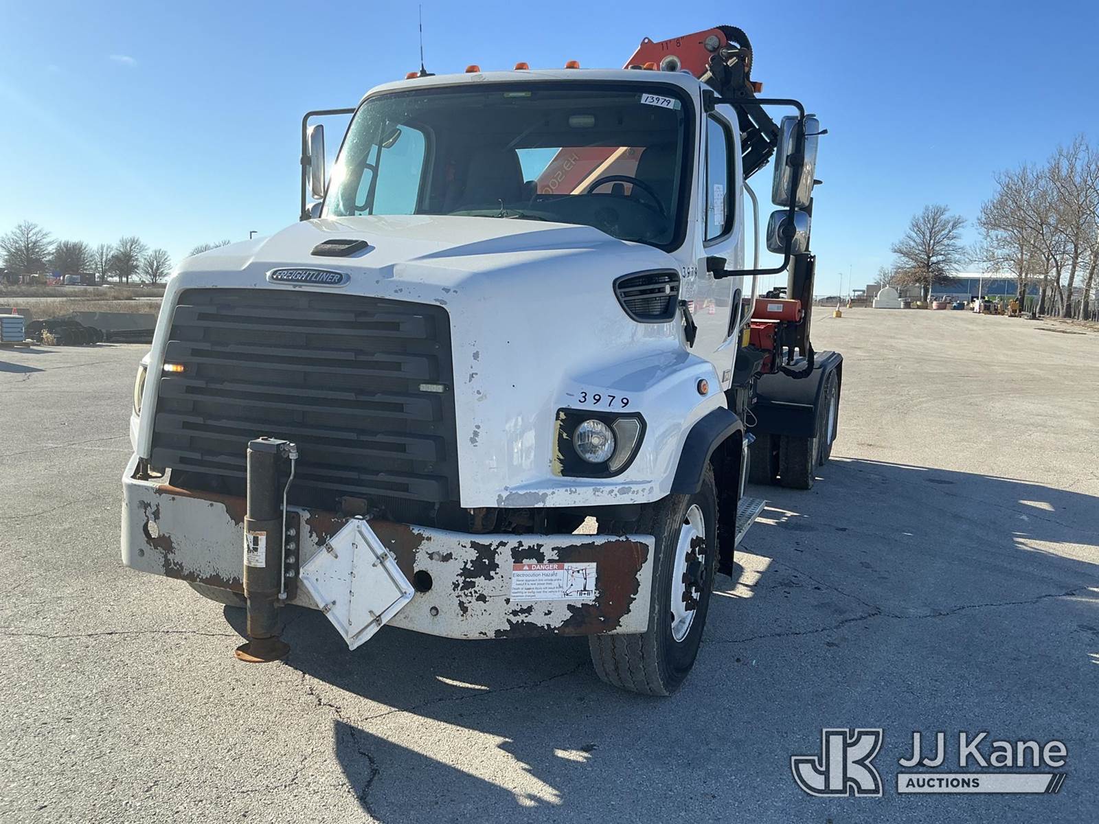 Palfinger PK26002-EH, 12,500 Lb Knuckleboom Crane s/n 100287114, with approx. 35ft reach, radio remote, mounted behind cab on 2016 FREIGHTLINER 114SD T/A Truck Tractor, 8.9L Auto, diesel, A/C, with air slide 5th wheel, wet line kit, (231,284 miles) (Runs & Moves)(Seller States: Operates) (Reads 10,365 hours) This is a Titled Item NOTE: This unit is being sold AS IS/WHERE IS via Timed Auction and is located in Kansas City, MO. For pre-sale questions or to schedule an inspection, please contact Ricky McPherson @ 816-610-2250. (Manuals provided in cab) (Buyer is responsible for removal. Assistance by consignor or JJ Kane Auctions is not assured.)
