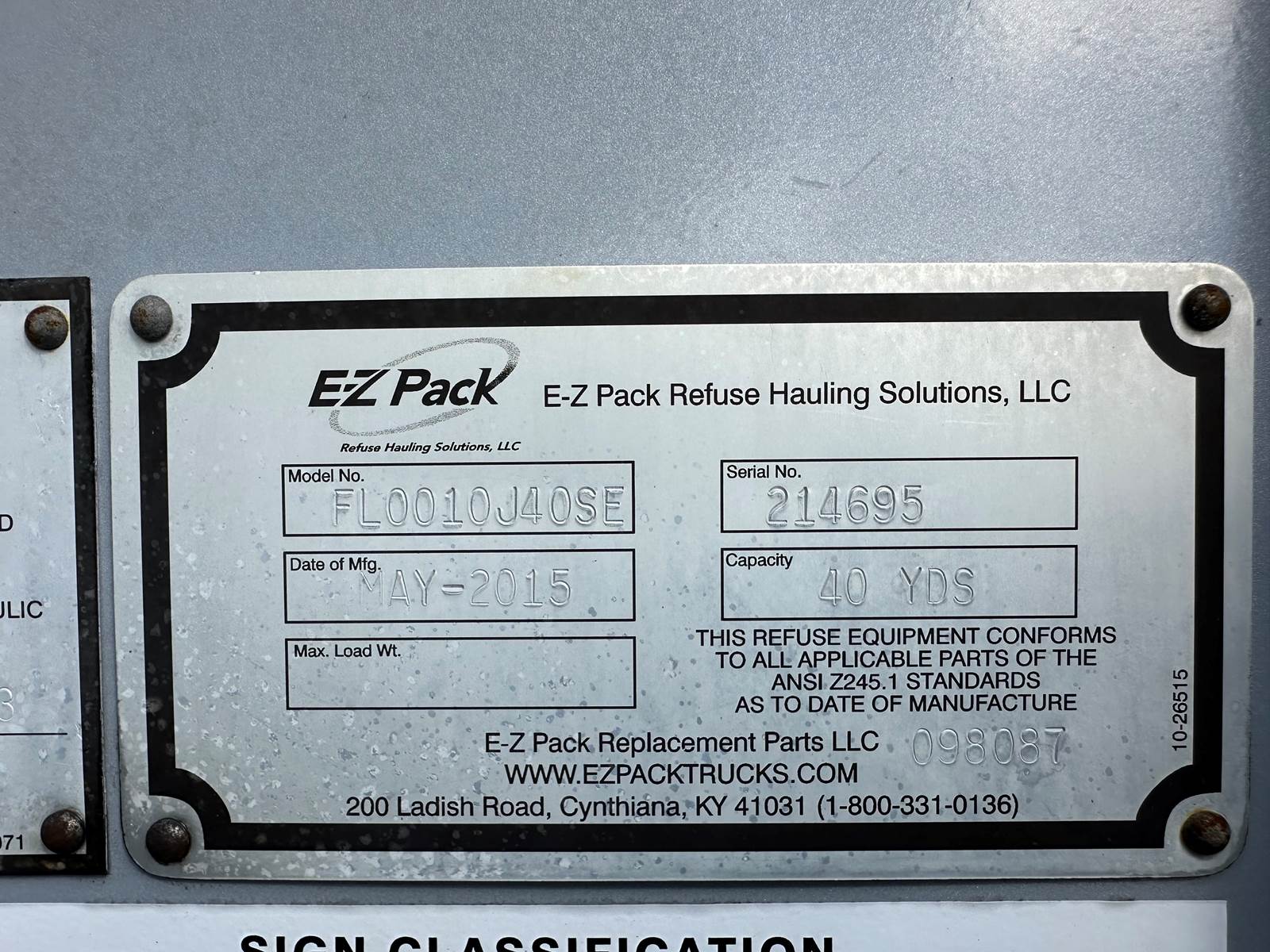 Equipment: E-Z Pack Hercules Refuse Hauling Solutions