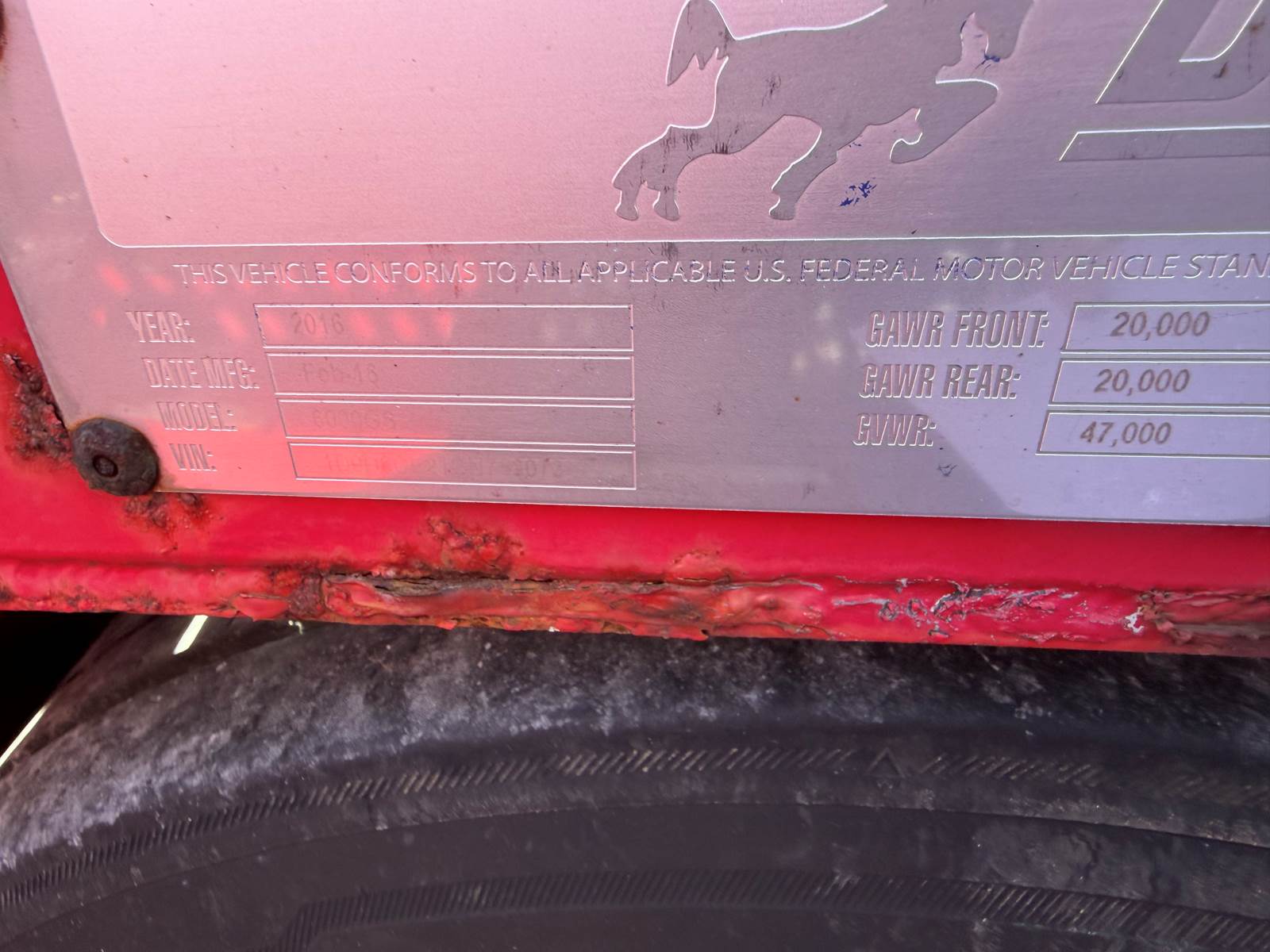 2016 Peterbilt 365 with Paccar MX-13 DayCab paired with trailer 510828 1D9D6CE23GN753060; Delavan Quickloader- Build date December 2016.