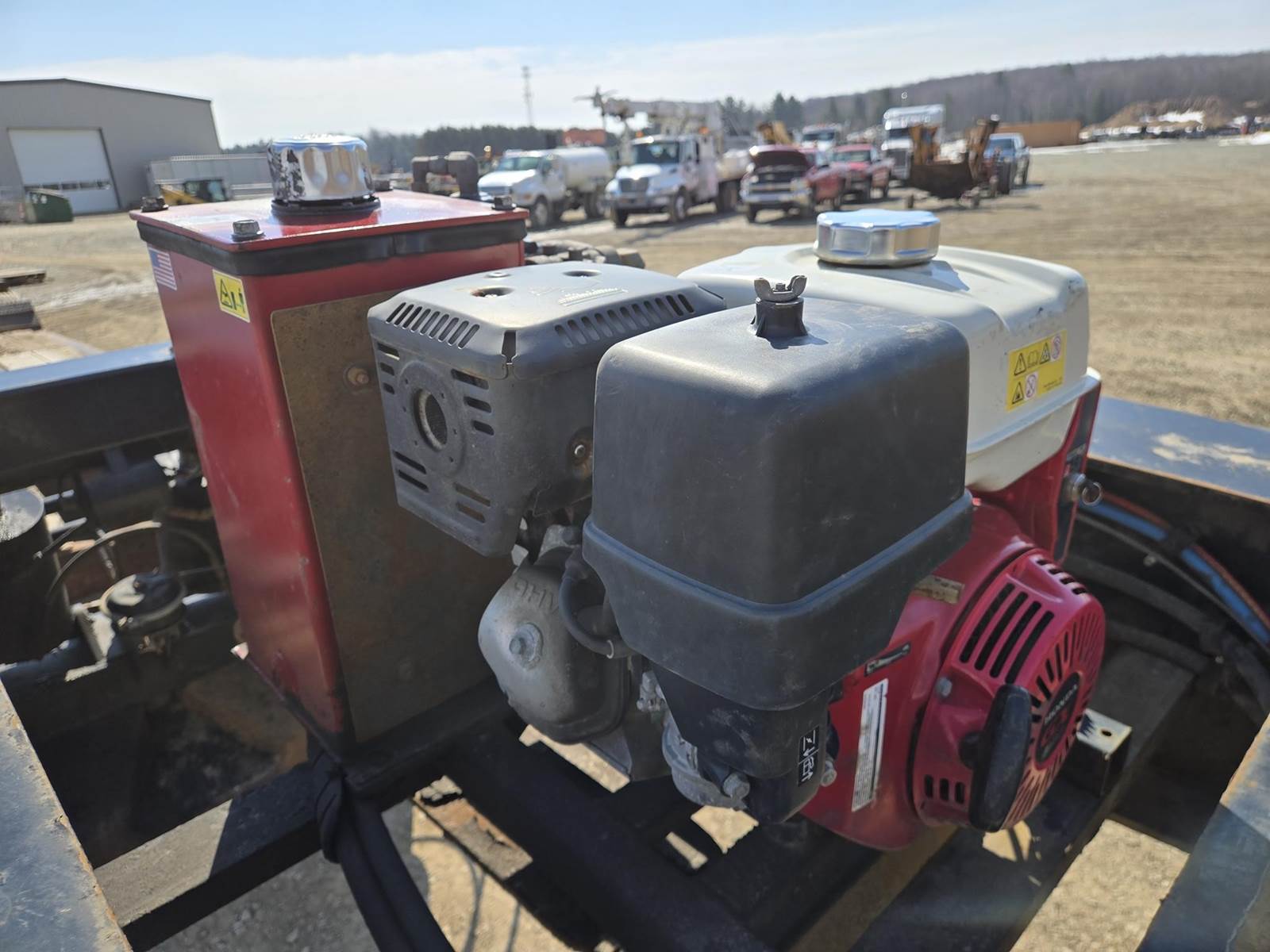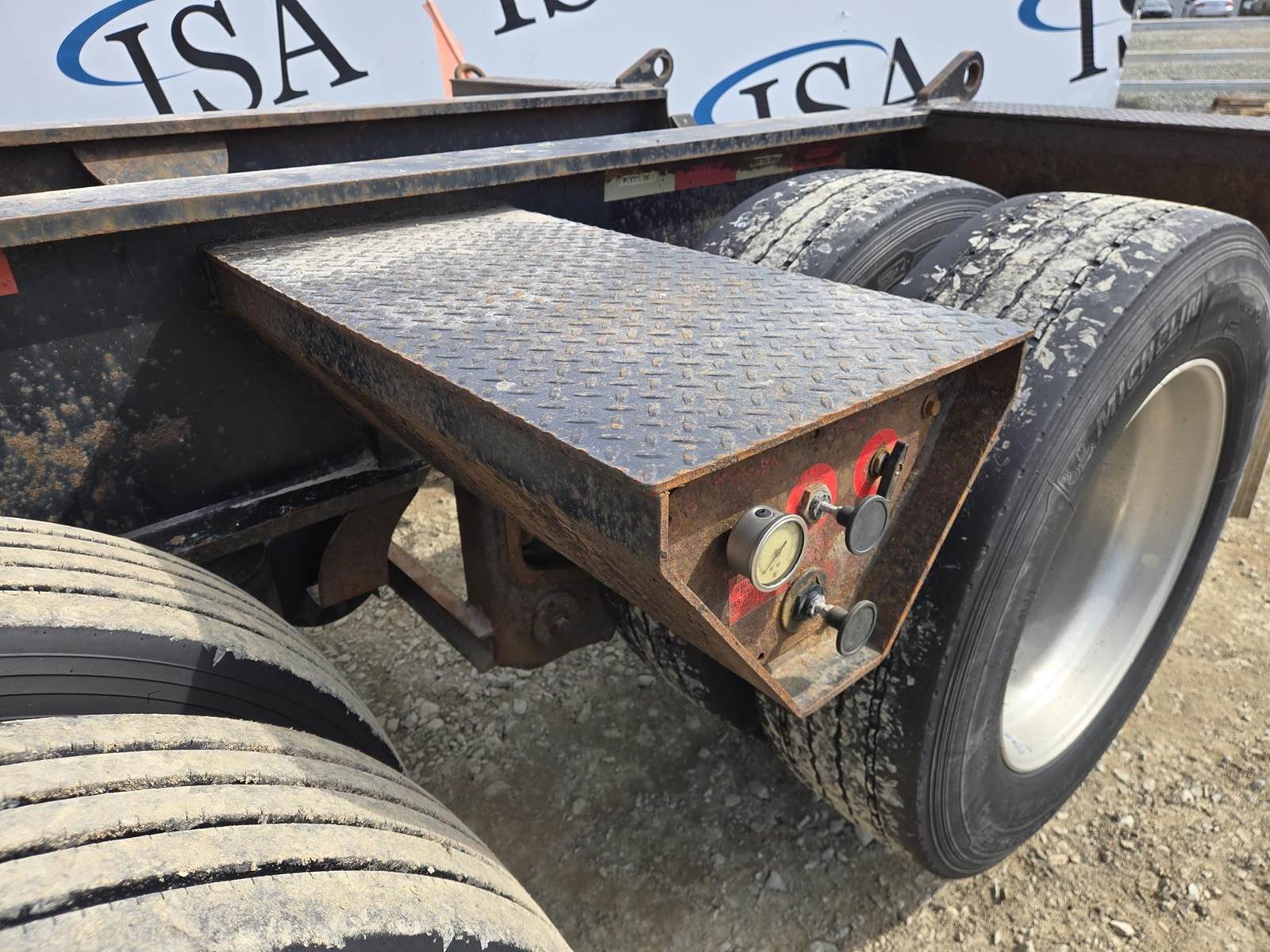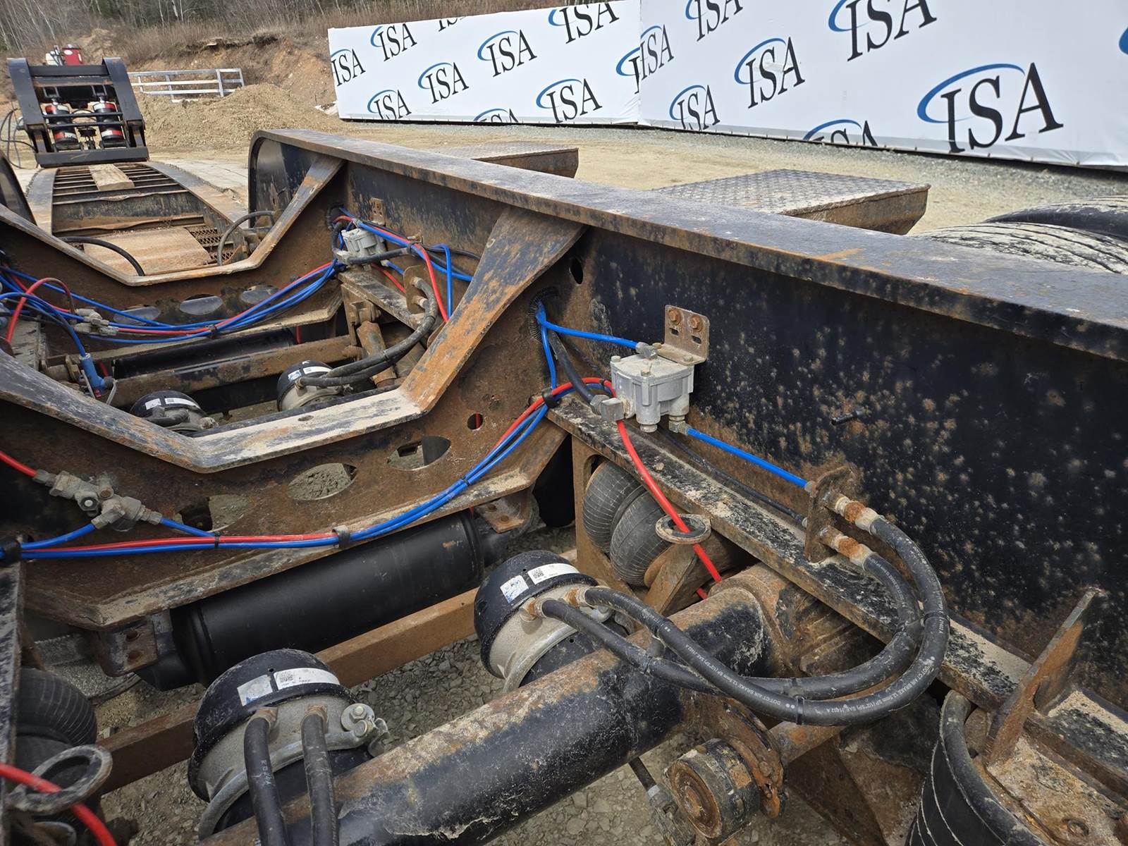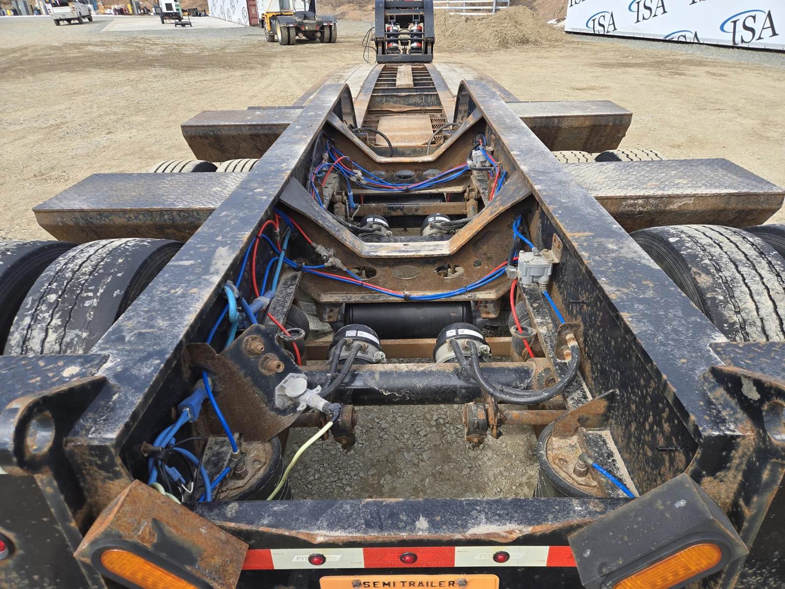 122500lb GVWR, Approx 102" Width, Air Ride Suspension, Rear Air Lift Axle, Approx 25' Well. Hydraulic Detach Neck, Honda GX 390 Gasoline Engine, D-Rings, 12" Deck Extensions, 275/70R22.5 Tires