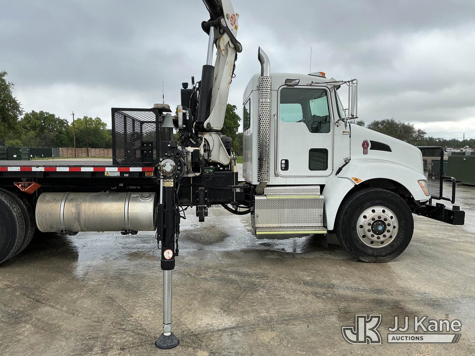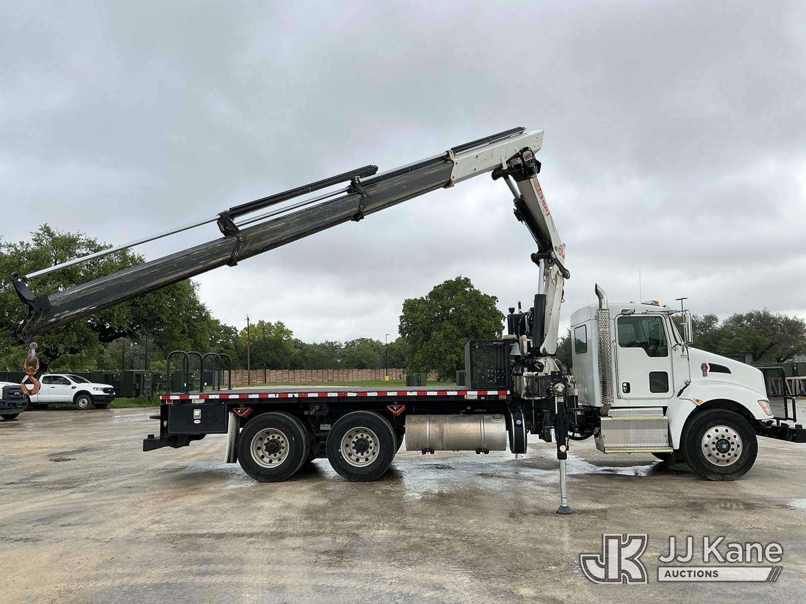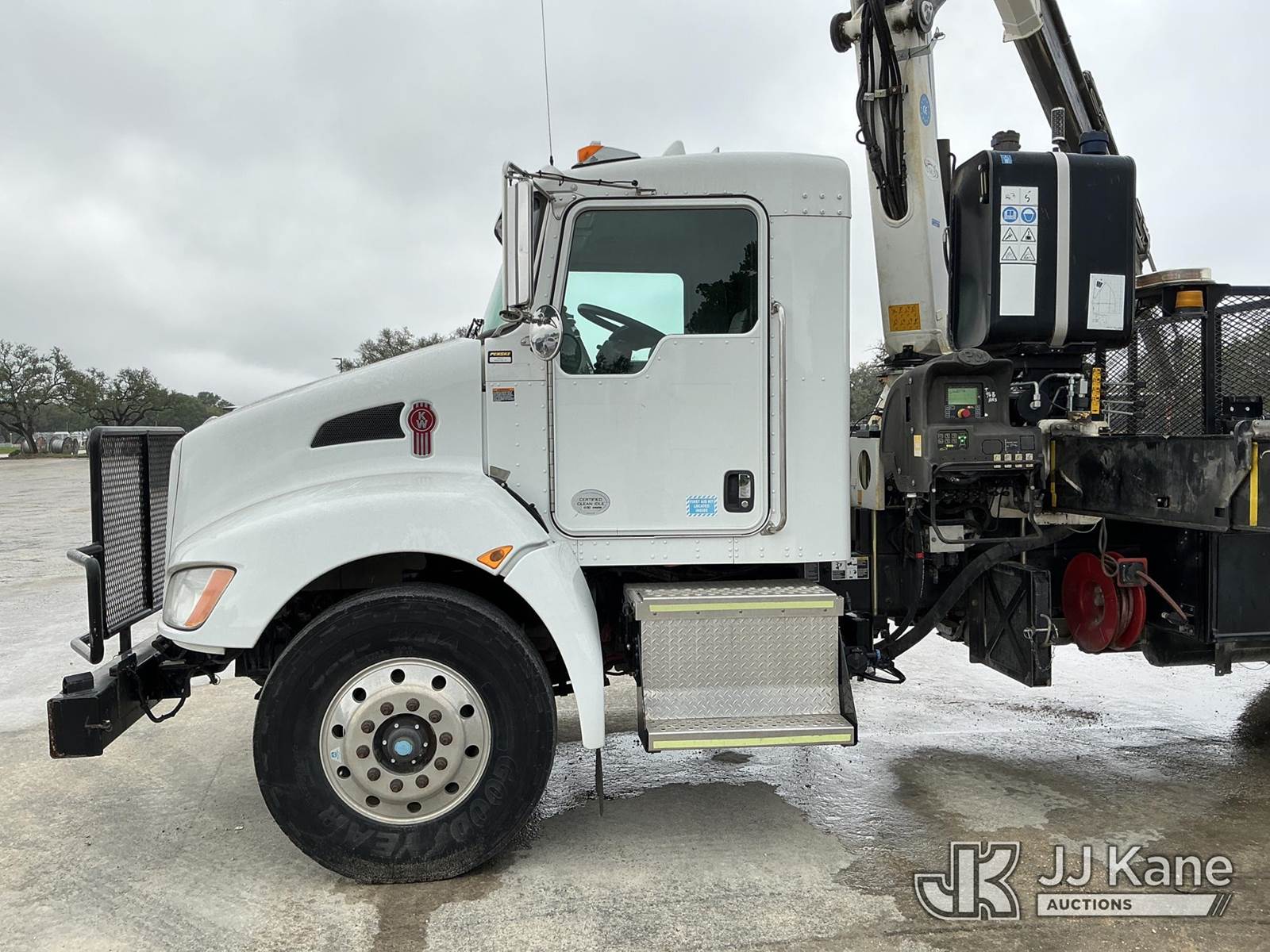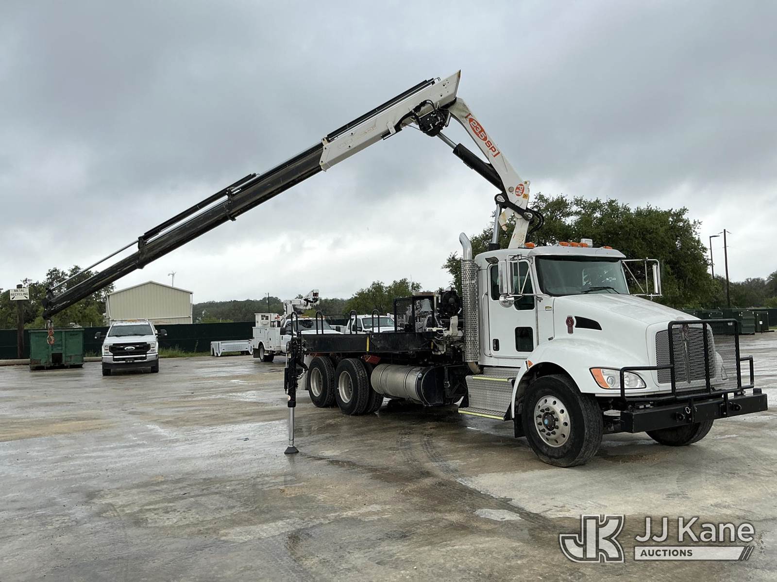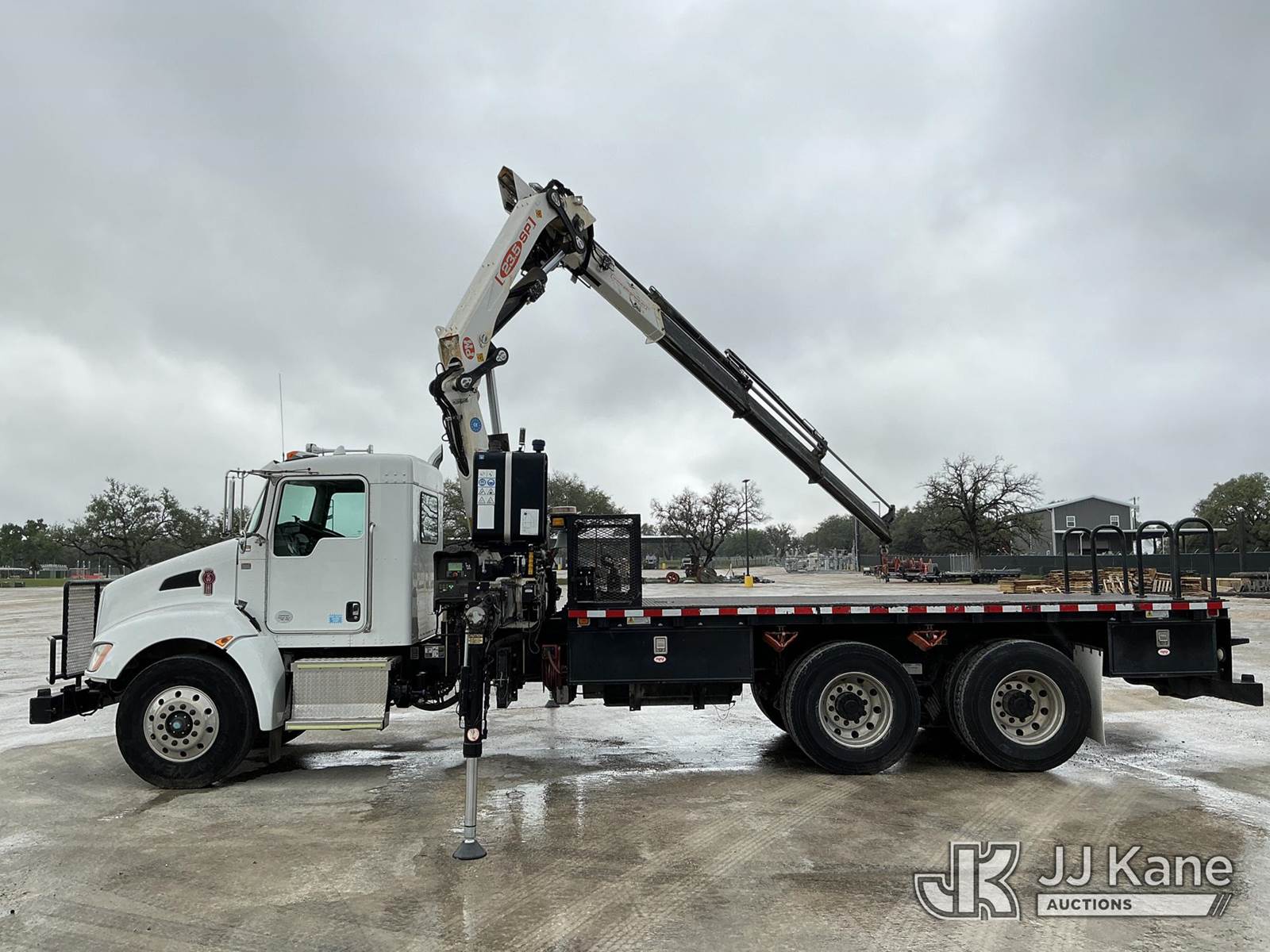 PM PM23523 SP, 10,430 Lb Knuckleboom Crane s/n 235574, with 4 sec hyd boom, remote & 2 hyd outriggers, mounted behind cab on 2016 Kenworth T300 T/A Flatbed Truck, Paccar PX-9 diesel, Auto, A/C, (18,488 miles) Co-Operative Owned & Maintained (Runs, Moves & Upper Operates, Check Engine Light On) (Reads 2,282 hours) This is a Titled Item NOTE: This unit is being sold AS IS/WHERE IS via Timed Auction and is located in Johnson City, TX. For more information & removal arrangements please contact Travis Rapp @ 830-360-6293. Removal by appointment only, Buyer/Hauler must present copy of paid invoice upon arrival. Purchaser acknowledges ALL lots must be removed within 7 business days of Auction, or a storage fee may be incurred. For Removal and Pick Up information, please reference the release form sent out after purchase. (Missing manuals, See Auction Company for Manufacturers Information to obtain manuals) (Buyer is responsible for removal. Assistance by consignor or JJ Kane Auctions is not assured.)