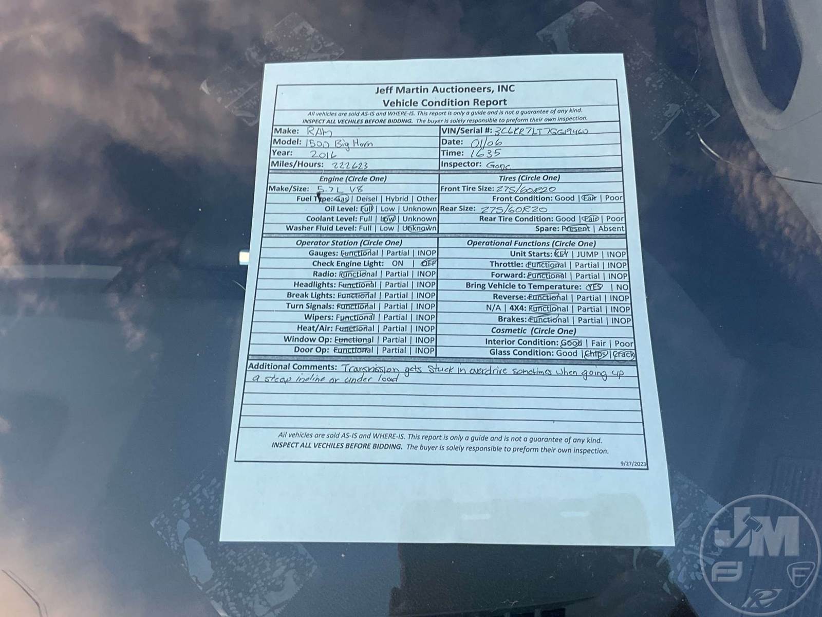 BIG HORN CREW CAB 4X4 PICKUP, 8 CYL , GAS ENGINE, AUTOMATIC TRANSMISSION, CRUISE, AC/HEAT, CLOTH INTERIOR, TOOL BOX, BED LINER, RUNNING BOARDS, AUTO WINDOWS/LOCKS, SAT RADIO, REARVIEW CAMERA, BLUETOOTH, ODOMETER READS: 222616, ***ENGINE REBUILT AT 129,000 MILES***TRANSMISSION OCASIONALLY GETS STUCK IN OVERDRIVE WHEN UNDER LOAD/IN BIND UP HILL***