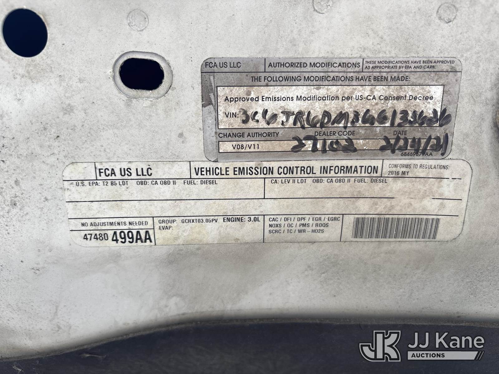 2016 RAM 1500 Pickup Truck, 3.0L V6 DOHC 24V diesel, RWD, 8-Speed Automatic, A/C, with Tommy Gate Lift Gate, (128,092 miles) (Runs & Moves) (Jump To Start, Check Engine Light On, ABS Light On, ESC Light On, Lift Gate Does Not Operate, Body/Paint Damage) (FL Residents Purchasing Titled Items - tax, title & registration fees will be collected at the maximum rate of $400.00 under 25,999 and $800.00 for Over 26,000 and $250.00 trailers - Proof of insurance is mandatory; Out of State Residents Purchasing Title Items - tax will be collected based upon your state rate.) This is a Titled Item NOTE: This unit is being sold AS IS/WHERE IS via Timed Auction and is located in Riviera Beach, FL. An inspection day for FPL auction items will be conducted on the Friday before the auction from 8a-3p at 2455 Port West Boulevard, Riviera Beach, FL 33407. Winning Buyer/Hauler must present copy of paid invoice upon arrival to pick up. For load out and pick up information, please reference the release form sent out after purchase. Any more information please call Andy Garcia @ 561-215-0085. Sales Tax Collected Based on Residency (Buyer is responsible for removal. Assistance by consignor or JJ Kane Auctions is not assured.)