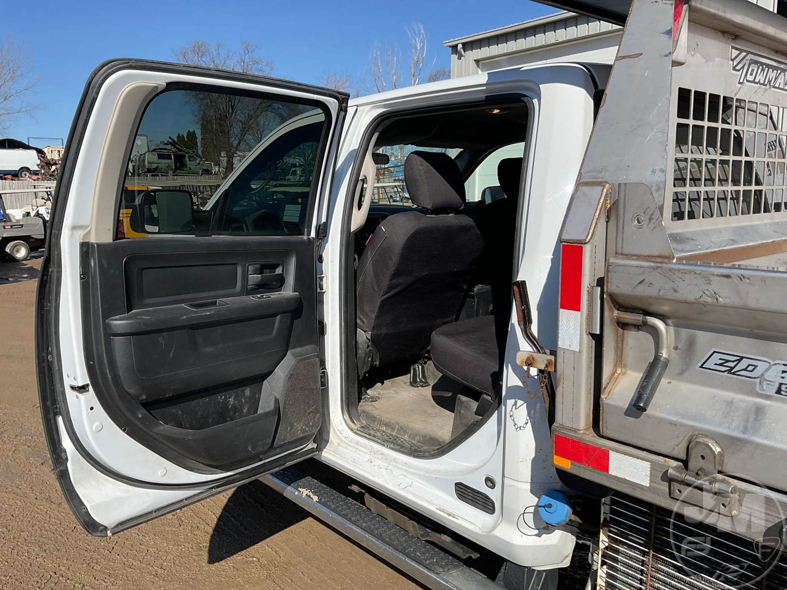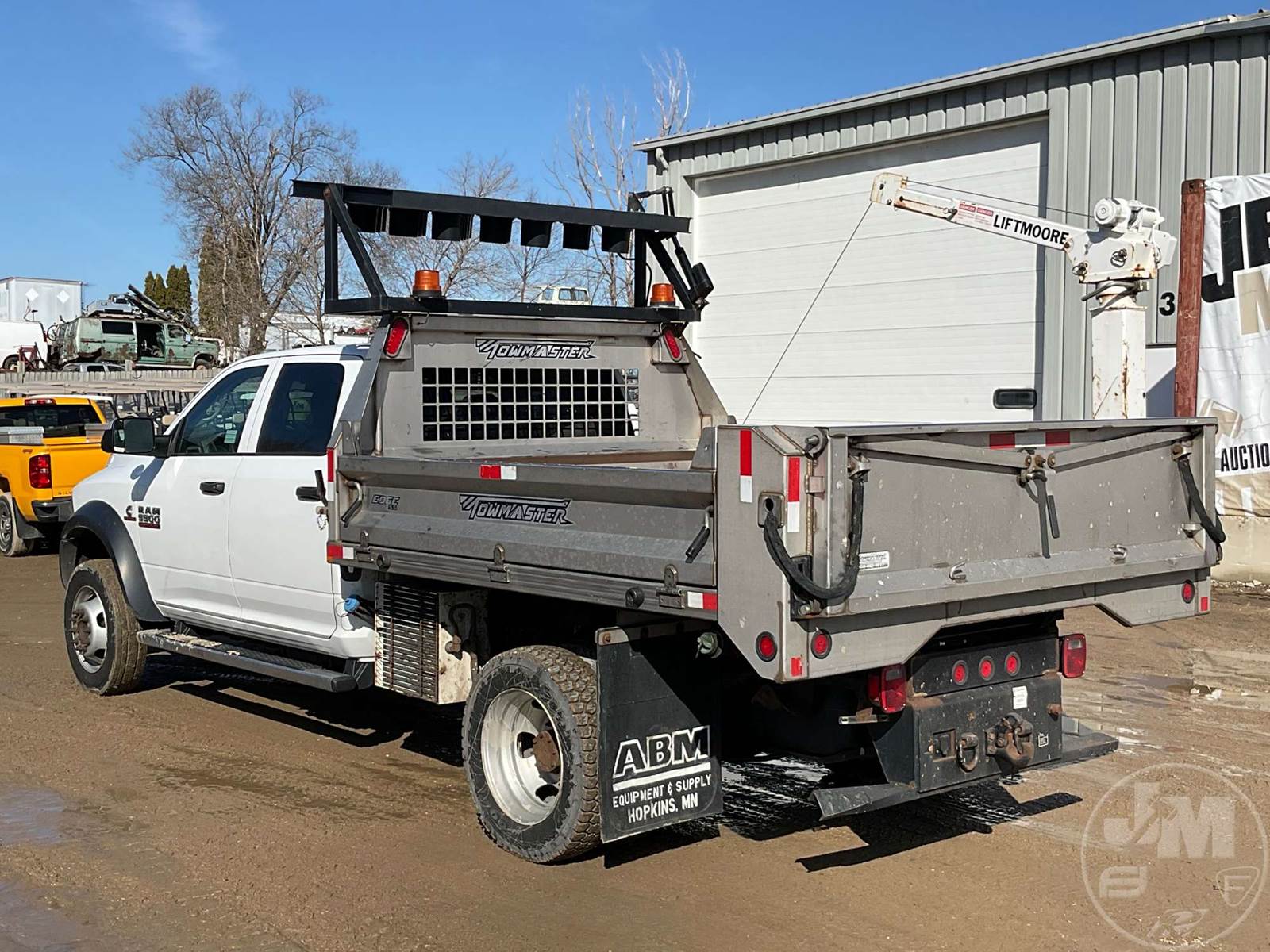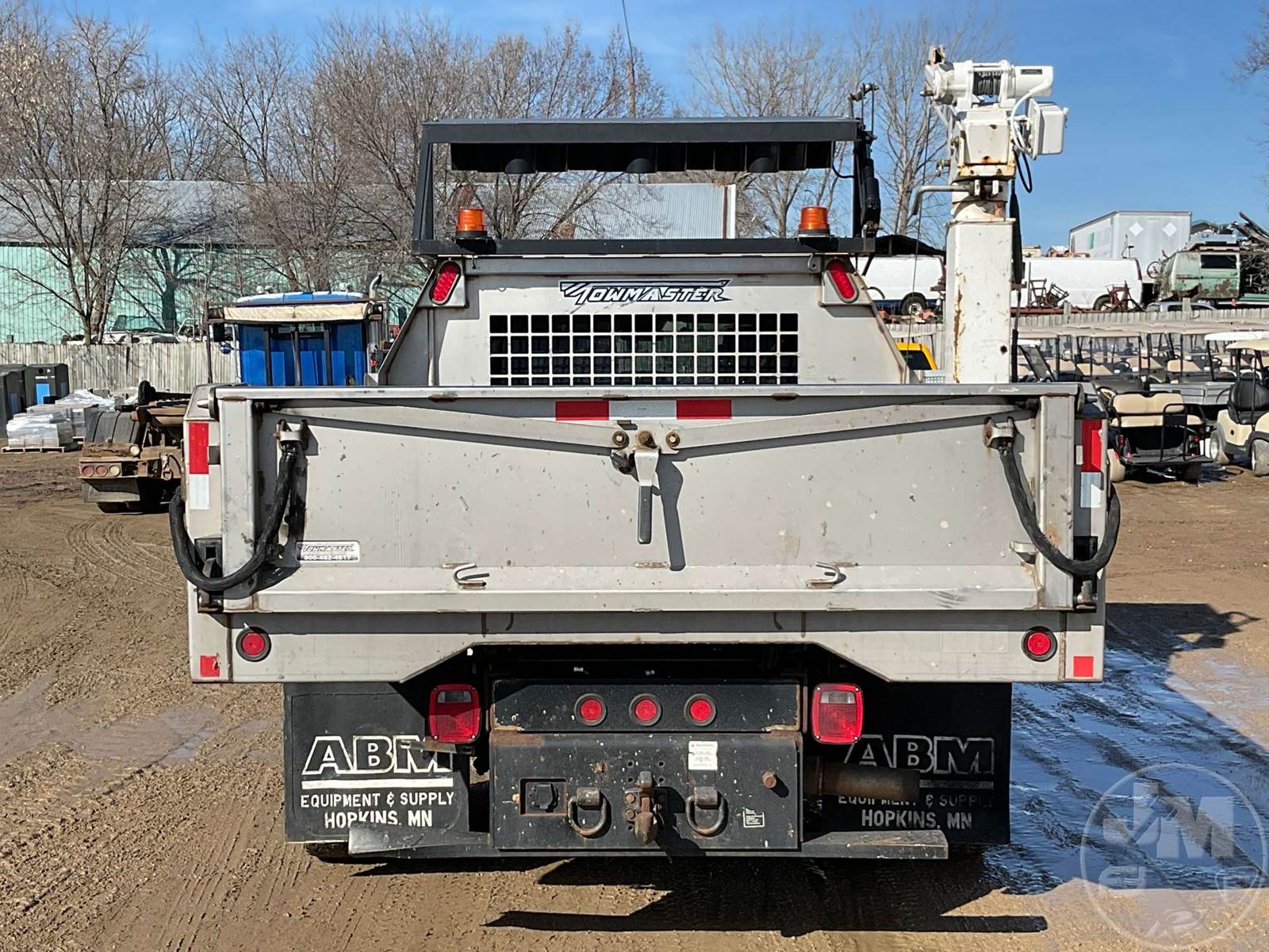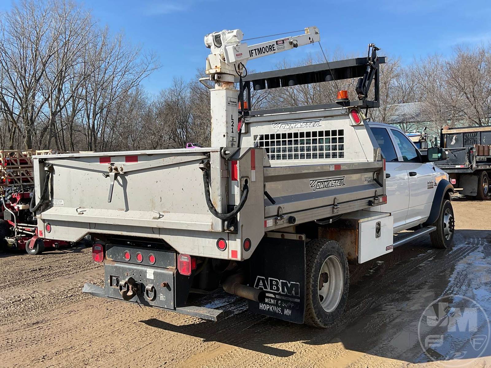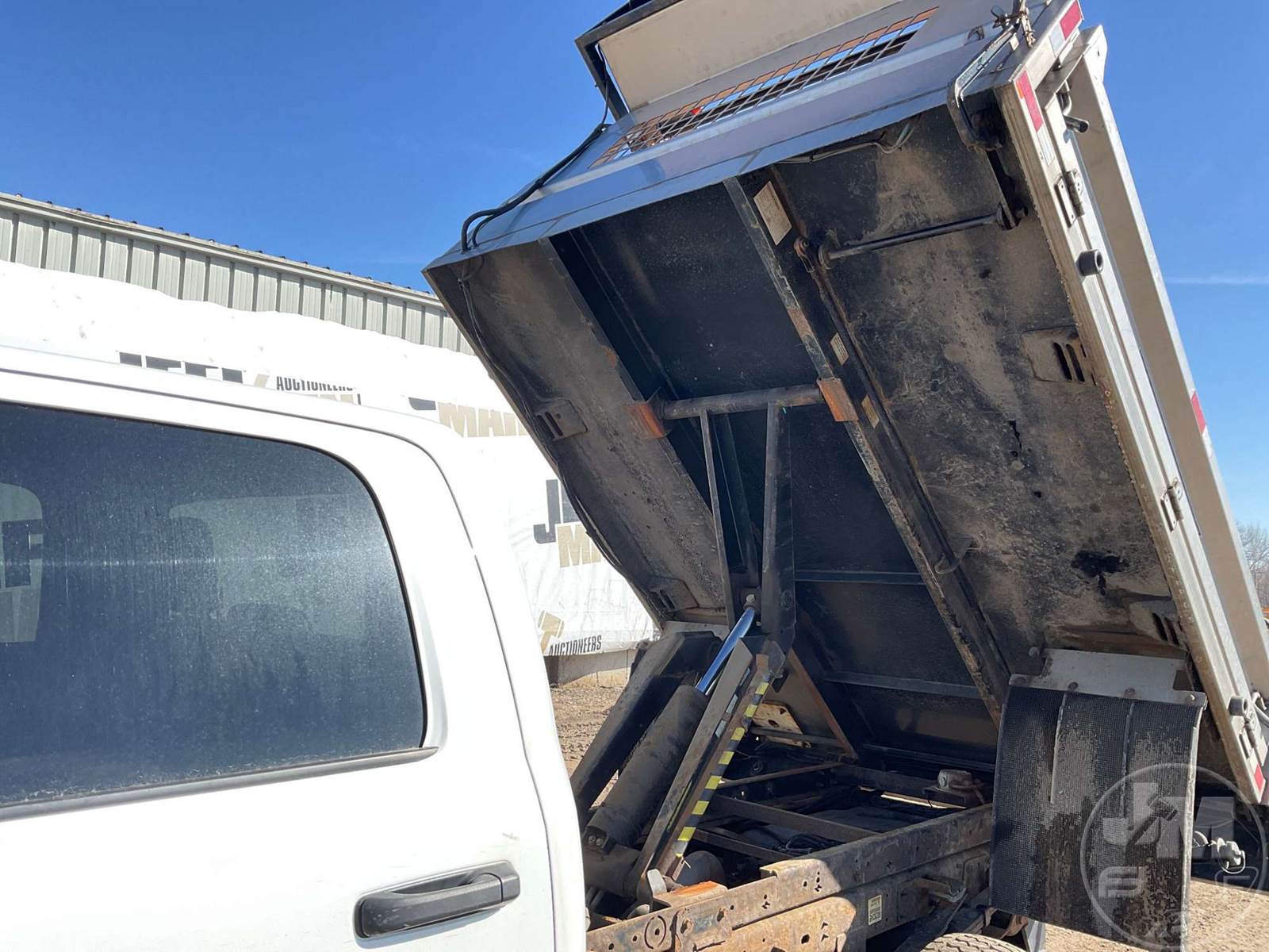 SINGLE AXLE DUMP TRUCK, CUMMINS, 6.7L, AUTOMATIC, HYDRAULIC BRAKES, SPRING SUSPENSION, 174 " WB, ENGINE BRAKE, CRUISE CONTROL, PINTLE HITCH, A/C, POWER WINDOWS, POWER DOOR LOCKS, POWER MIRRORS, MANUAL GATE, 19K GVWR, STEEL DISC WHEELS, 225/70R19.5 TIRES, CREW CAB, VANAIR COMPRESSOR & PTO INSTALLED, INCLUDES LIFTMOORE 2000 LBS CRANE W/ 7' REACH, FRONT GAWR 7,250 LBS - REAR GAWR 13,500 LBS, TOWMASTER 9.5' STAINLESS STEEL DUMP BODY, TOP MOUNTED TRAFFIC DIRECTOR SIGN, ***CHECK ENGINE LIGHT***, HOUR METER READS: 9688, ODOMETER READS: 74759, *** GOVERNMENT OWNED 10% UNCAPPED PREMIUM***