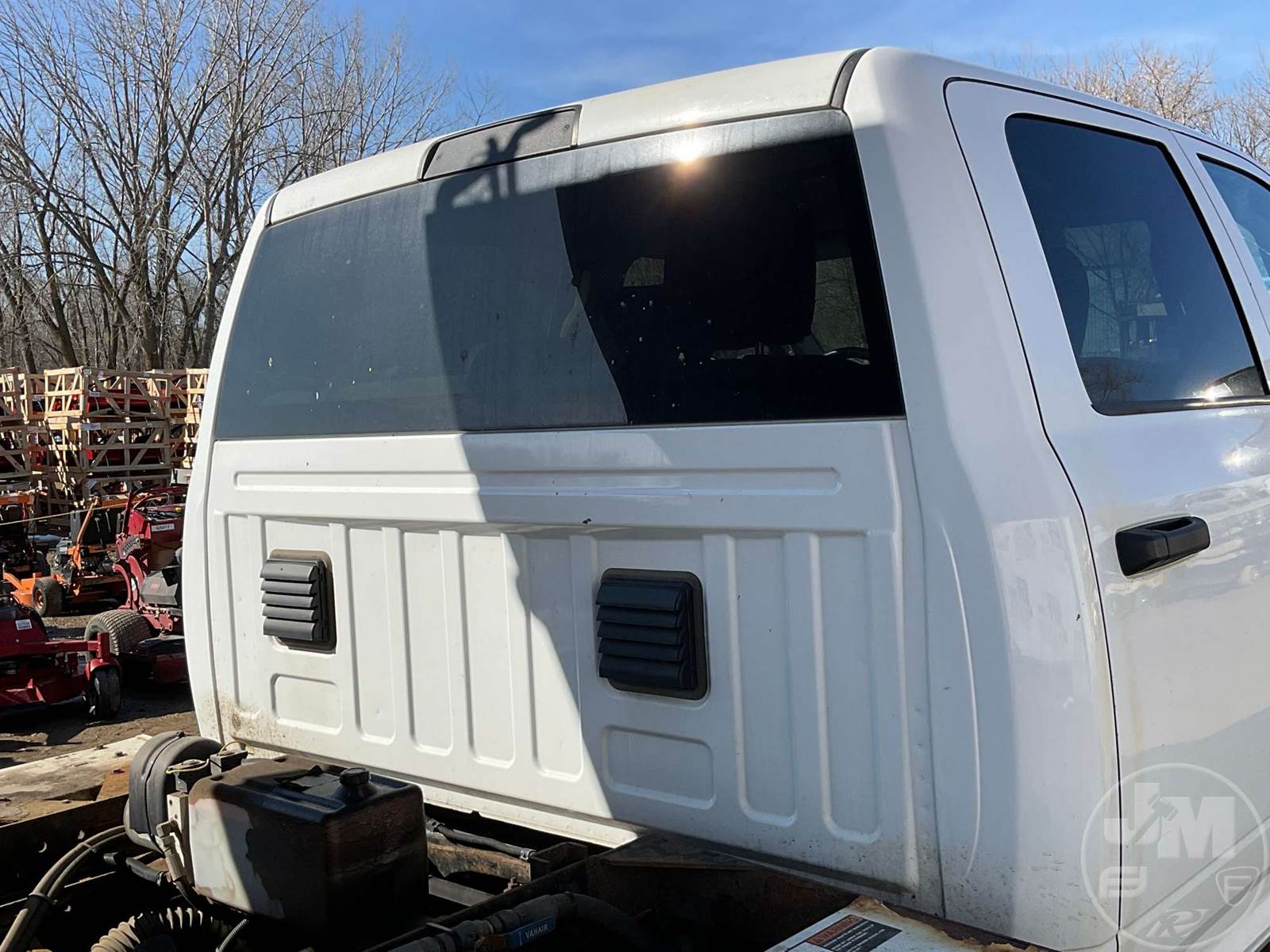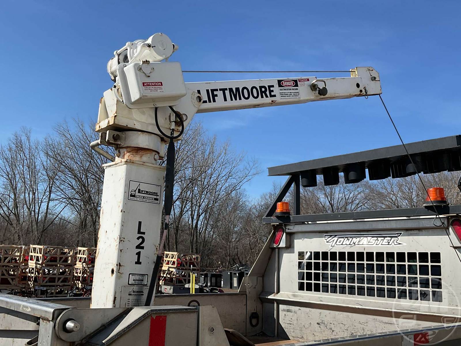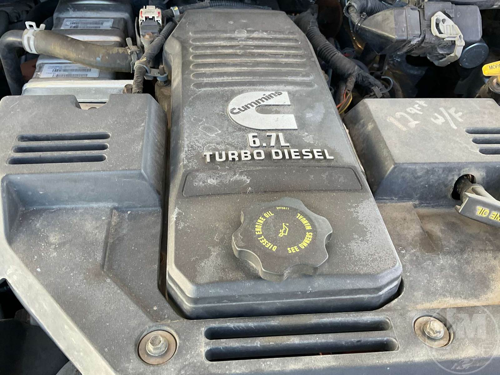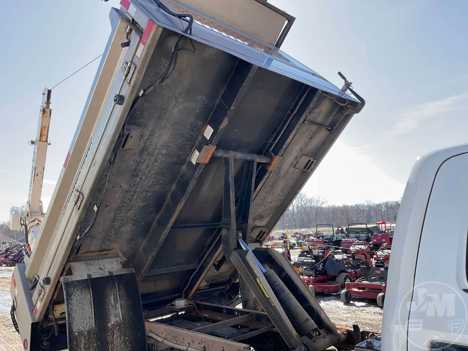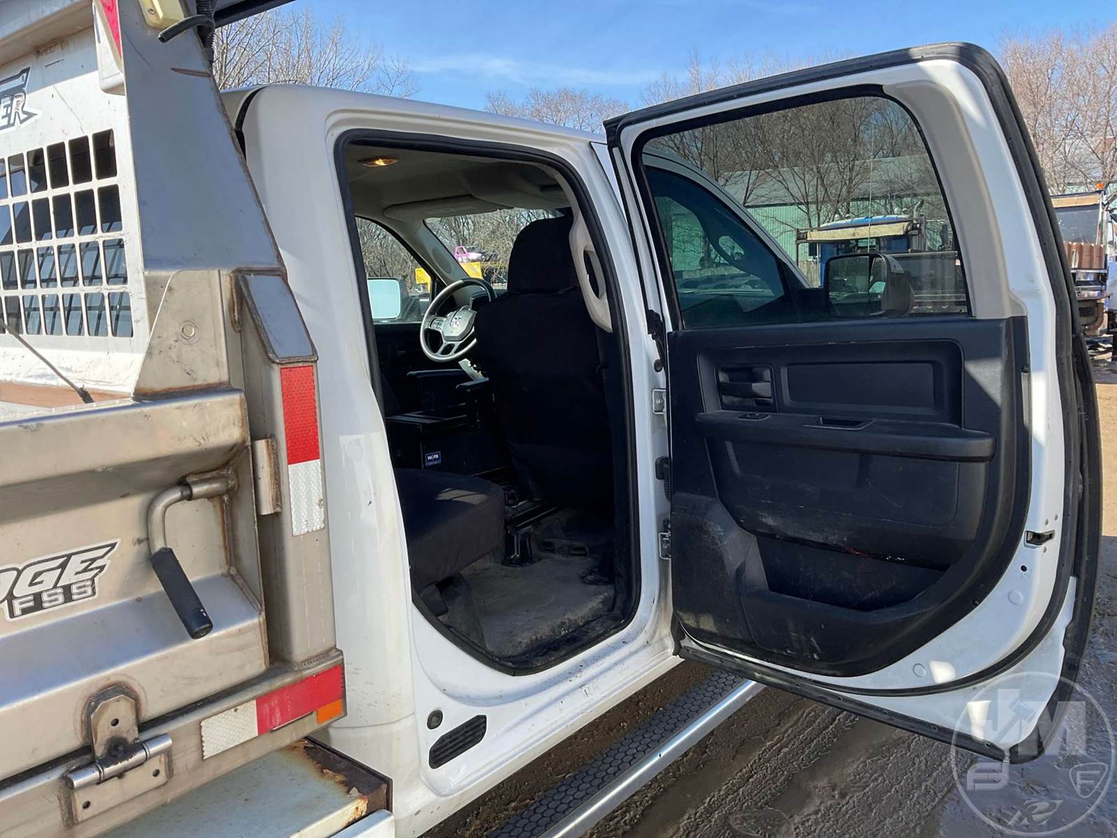 SINGLE AXLE DUMP TRUCK, CUMMINS, 6.7L, AUTOMATIC, HYDRAULIC BRAKES, SPRING SUSPENSION, 174 " WB, ENGINE BRAKE, CRUISE CONTROL, PINTLE HITCH, A/C, POWER WINDOWS, POWER DOOR LOCKS, POWER MIRRORS, MANUAL GATE, 19K GVWR, STEEL DISC WHEELS, 225/70R19.5 TIRES, CREW CAB, VANAIR COMPRESSOR & PTO INSTALLED, INCLUDES LIFTMOORE 2000 LBS CRANE W/ 7' REACH, FRONT GAWR 7,250 LBS - REAR GAWR 13,500 LBS, TOWMASTER 9.5' STAINLESS STEEL DUMP BODY, TOP MOUNTED TRAFFIC DIRECTOR SIGN, ***CHECK ENGINE LIGHT***, HOUR METER READS: 9688, ODOMETER READS: 74759, *** GOVERNMENT OWNED 10% UNCAPPED PREMIUM***