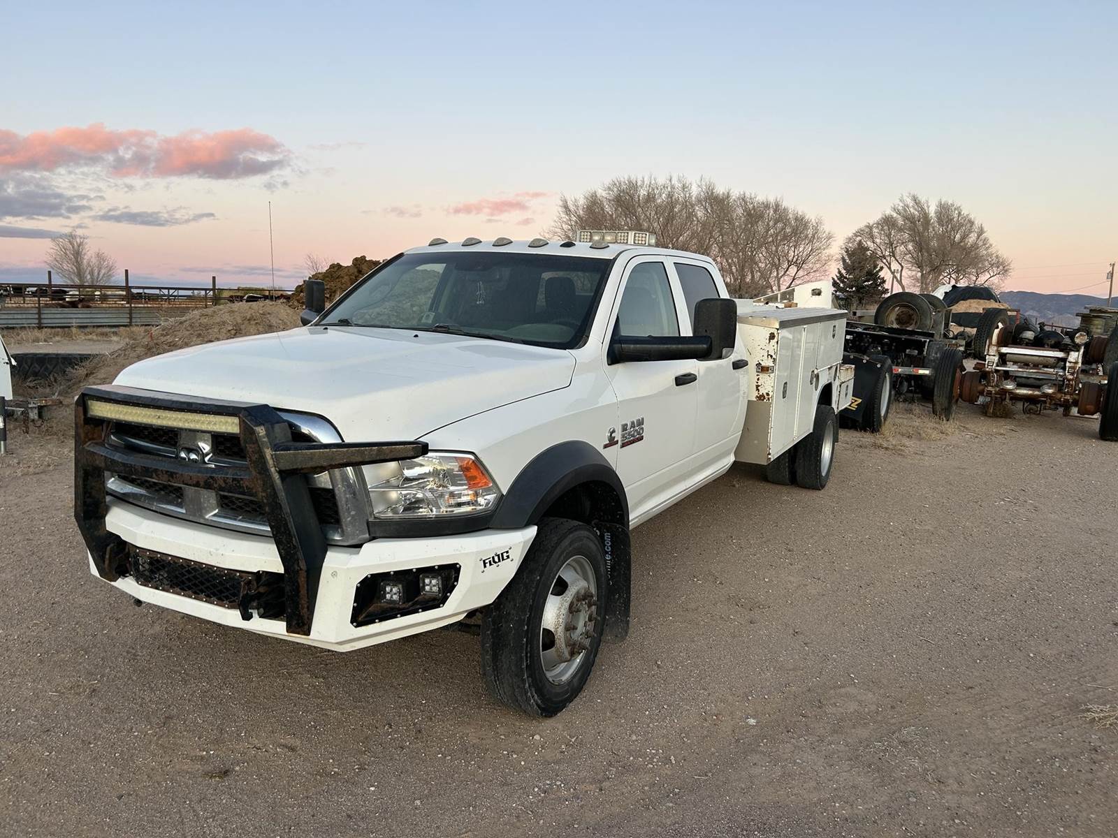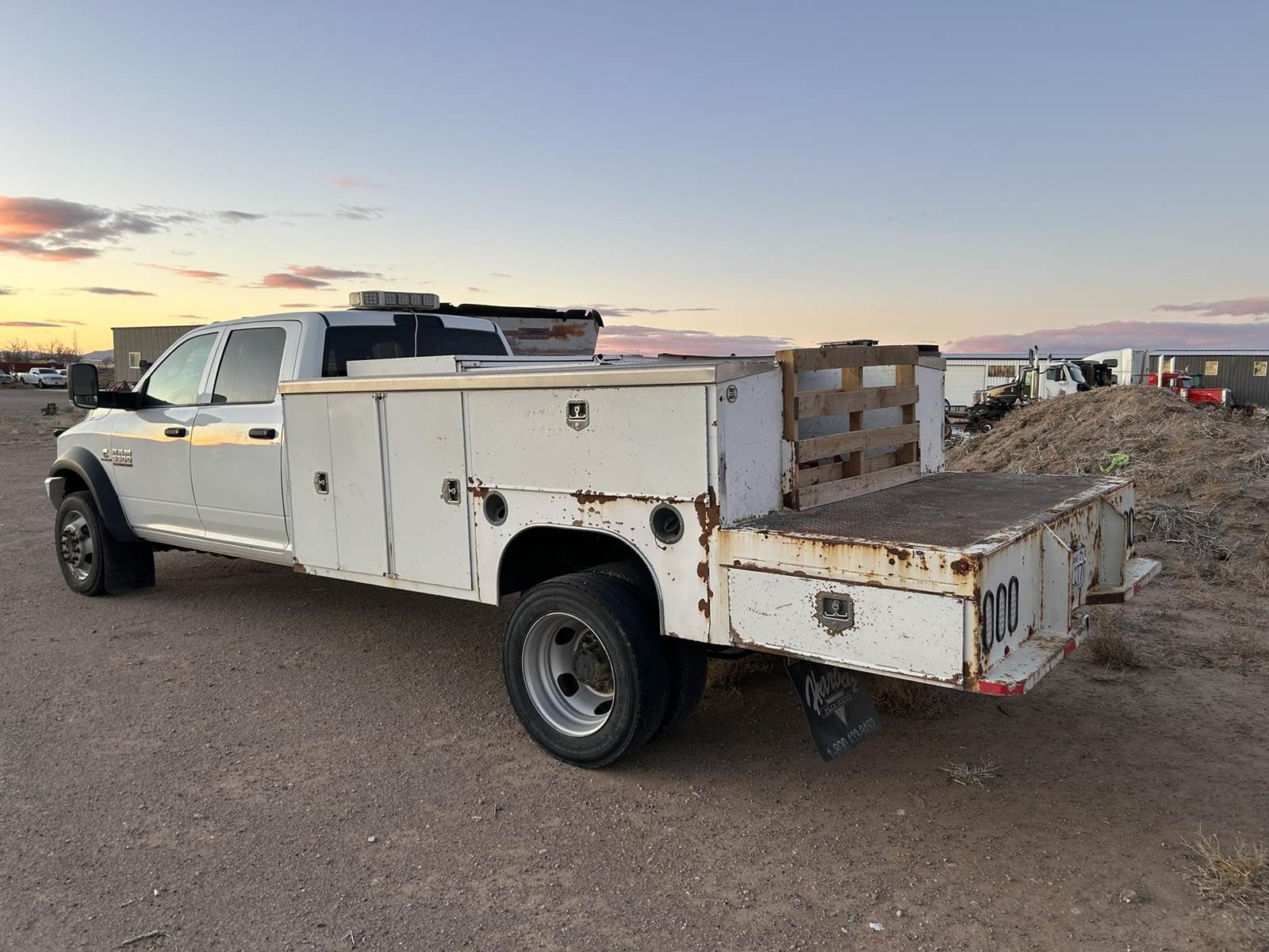 2016 Ram 5500 HD, Cummins 6.7 Liter 370 HP Turbo Diesel Engine, 6 Speed Automatic Transmission, 162,281 Miles, 4x4, 4 Door Crew Cab, 2002 Harbor Truck Bodies 12'8" x 7'4" - 8 Compartment Utility / Service Bed, Custom Front Bumper / Grill Guard. Asking $33,500.00