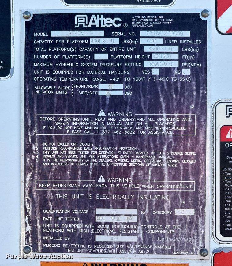 Maximum lift height: 40'