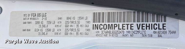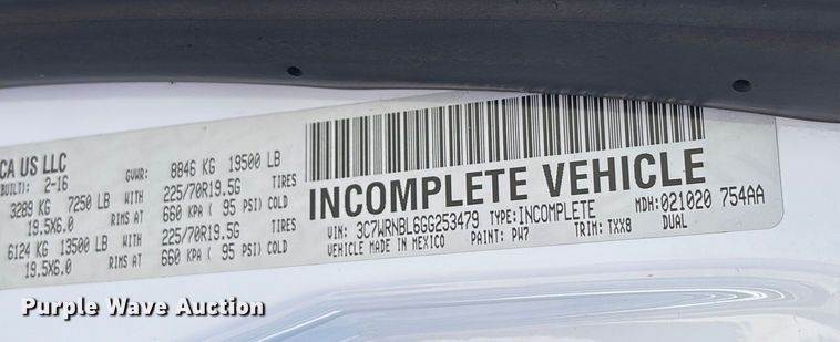 2016 RAM 5500HD bucket truck, Miles: 261,180 on odometer, Hours: 14,821 on meter, VIN: 3C7WRNBL2GG277777, Engine, Cummins, Displacement: 6...