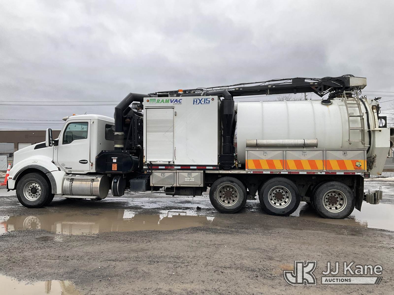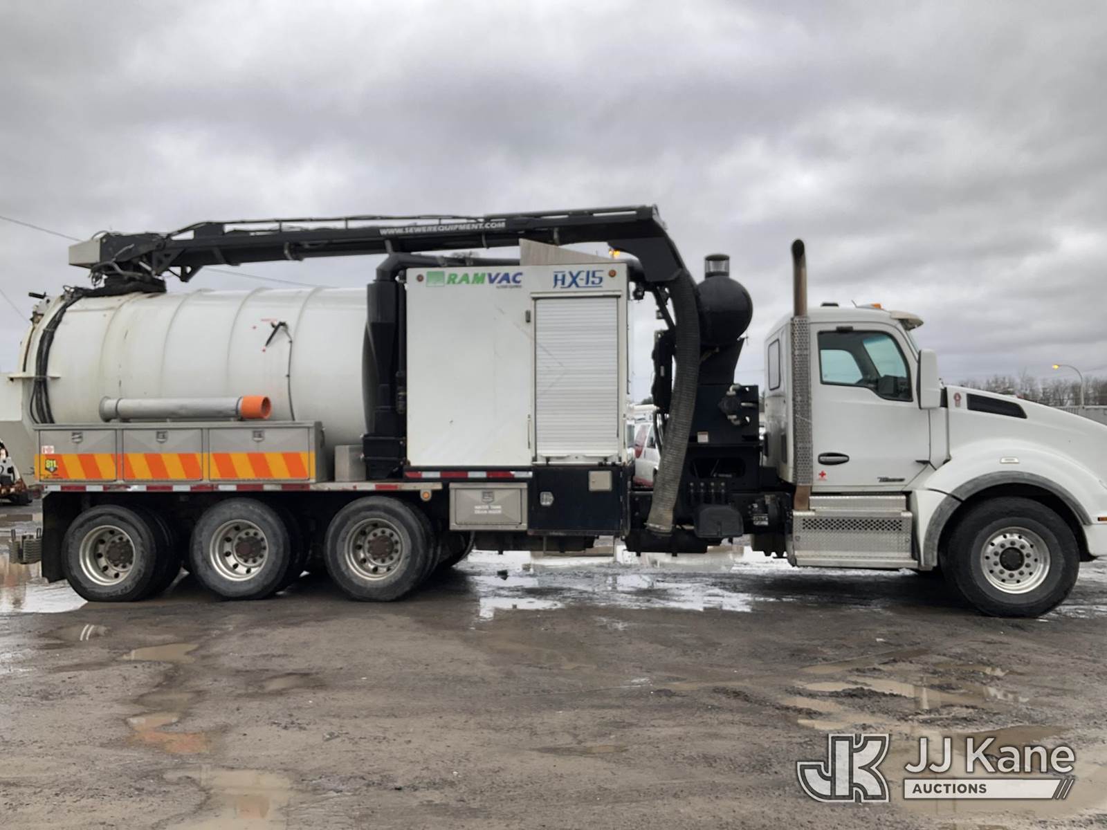 Sewer Equipment RAM VAC HX15 Big Daddy, Vacuum Excavation System with 15-cubic-yard debris body, boom reach of 21 to 26 feet with a 320° working radius, 4400 CFM & 18 inch blower capacity, cyclone separation, vacuum enhancer, directional discharge, hydrostatic blower drives, 10-micron final filter, for the water system, 1,300-gallon water capacity, 10 GPM @ 2500 PSI pump, 400,000 BTU water heater, mounted on 2016 Kenworth T880 Tri/A Chassis, Cummins ISX12 425 diesel, Auto, A/C, with Air Lift 3rd Axle, (70,869 miles) (Reads 4,740 hours) This is a Titled Item NOTE: This unit is being sold AS IS/WHERE IS via Timed Auction and is located in Rome, NY. Inspection & preview days for this unit are the 2 business days prior to the first day of items closing for this auction, item is located at 5835 Success Dr Rome, NY 13440 and hours of operations are 8a-4p. For pre-sale questions, please contact Ryan Jackson @ (315) 749-3790 or Ryan.Jackson@jjkane.com. Sales Tax Collected Based on Residency (Buyer is responsible for removal. Assistance by consignor or JJ Kane Auctions is not assured.)