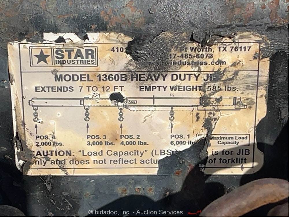 2016 Star Industries 1360B Truss Boom Forklift Jib Hoisting Crane Hoist bidadoo