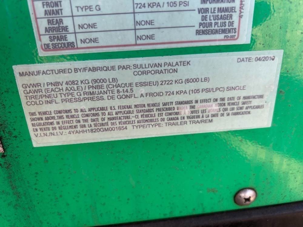 2011 SULLIVAN D185P3JD AIR COMPRESSOR, 185cfm, John Deere diesel, portable. s/n:100224