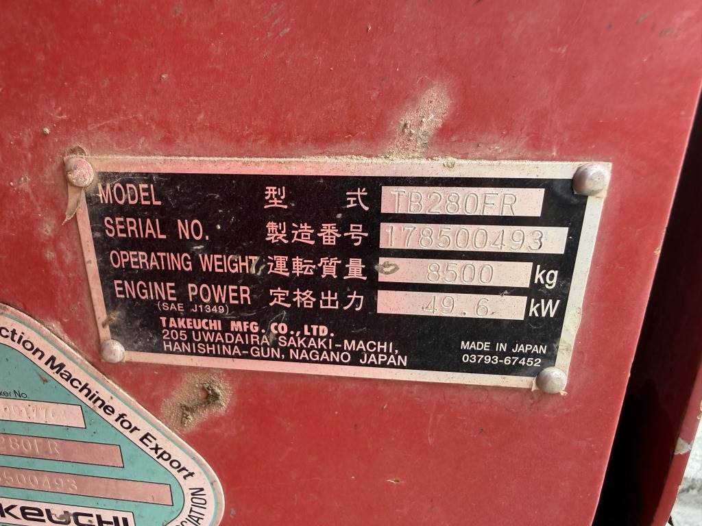 2016 Takeuchi TB280FR Mini Hydraulic Excavator