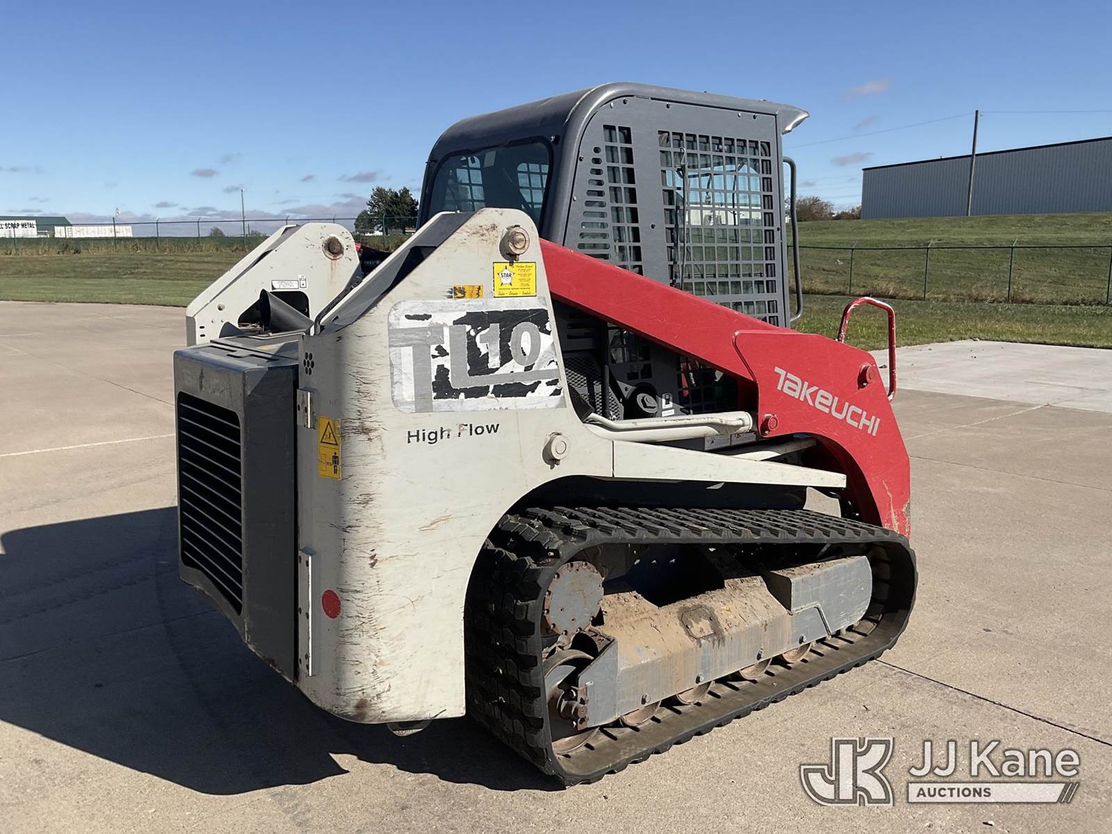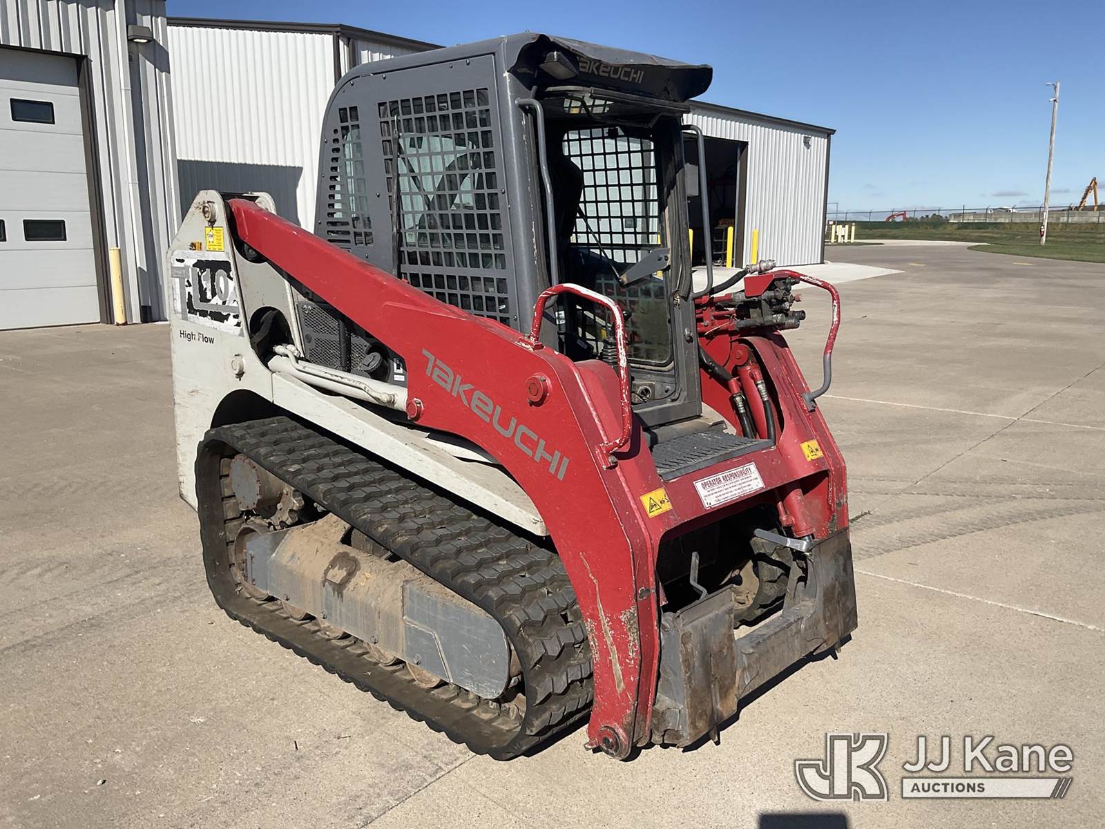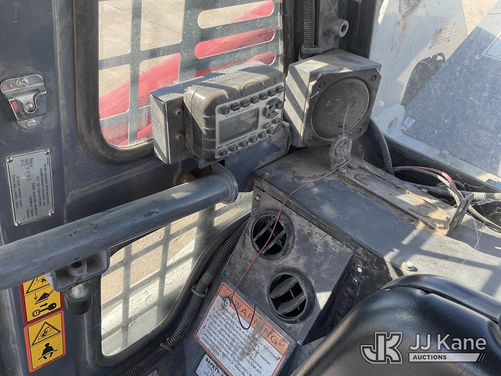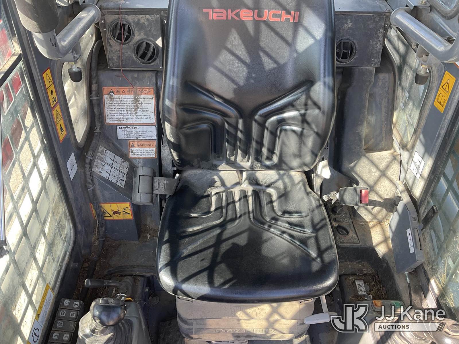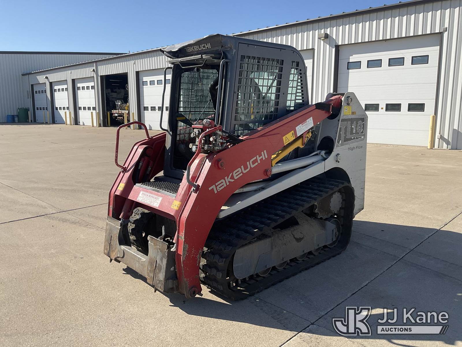 2016 Takeuchi TL10CRHF Skid Steer Loader, s/n 201002180, Kubota 3.8L Hydrostatic, diesel, with aux hydraulics, rubber tracks, EROPS, CO-OP Owned & Maintained. Garage Kept (Runs & Moves) (Seller States: Had Coolant Blow By, Assumed Head Gaskets Were Bad, Removed Head Found Cylinder Wall Scoring On Cylinder #2. Replaced Head Gasket, Put Back Together, No Coolant Blow By. Will Burn Oil Cause Of Scoring On Cylinder Wall On #2.) (Reads 1,438 hours) NOTE: This unit is being sold AS IS/WHERE IS via Timed Auction and is located in Wilton, IA. For more information contact Jeff Schneider @ 816-596-0596. Removal by appointment only, Buyer/Hauler must present copy of paid invoice or release form upon arrival. Purchaser acknowledges ALL lots must be removed within 10 business days of Auction, or a storage fee may be incurred. For load out and pick up information, please reference the release form sent out after purchase. (Buyer is responsible for removal. Assistance by consignor or JJ Kane Auctions is not assured.) (Buyer is responsible for removal. Assistance by consignor or JJ Kane Auctioneers is not assured.)