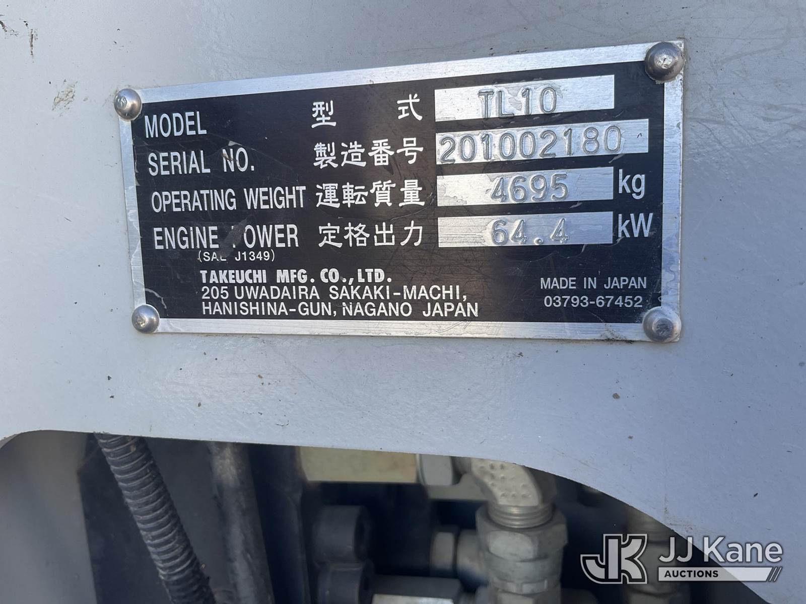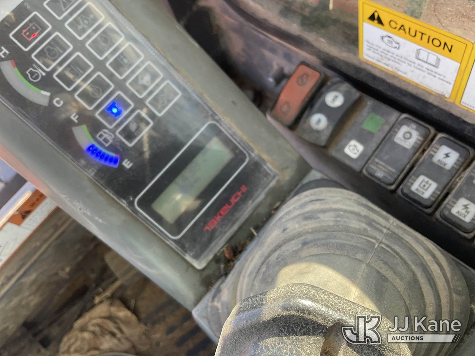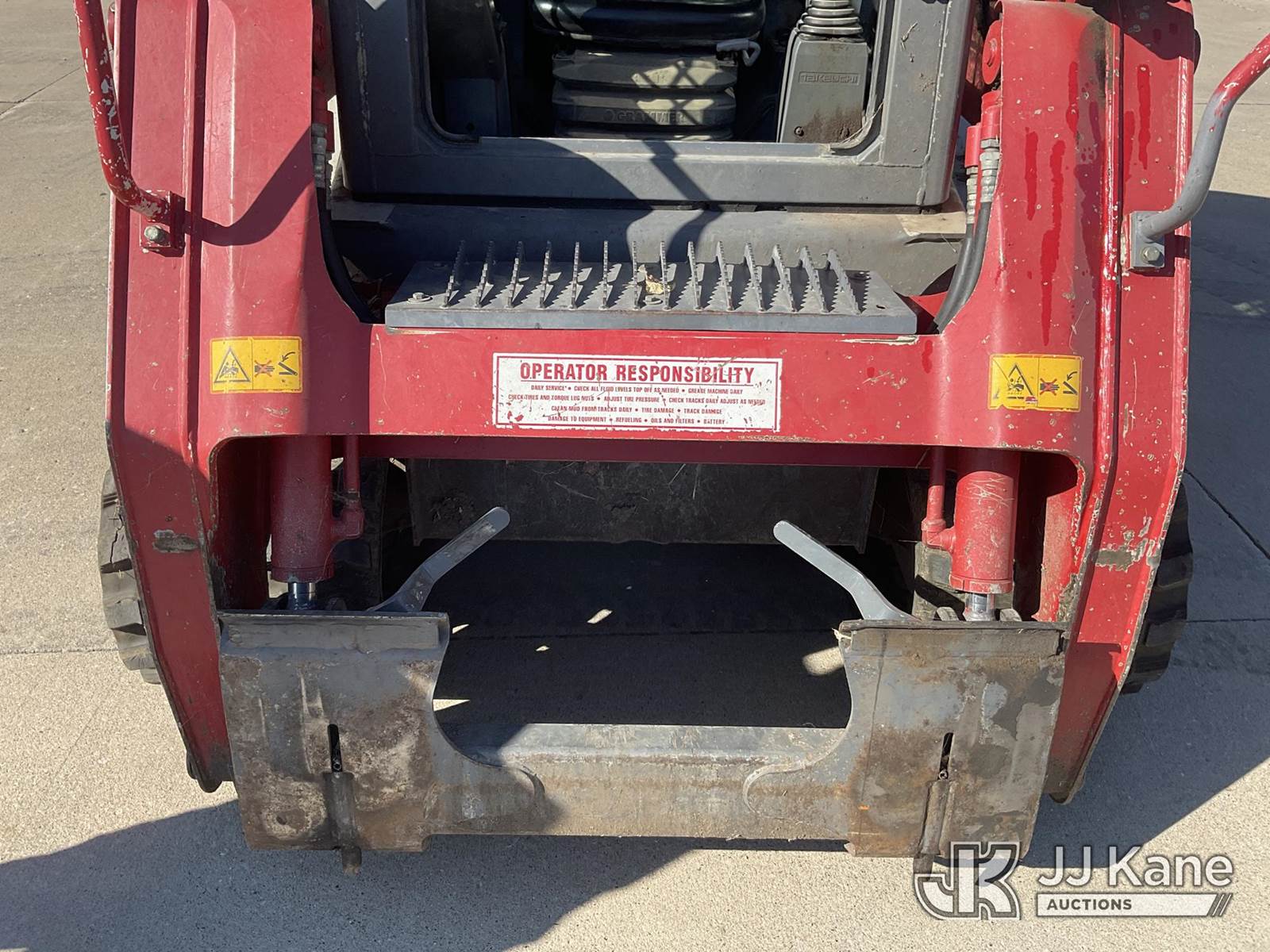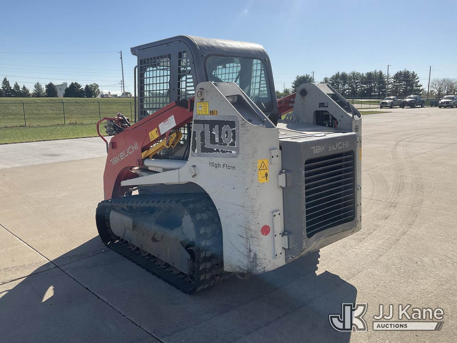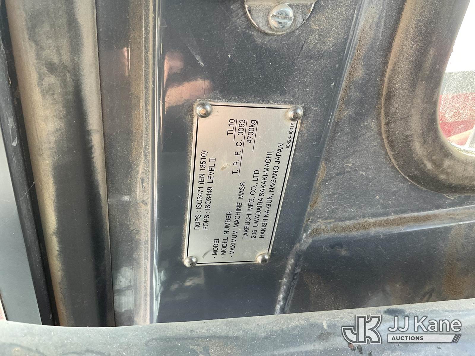 2016 Takeuchi TL10CRHF Skid Steer Loader, s/n 201002180, Kubota 3.8L Hydrostatic, diesel, with aux hydraulics, rubber tracks, EROPS, CO-OP Owned & Maintained. Garage Kept (Runs & Moves) (Seller States: Had Coolant Blow By, Assumed Head Gaskets Were Bad, Removed Head Found Cylinder Wall Scoring On Cylinder #2. Replaced Head Gasket, Put Back Together, No Coolant Blow By. Will Burn Oil Cause Of Scoring On Cylinder Wall On #2.) (Reads 1,438 hours) NOTE: This unit is being sold AS IS/WHERE IS via Timed Auction and is located in Wilton, IA. For more information contact Jeff Schneider @ 816-596-0596. Removal by appointment only, Buyer/Hauler must present copy of paid invoice or release form upon arrival. Purchaser acknowledges ALL lots must be removed within 10 business days of Auction, or a storage fee may be incurred. For load out and pick up information, please reference the release form sent out after purchase. (Buyer is responsible for removal. Assistance by consignor or JJ Kane Auctions is not assured.) (Buyer is responsible for removal. Assistance by consignor or JJ Kane Auctioneers is not assured.)
