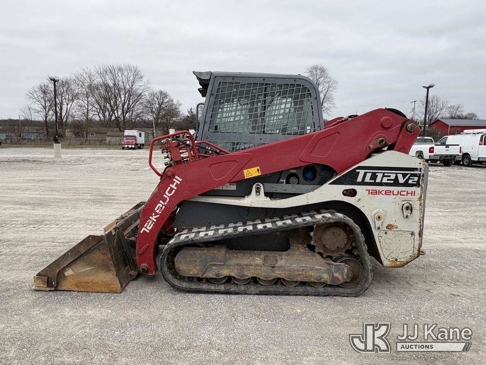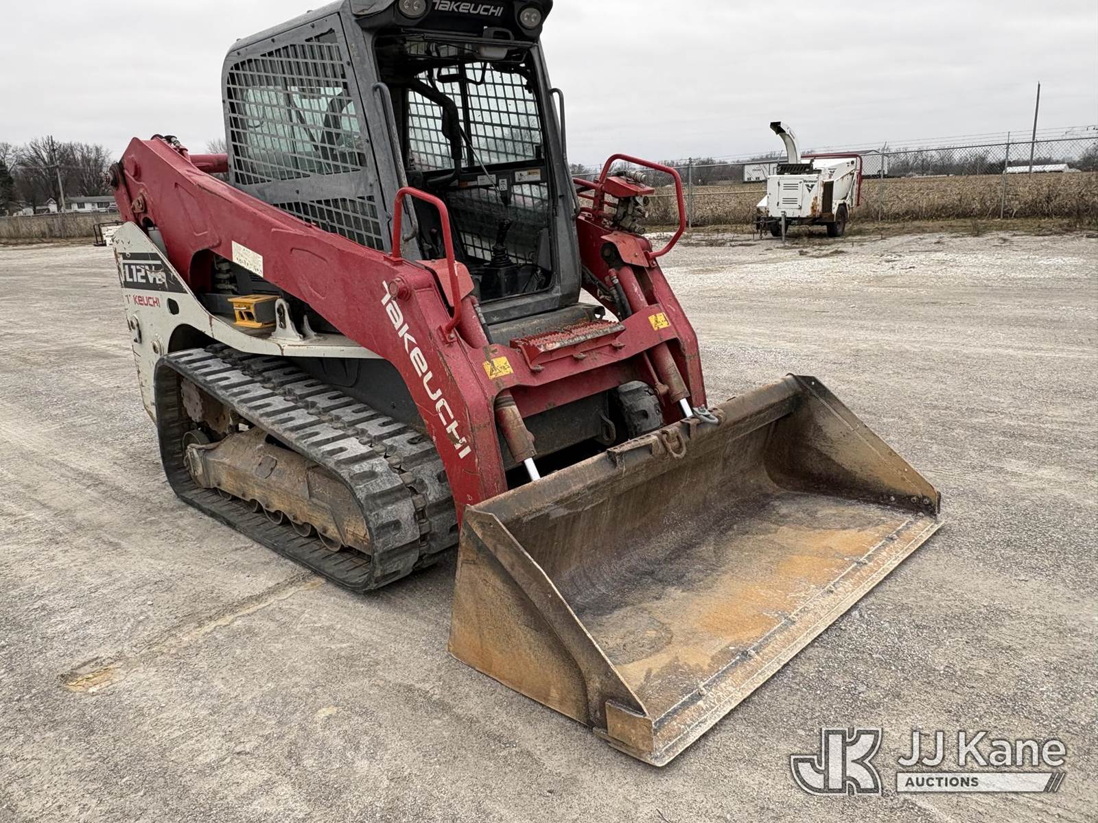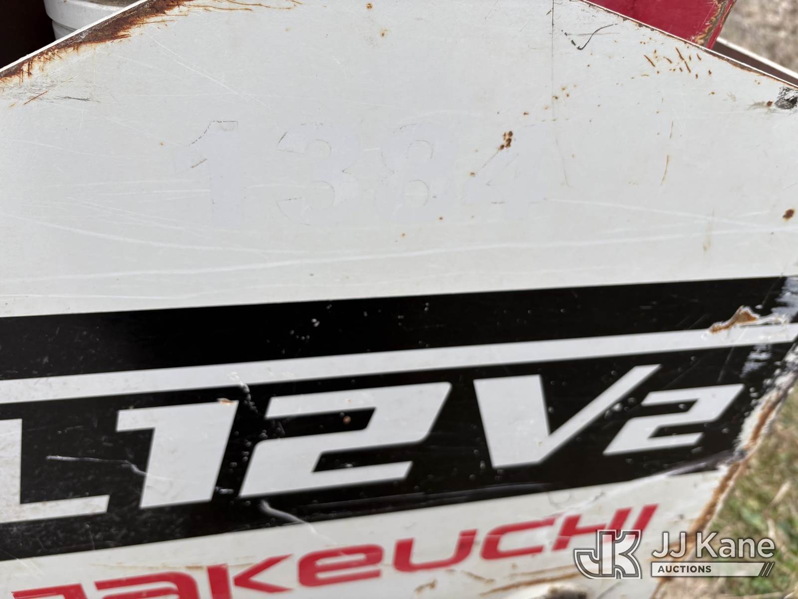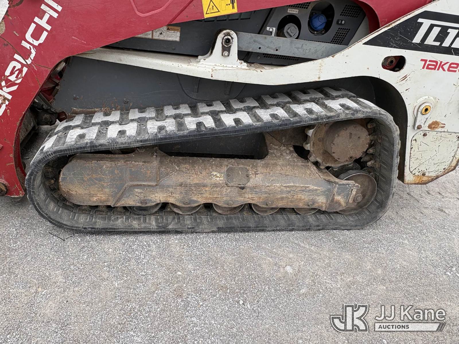 2016 Takeuchi TL12V2 Tracked Skid Steer Loader, s/n 412000199, Kubota Hydraulic Driven, diesel, A/C, with rubber tired tracks, loader bucket & ROPS, SN plate missing. (Runs, Moves, Operates) (paint and body damage) (Reads 3,049 hours) NOTE: This unit is being sold AS IS/WHERE IS via Timed Auction and is located in Hawk Point, MO. Inspection & preview days for this unit are the 2 business days prior to the first day of items closing for this auction, item is located at 25 State Highway A Hawk Point, MO 63349 and hours of operations are 8a-4p. For pre-sale questions, please contact Adam Stanek at (636) 295-1594. (Buyer is responsible for removal. Assistance by consignor or JJ Kane Auctions is not assured.)