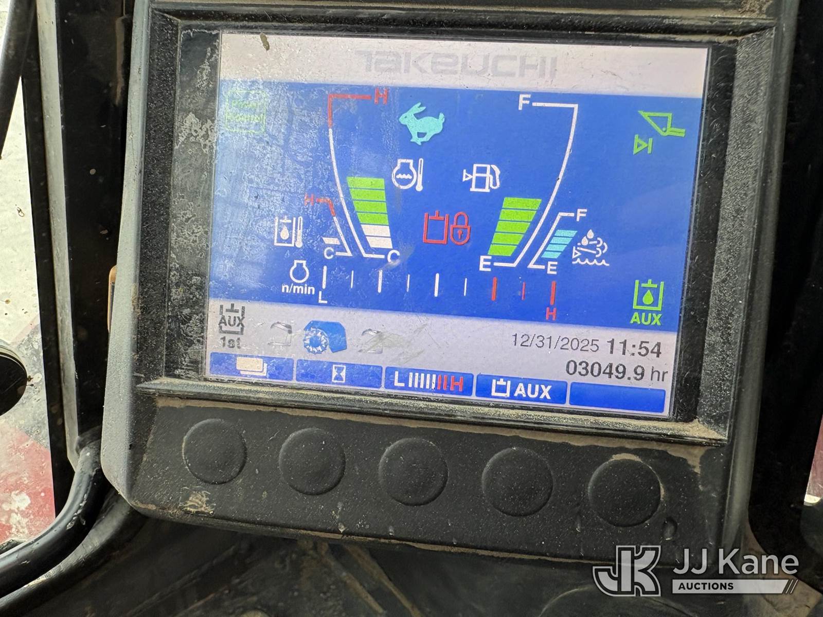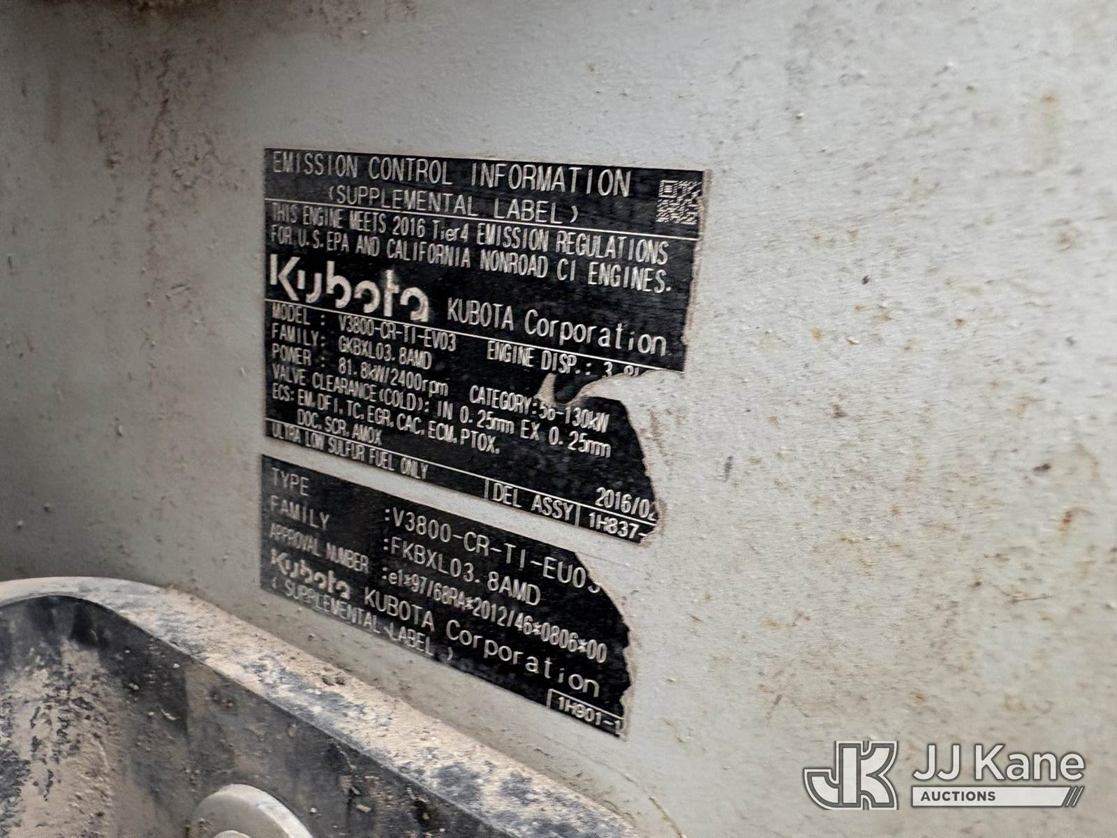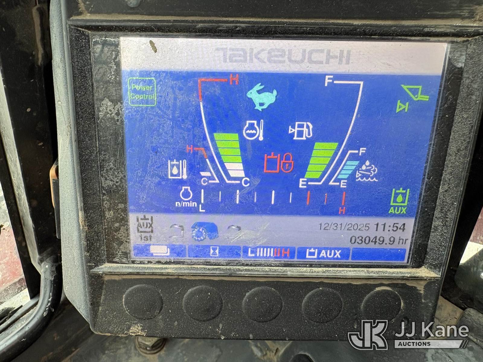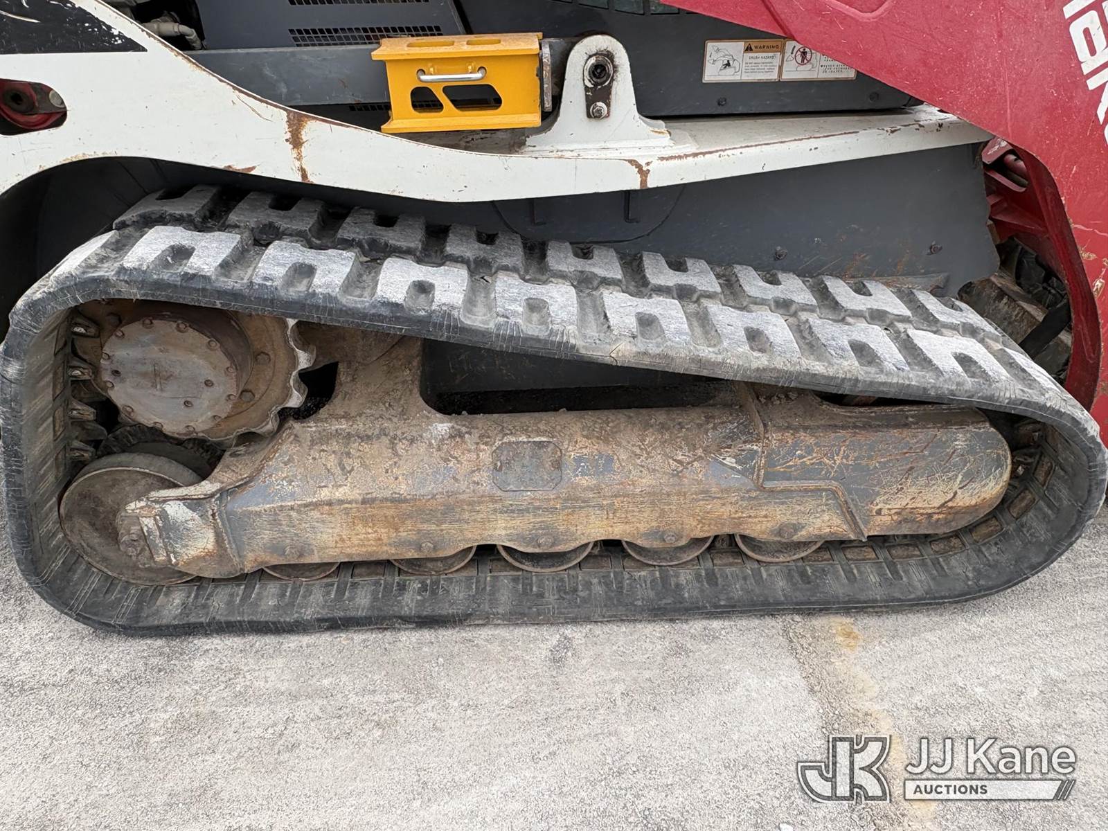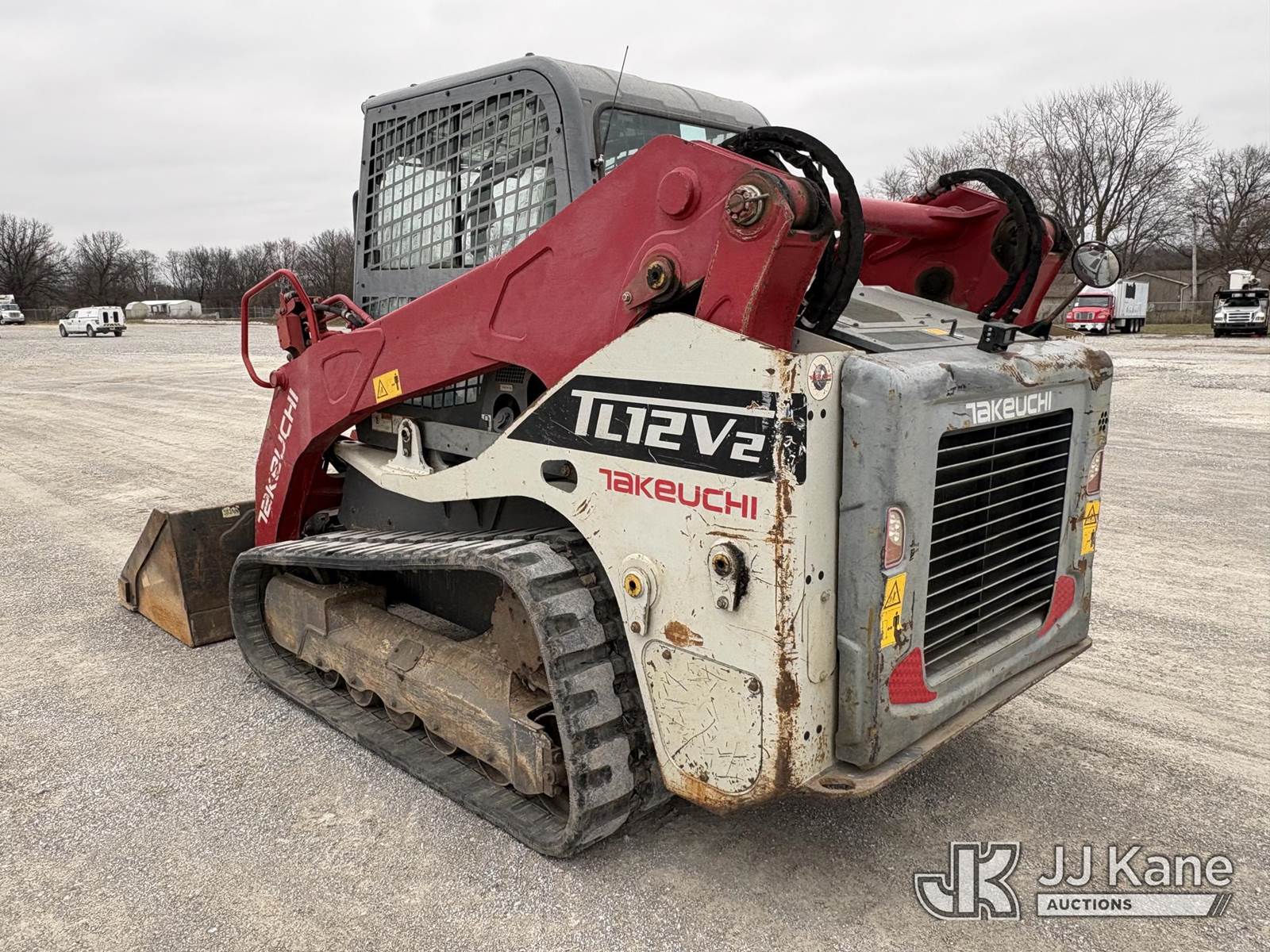 2016 Takeuchi TL12V2 Tracked Skid Steer Loader, s/n 412000199, Kubota Hydraulic Driven, diesel, A/C, with rubber tired tracks, loader bucket & ROPS, SN plate missing. (Runs, Moves, Operates) (paint and body damage) (Reads 3,049 hours) NOTE: This unit is being sold AS IS/WHERE IS via Timed Auction and is located in Hawk Point, MO. Inspection & preview days for this unit are the 2 business days prior to the first day of items closing for this auction, item is located at 25 State Highway A Hawk Point, MO 63349 and hours of operations are 8a-4p. For pre-sale questions, please contact Adam Stanek at (636) 295-1594. (Buyer is responsible for removal. Assistance by consignor or JJ Kane Auctions is not assured.)