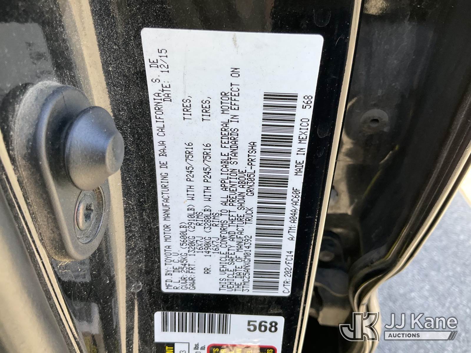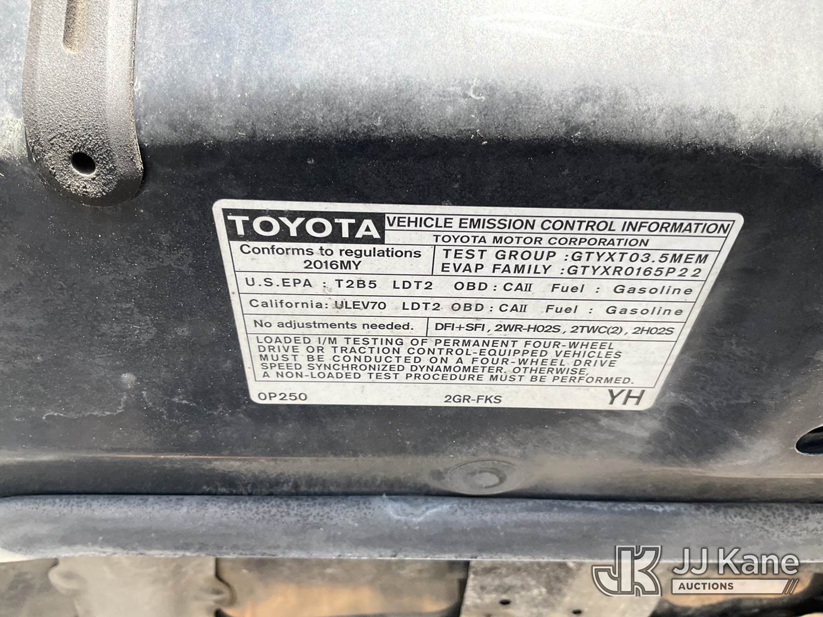 2016 Toyota Tacoma 4x4 Crew-Cab Pickup Truck, 6-cyl gas, Auto, A/C, with bed cap, (137,582 miles) (Runs & Moves) This is a Titled Item NOTE: This unit is being sold AS IS/WHERE IS via Timed Auction and is located in Salt Lake City, UT. Inspection & preview days for this unit are the 2 business days prior to the first day of items closing for this auction, item is located at 2353 N Redwood Rd Salt Lake City, UT 84116 and hours of operations are 8a-4p. Titles executed exactly as bidder registered. Ensure your name and/or business name and address in JJ Kane and/or ProxiBid is correct before bidding. For pre-sale questions, please contact Office Staff @ (801) 519-0123. (Buyer is responsible for removal. Assistance by consignor or JJ Kane Auctions is not assured.)