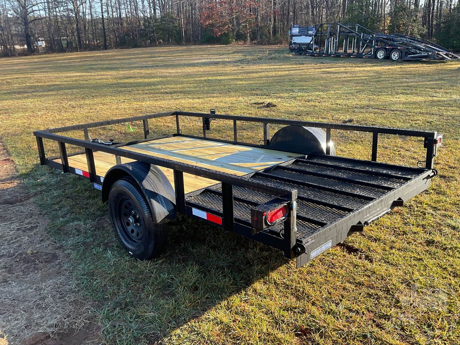 UNUSED UTILITY TRAILER 6'X12', SINGLE AXLE, REAR GATE, WOOD DECKING, COVERED WHEELS, 2" BALL, 205/75R15 TIRES, 2990 GVWR