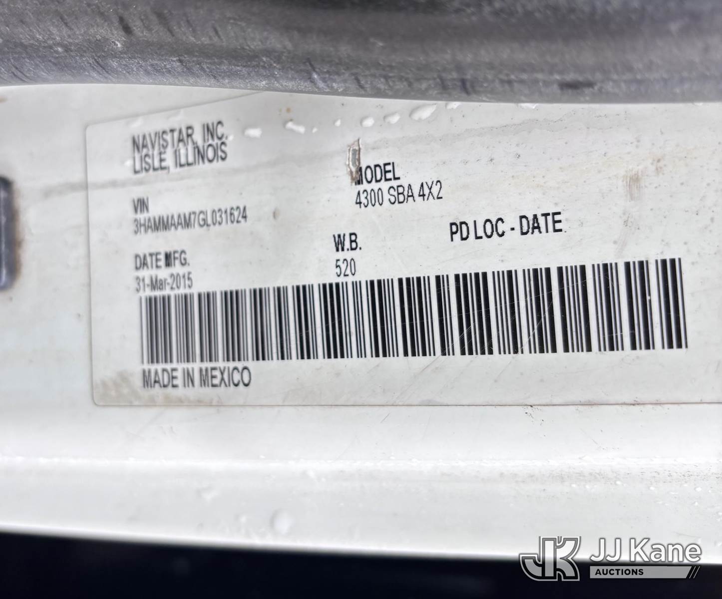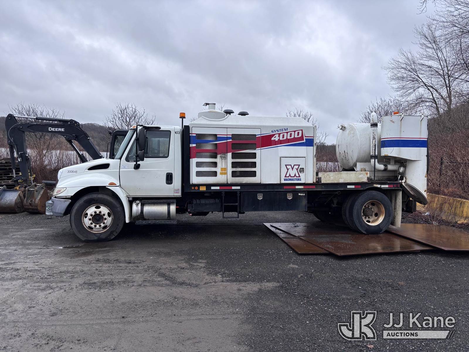 Vacmasters VND S4000, Vacuum Excavation System s/n 1603-1082VND S4, John Deere 6.8L diesel, mounted on 2016 International DuraStar 4300 Flatbed Truck, MaxxForce 7.6L Diesel, 4X2, Auto, A/C, (85,298 miles) (Vac Unit in Running/Operating Condition: Reads 3,982 Hours) (Chassis Not Running, Cranks, Drivetrain Condition Unknown) (Seller States: Needs Engine) (Reads 5,425 hours) This is a Titled Item NOTE: This unit is being sold AS IS/WHERE IS via Timed Auction and is located in Woodbridge, CT. For pre-sale questions, please contact Jarret Charpentier at 508-395-0297 (Call/Text) or jarret@jjkane.com (Buyer is responsible for removal. Assistance by consignor or JJ Kane Auctions is not assured.)