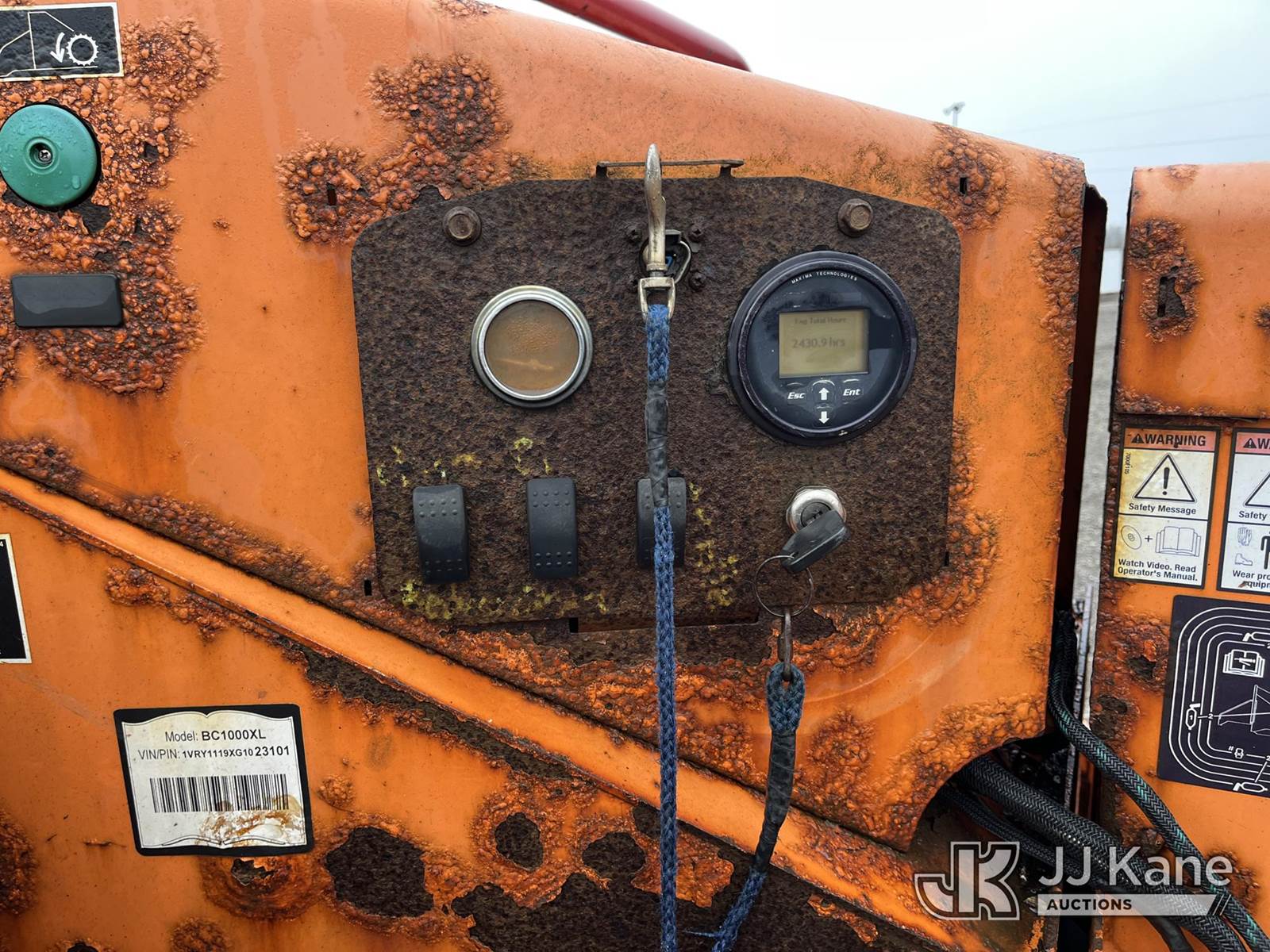 2016 Vermeer BC1000XL Chipper (12in Drum), s/n 1VRY1119XG1023101, Gas, trailer mtd (Not Running, Condition Unknown, Body & Rust Damage. Seller States CHIPPER NEEDS ALTERNATOR, NEW BATTERY, NEW BLADES, BRAKES, HAS WIRING ISSUES - WILL NOT START. CHIPPER HAS RUST ON ALL PANELS) (Reads 2,430 hours) NOTE: This unit is being sold AS IS/WHERE IS via Timed Auction and is located in Louisville, OH. Inspection & preview days for this unit are the 2 business days prior to the first day of items closing for this auction, item is located at 3648 Beck Ave Louisville, OH 44641 and hours of operations are 8a-4p. For pre-sale questions, please contact Aaron Coleman @ (330) 495-4041 or aaron.coleman@jjkane.com. (Buyer is responsible for removal. Assistance by consignor or JJ Kane Auctions is not assured.)