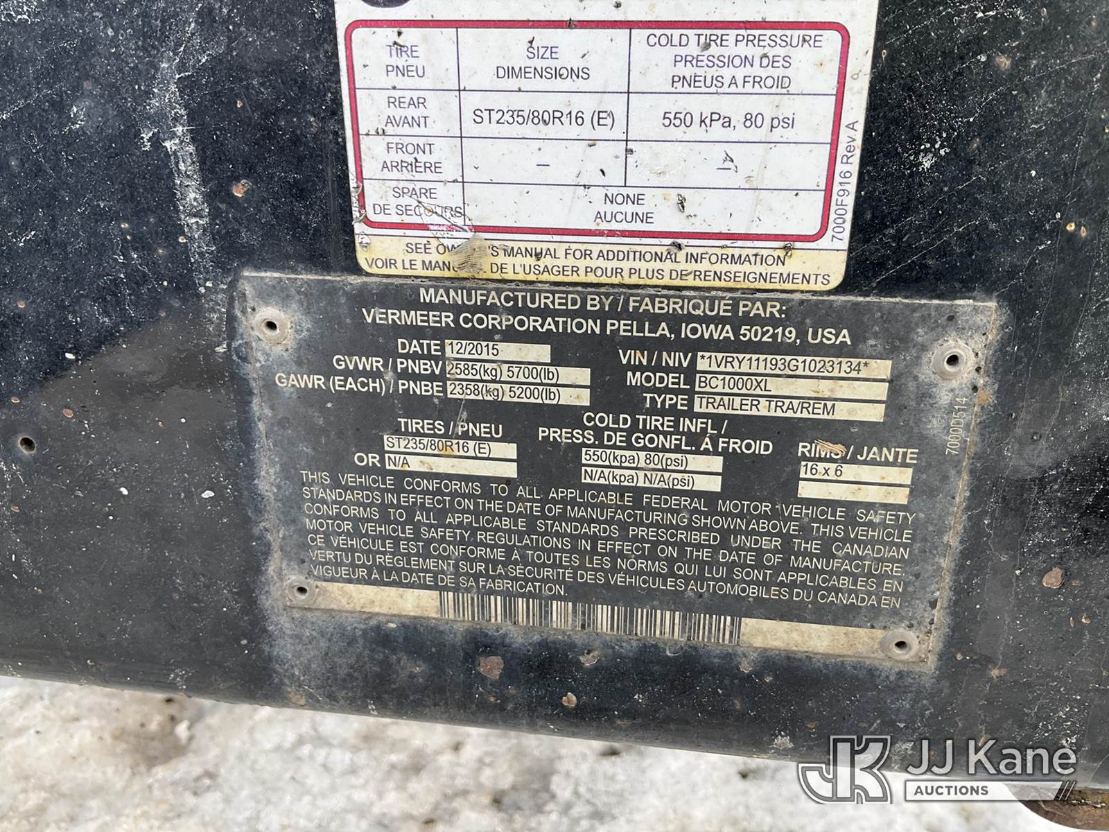 2016 Vermeer BC1000XL Portable Chipper (12in Drum), Deutz diesel, Trailer Mounted (Engine Runs, Seller States: Needs Engine Work) (Reads 2,923 hours) This is a Titled Item NOTE: This unit is being sold AS IS/WHERE IS via Timed Auction and is located in Rome, NY. Inspection & preview days for this unit are the 2 business days prior to the first day of items closing for this auction, item is located at 5835 Success Dr Rome, NY 13440 and hours of operations are 8a-4p. For pre-sale questions, please contact Ryan Jackson @ (315) 749-3790 or Ryan.Jackson@jjkane.com. (Buyer is responsible for removal. Assistance by consignor or JJ Kane Auctions is not assured.)