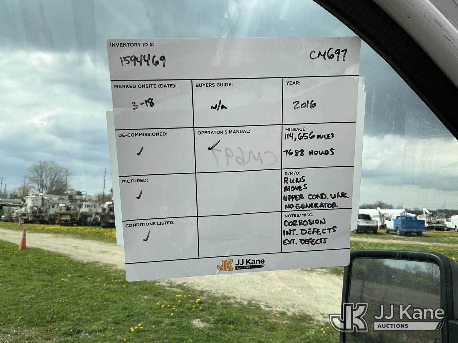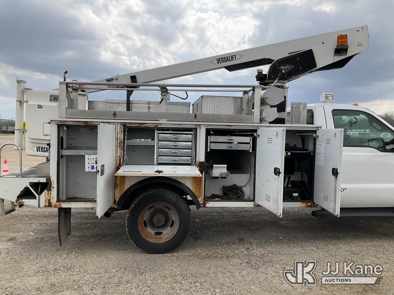 Versalift TEL29, 34 ft, Telescopic Non-Insulated Bucket Truck s/n AG150424, with single man bucket, mounted behind cab on 2016 Ford F-450 SD Service Truck, 10-cyl Gas, Auto, A/C, with go-light, (114,656 miles) ((Runs, Moves & Upper Condition Unknown - No Generator To Operate Upper) (Corrosion, Interior Defects, Exterior Defects - See Pictures)) (Reads 7,688 hours) This is a Titled Item NOTE: This unit is being sold AS IS/WHERE IS via Timed Auction and is located in Charlotte, MI. Inspection & preview days for this unit are the 2 business days prior to the first day of items closing for this auction, item is located at 750 Island Hwy Charlotte, MI 48813 and hours of operations are 8a-4p. For pre-sale questions, please contact Corey Cook at (517) 983-0796 or corey.cook@jjkane.com (Missing manuals, See Auction Company for Manufacturers Information to obtain manuals) (Buyer is responsible for removal. Assistance by consignor or JJ Kane Auctions is not assured.)