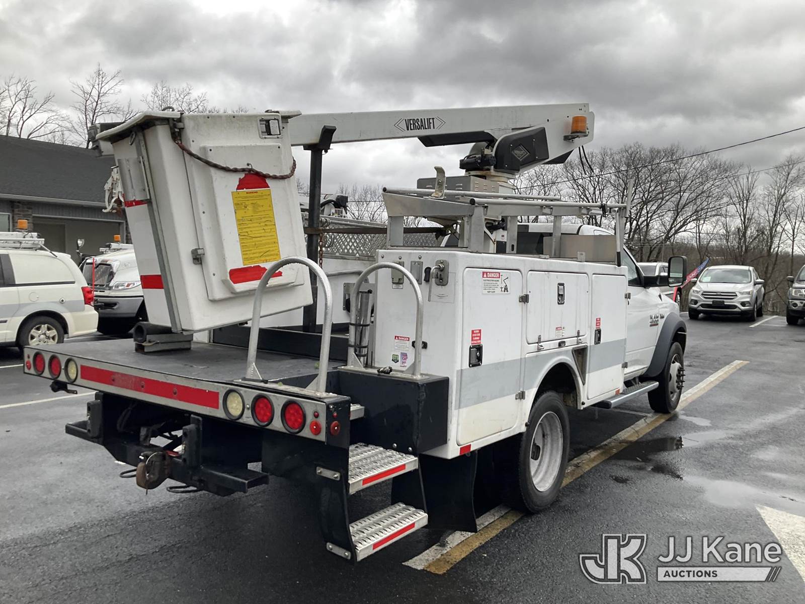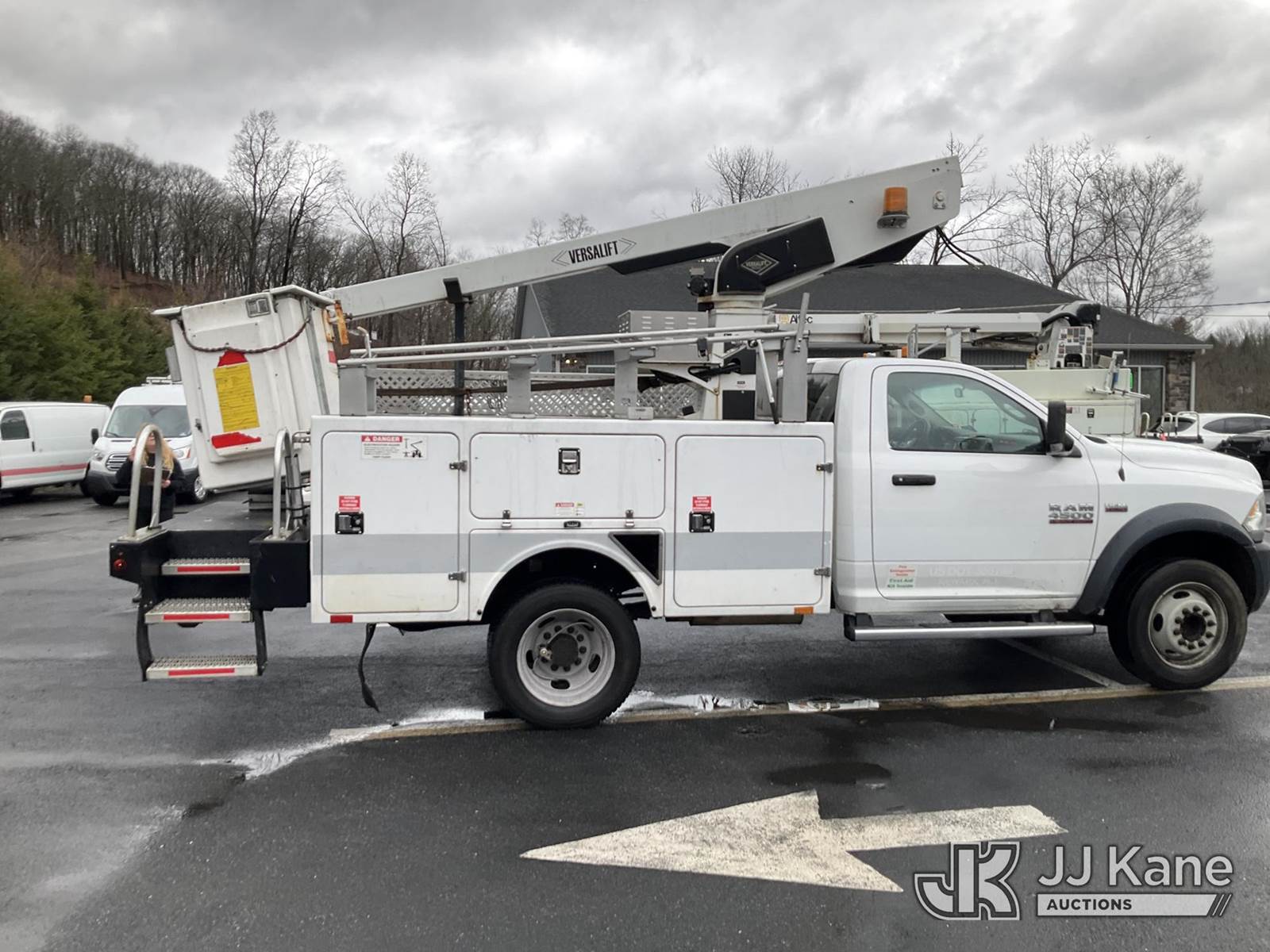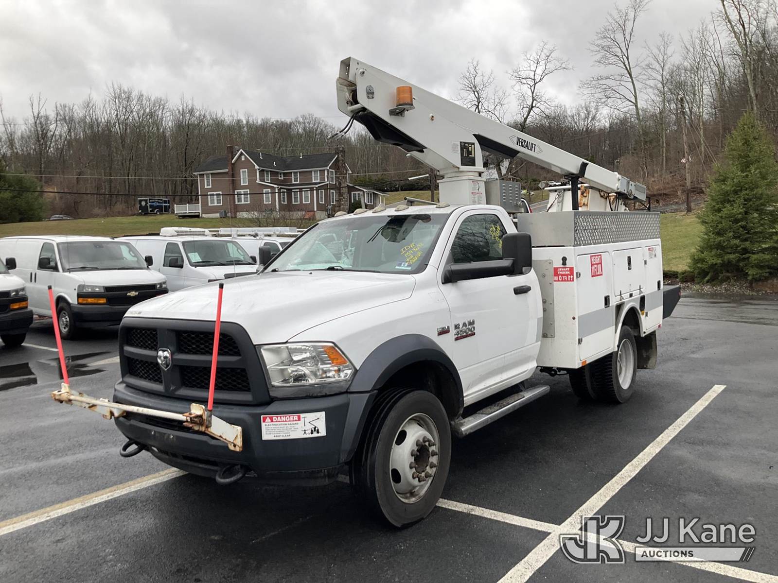 Versalift TEL29NE03, 34 ft, Telescopic Non-Insulated Bucket Truck s/n AG160118, with Single Man Bucket, mounted behind cab on 2016 RAM 4500 Service Truck, 8-cyl gas, Auto, A/C, (77,327 miles) (Runs & Moves, Upper Hydraulic Lines Disconnected, Upper Not Operating, Condition Unknown) (Removal is by Appointment Only, Buyer MUST make a appointment prior to picking up, Buyer/Transporter Must have PAID IN FULL RELEASE. No onsite assistance available, Please Come prepared.) This is a Titled Item NOTE: This unit is being sold AS IS/WHERE IS via Timed Auction and is located in Branchville, NJ. Inspection & preview days for this unit are by appointment only; please contact us at contact@jjkane.com or 84-Go-JJKane for more details. For pre-sale questions, please contact the on-site office @ (973) 948-2026 or wtrbranchville@gmail.com. (Missing manuals, See Auction Company for Manufacturers Information to obtain manuals) (Buyer is responsible for removal. Assistance by consignor or JJ Kane Auctions is not assured.)