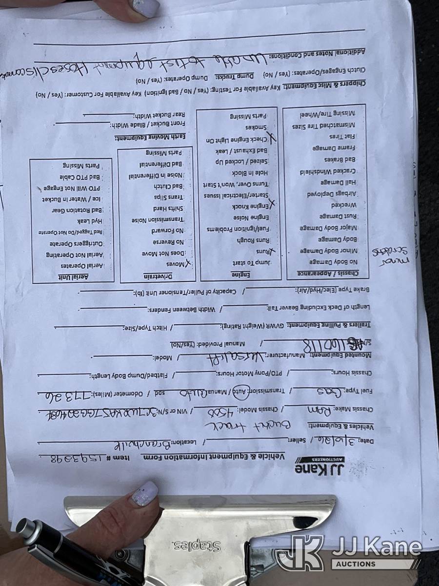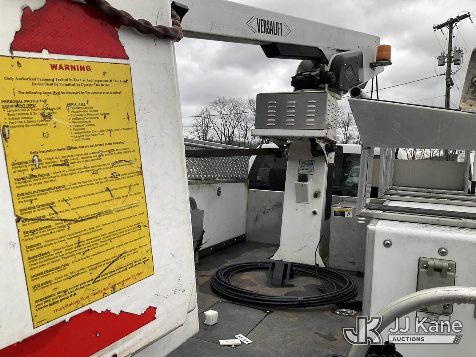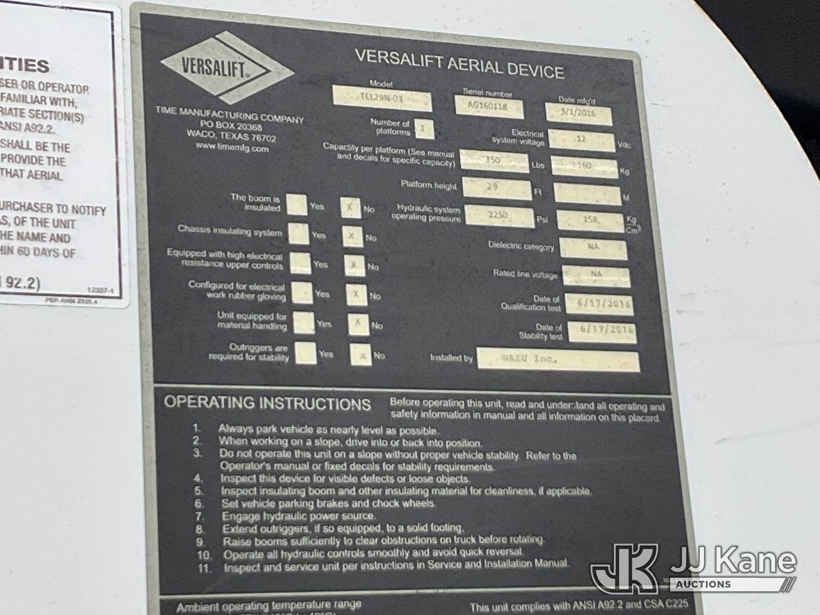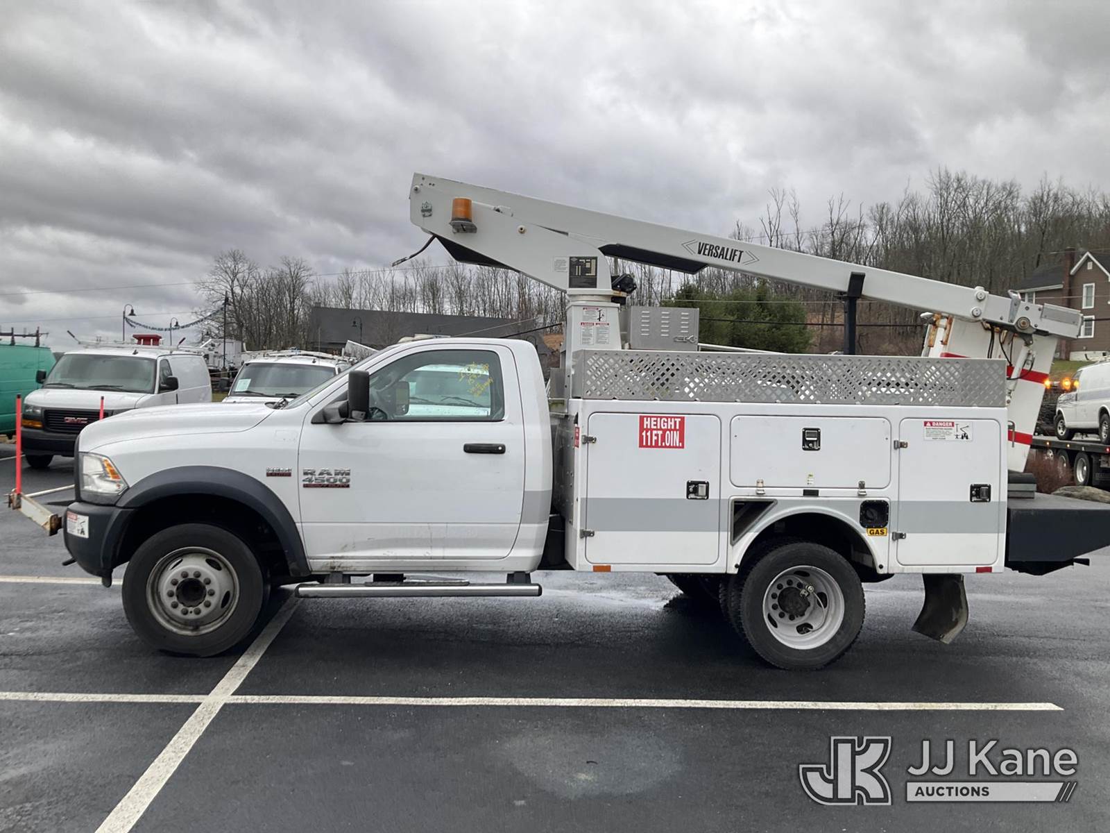 Versalift TEL29NE03, 34 ft, Telescopic Non-Insulated Bucket Truck s/n AG160118, with Single Man Bucket, mounted behind cab on 2016 RAM 4500 Service Truck, 8-cyl gas, Auto, A/C, (77,327 miles) (Runs & Moves, Upper Hydraulic Lines Disconnected, Upper Not Operating, Condition Unknown) (Removal is by Appointment Only, Buyer MUST make a appointment prior to picking up, Buyer/Transporter Must have PAID IN FULL RELEASE. No onsite assistance available, Please Come prepared.) This is a Titled Item NOTE: This unit is being sold AS IS/WHERE IS via Timed Auction and is located in Branchville, NJ. Inspection & preview days for this unit are by appointment only; please contact us at contact@jjkane.com or 84-Go-JJKane for more details. For pre-sale questions, please contact the on-site office @ (973) 948-2026 or wtrbranchville@gmail.com. (Missing manuals, See Auction Company for Manufacturers Information to obtain manuals) (Buyer is responsible for removal. Assistance by consignor or JJ Kane Auctions is not assured.)