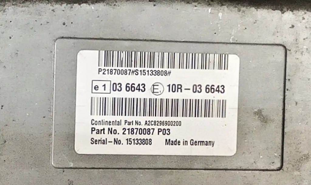 2016 Volvo VNL Aftertreatment Control Module (ACM), Part # 21870087-P03 (Replaced By 22449432), Continental P/N A2C8296900200, S/N 15133808