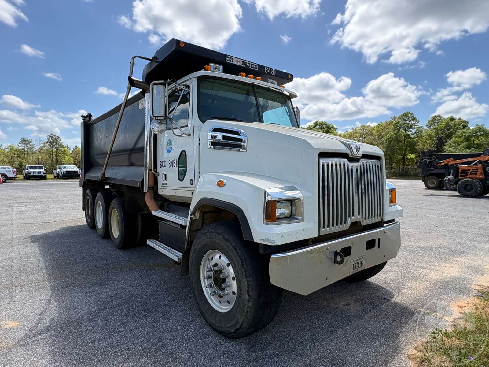 TRI-AXLE DUMP TRUCK, DETROIT, DD13, EATON FULLER, 10 SPEED, AIR BRAKES, 20K FRONTS, 46K REARS, AIR LIFT, OX BODIES, STEEL, DUMP BODY, SPREADER APRON, TARP, AIR GATE, HIGH LIFT GATE, 66000 LBS GVWR, 425/65R22.5 STEER TIRES, 11R24.5 TIRES, HENDRICKSON SPRING SUSPENSION, 11R22.5 LIFT AXLE, ODOMETER READS: 205849, ***EMMISSIONS CODE EXHIBITED, MUST BE TRAILERED***LOCATED IN DEFUNIAK SPRINGS, FL******LOCATED IN DEFUNIAK SPRINGS, FL***