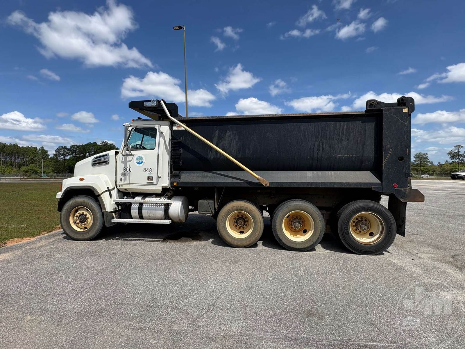 QUAD AXLE DUMP TRUCK, Â MACK, MP8-415C 12.8L DIESEL, HP 550 HP, EATON FULLER, 13 SPEED, AIR BRAKES, AIR RIDE SUSPENSION, STEERABLE LIFT AXLE...