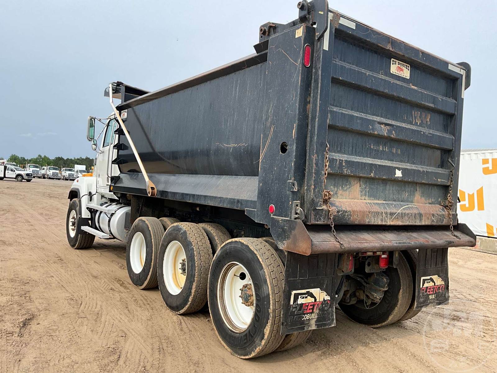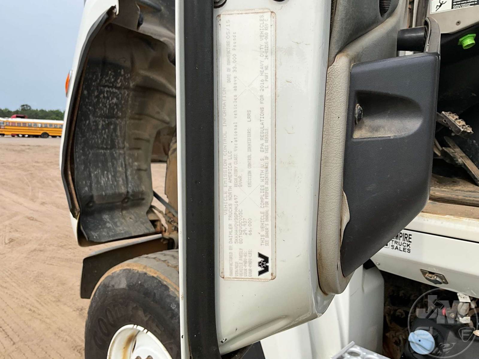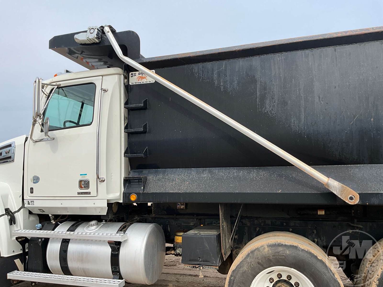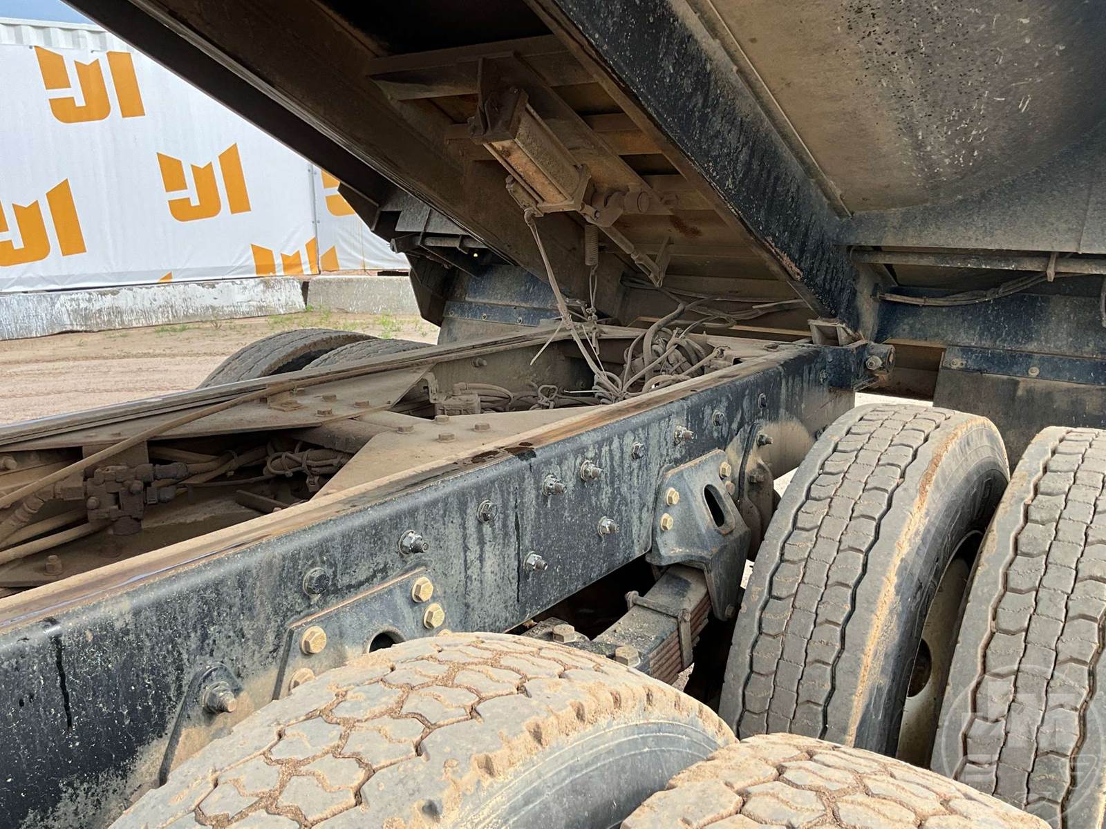 TRI-AXLE DUMP TRUCK, DETROIT, DD13, EATON FULLER, 10 SPEED, AIR BRAKES, 225" " WB, 20K FRONTS, 46K REARS, DOUBLE FRAME, AIR LIFT, ENGINE BRAKE, DIFF LOCK, CRUISE CONTROL, A/C, OX BODIES, 16', STEEL, DUMP BODY, SPREADER APRON, TARP, AIR GATE, HIGH LIFT GATE, 66000 LBS GVWR, 425/65R22.5 STEER TIRES, 11R24.5 TIRES, HENDRICKSON SPRING SUSPENSION, 11R22.5 LIFT AXLE, ODOMETER READS: 205849