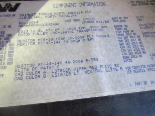 2020 Freightliner Coronado 122 SD Tri Axle Dump Truck - Detroit 505HP, 18 Speed Manual