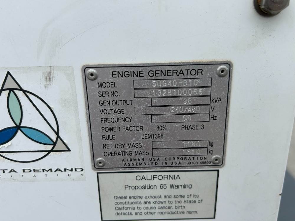 2017 AIRMAN SDG40 GENERATOR