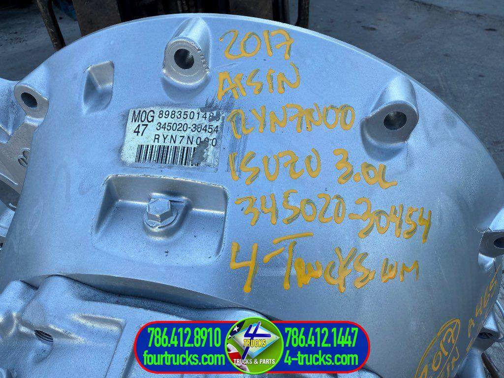 USED 2017 AISIN-SEIKI AUTOMATIC TRANSMISSION FOR AN ISUZU 3.0L 4JJ1-TC ENGINE, MOG47; RYN7N00; 345020-30454; 898350148; TSN:6G-1738; OIL AND FILTER INSPECTED, ALSO OILPAN REMOVED AND CHECKED INSIDE, COMPLETE TRANSMISSION READY TO WORK
