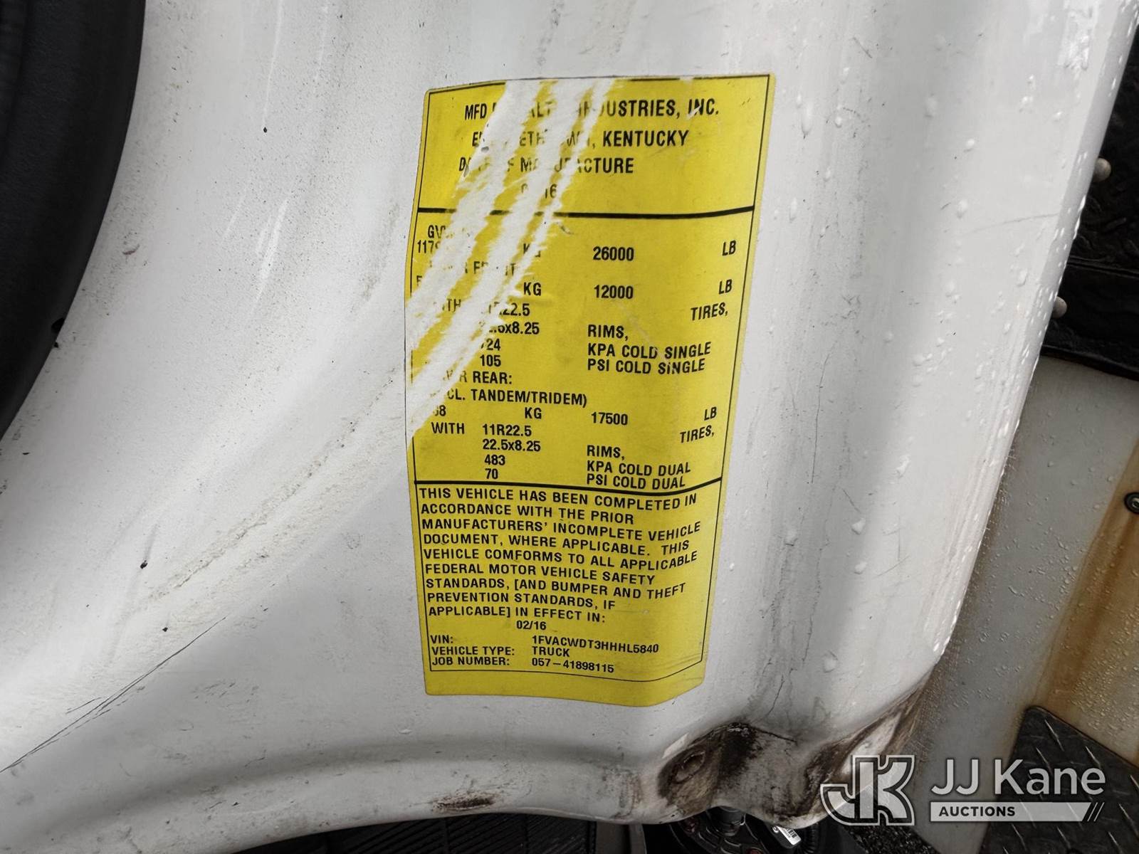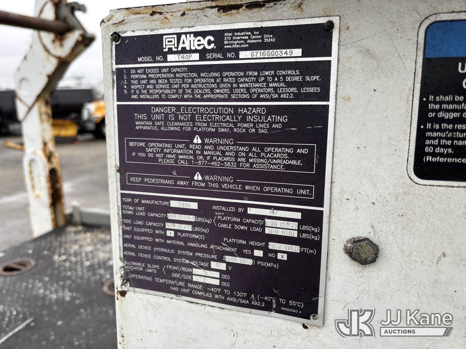 Altec A40P, 40 ft, Telescopic Non-Insulated Cable Placing Bucket Truck s/n 0716GG0349, with Single-Man Basket, center mounted on 2017 Freightliner M2 106 Utility Truck, 6.7L Auto, diesel, A/C, (90,269 miles) (Runs Moves & Upper Operates, Check Engine Light On, Body & Rust Damage) This is a Titled Item NOTE: This unit is being sold AS IS/WHERE IS via Timed Auction and is located in Plymouth Meeting, PA. Inspection & preview days for this unit are the 2 business days prior to the first day of items closing for this auction, item is located at 1402 Conshohocken Rd Plymouth Meeting, PA 19462 and hours of operations are 8a-4p. For pre-sale questions, please contact Bruce Thomas @ (267) 887-0392 or bruce.thomas.jr@jjkane.com. (Manuals provided in cab) (Buyer is responsible for removal. Assistance by consignor or JJ Kane Auctions is not assured.)
