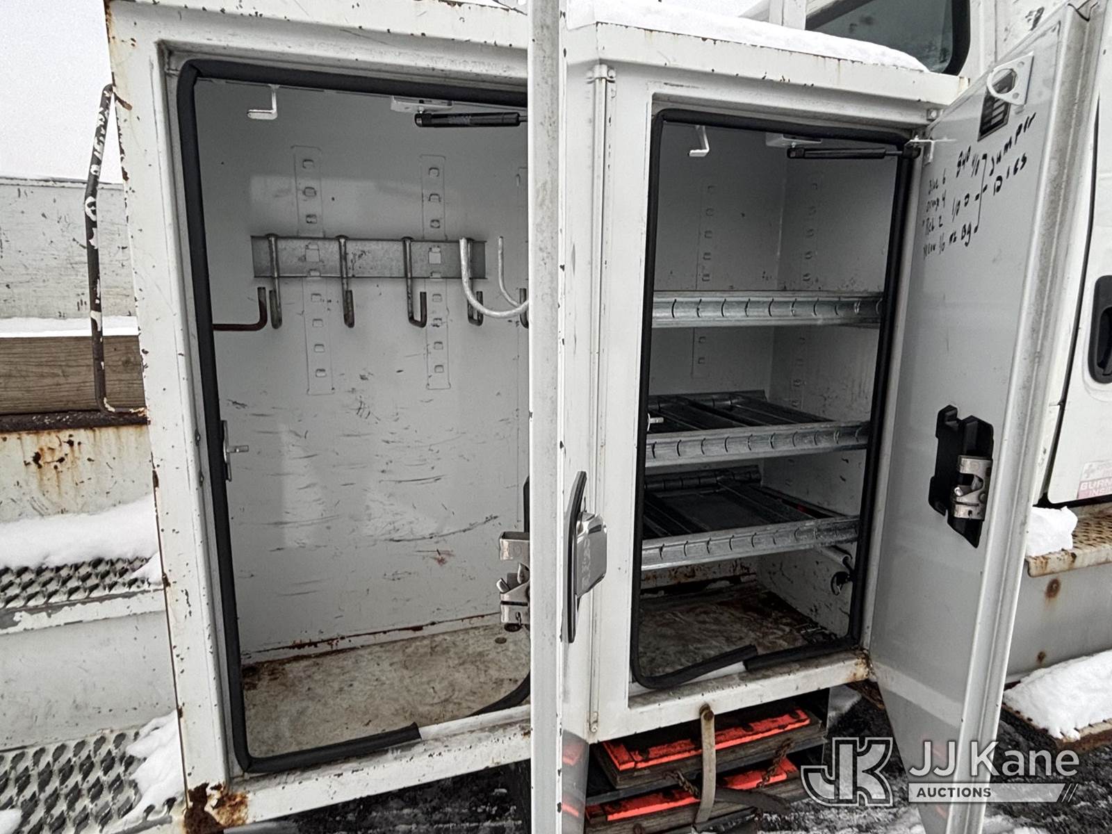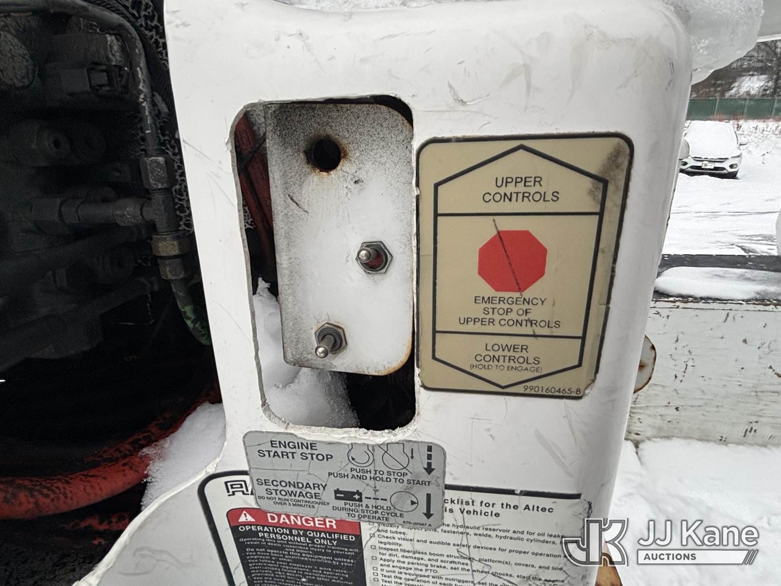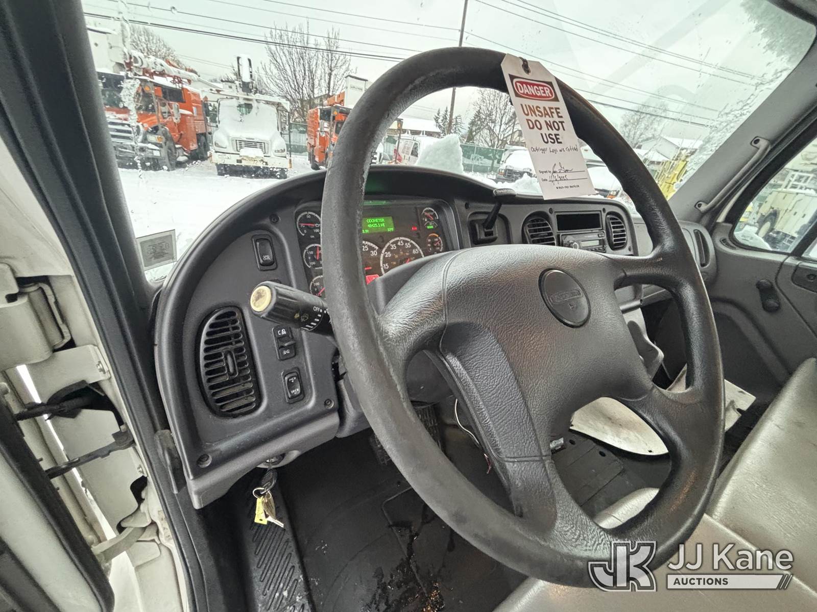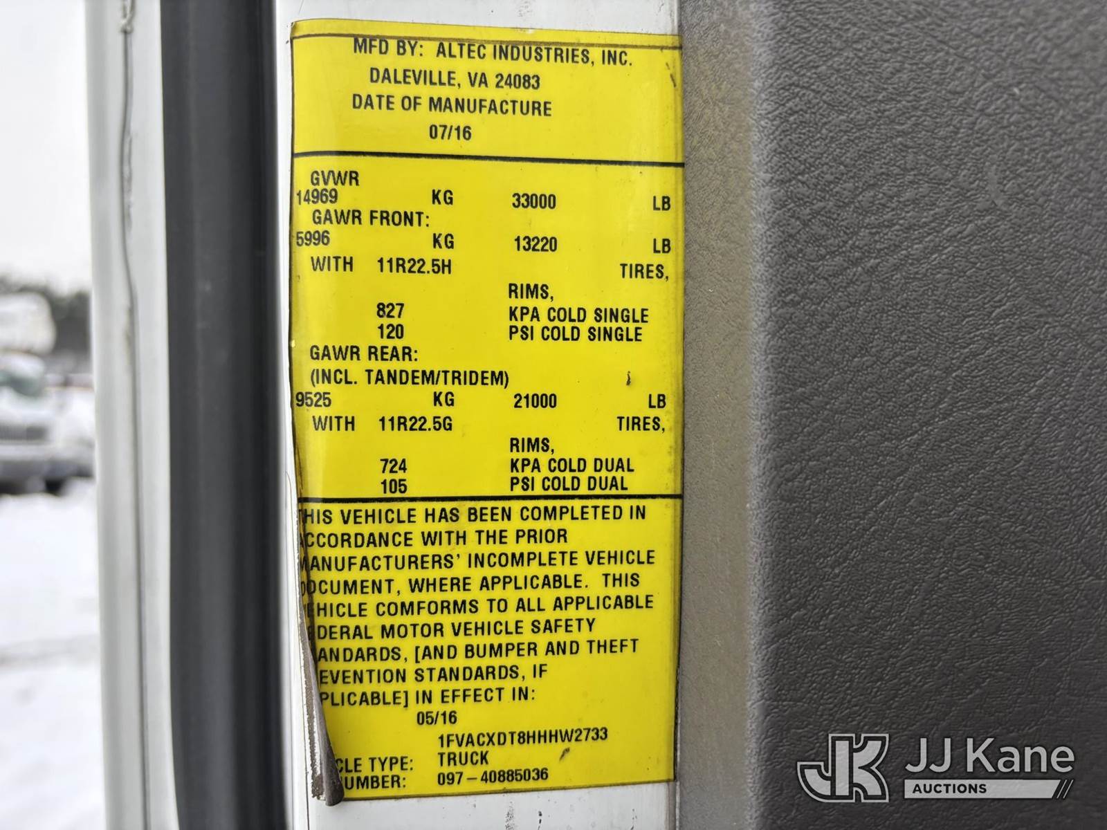Altec AA55, 60 ft, Material Handling Bucket Truck s/n 0816FH3346, with 4 Outriggers, 2-Man Bucket With Jib & Rope Winch On Insulated, Articulating, Non-Over Center Booms, rear mounted on 2017 Freightliner M2 106 Utility Truck, 6.7L L6 Diesel, Auto, A/C, (48,425 miles) (Runs & Moves, Condition Unknown, Red Tagged: Rust Rotted Outriggers, Potential Subbase Weld & Rust Damage, Rear End Damage, Boom Tip Damage, Body & Rust Damage, **Dealer Only** This item has been removed from service due to the listed safety repairs not being completed. The safety items below must be completed by an approved OEM facility before the unit can return to service: REPLACE DAMAGED/RUSTED OUTRIGGER LEGS; COMPLETE ANSI INSPECTION; COMPLETE ANY REQUIRED TESTING AFTER REPAIRS AND INSPECTIONS ARE COMPLETED.) (Reads 9,114 hours) (Bidding Restricted to Licensed Vehicle Dealers Only), This is a Titled Item NOTE: This unit is being sold AS IS/WHERE IS via Timed Auction and is located in Plains, PA. For pre-sale questions, please contact Mary Darlington @ 570-899-4930 or Mary.Darlington@JJKane.com. JJ Kane Plains, PA yard is open for inspection on the Friday and Monday before the sale date from 9:00 am to 3:00 pm. REMOVAL: All items must be removed by 10 calendar days after the sale, Monday - Friday (Excluding Holidays). (Manuals provided in cab) (Buyer is responsible for removal. Assistance by consignor or JJ Kane Auctions is not assured.)