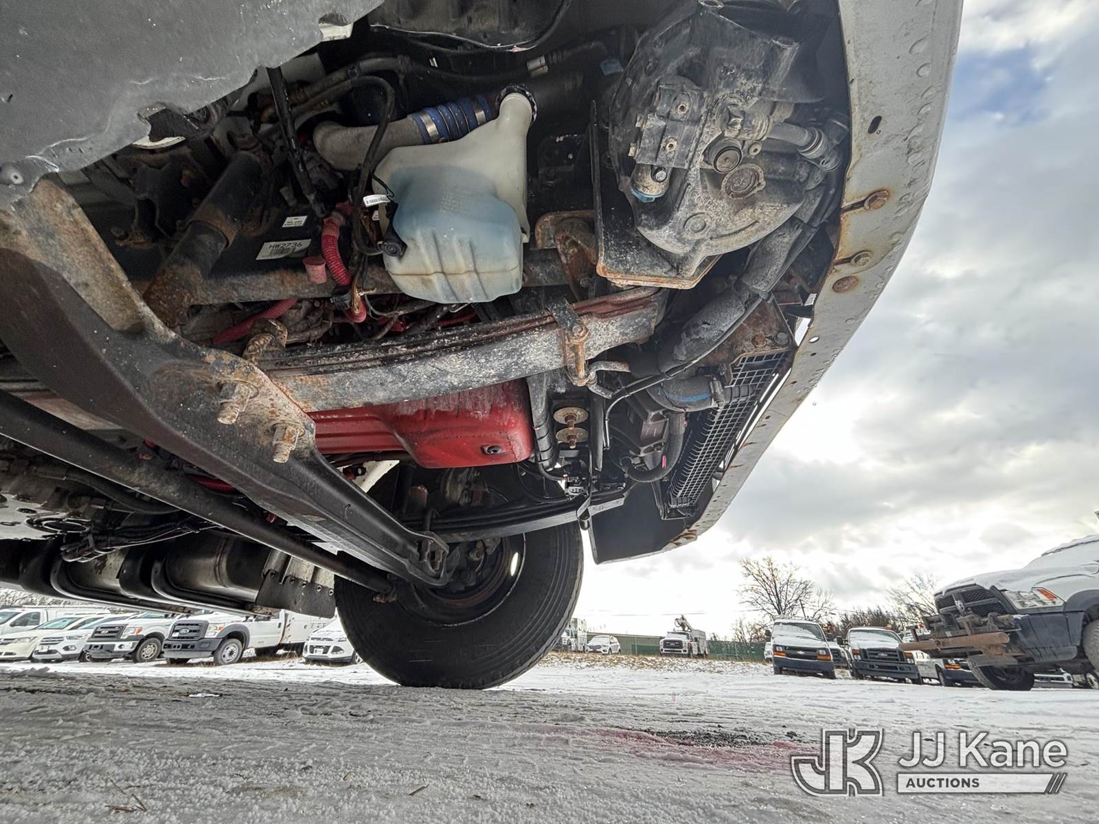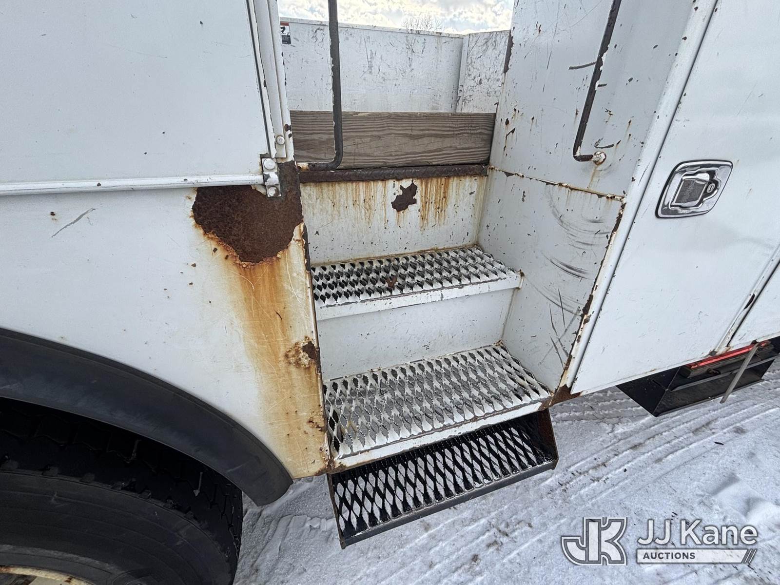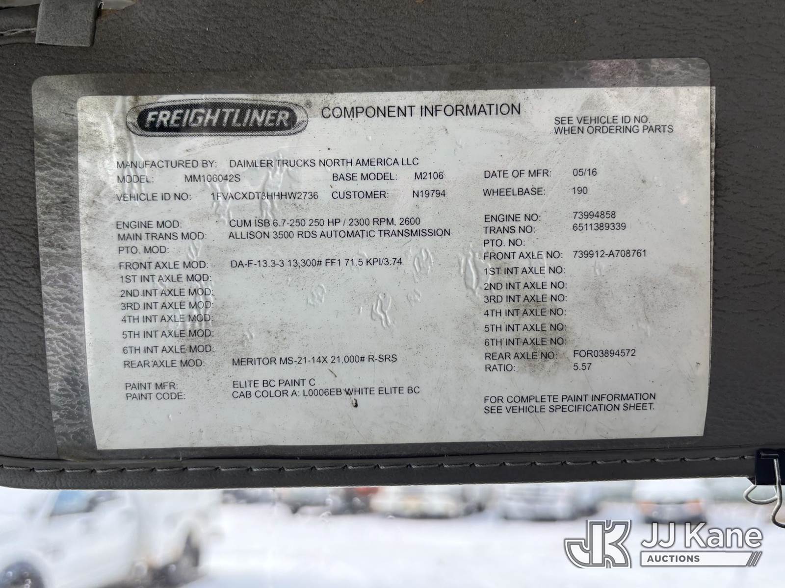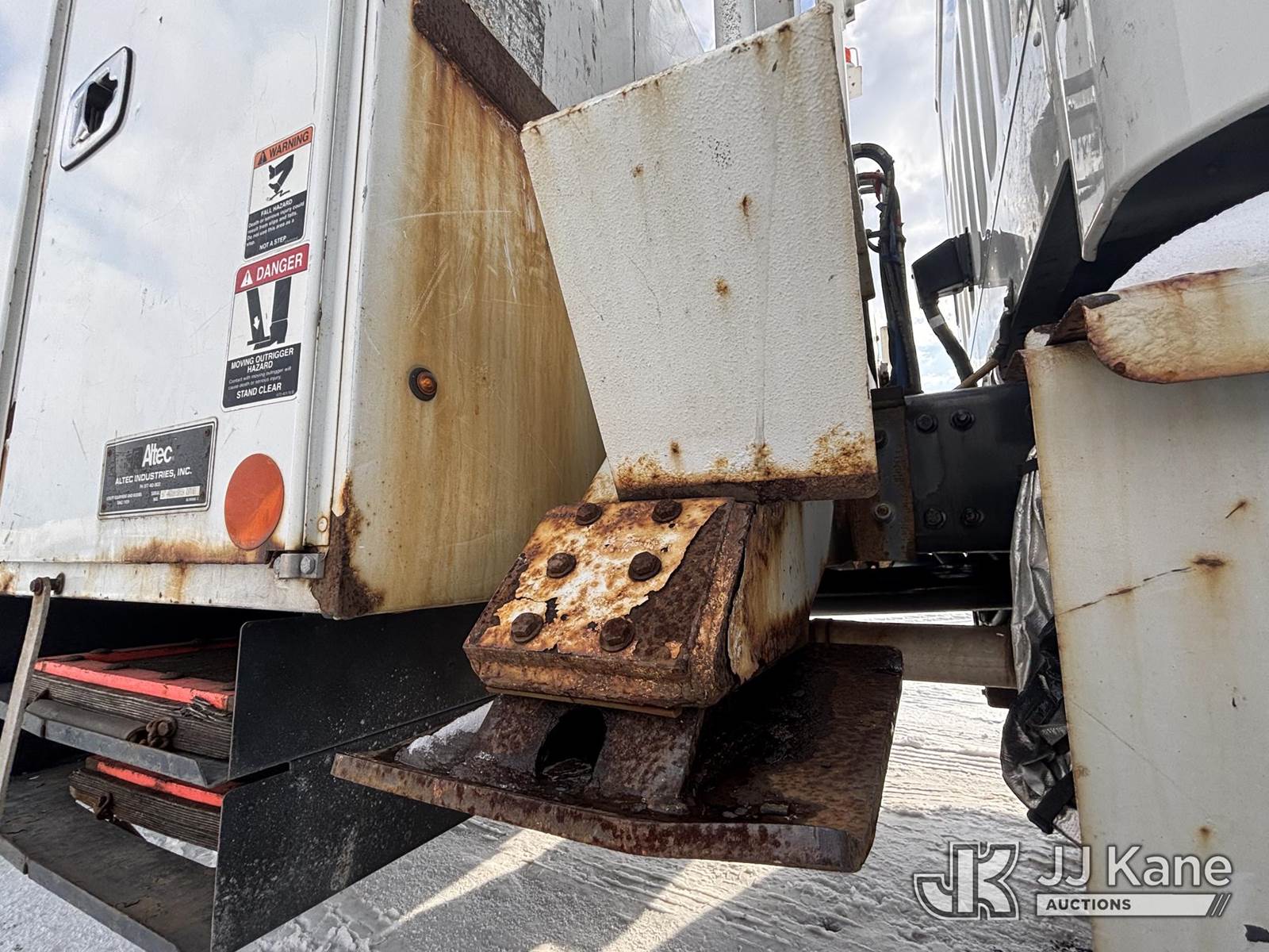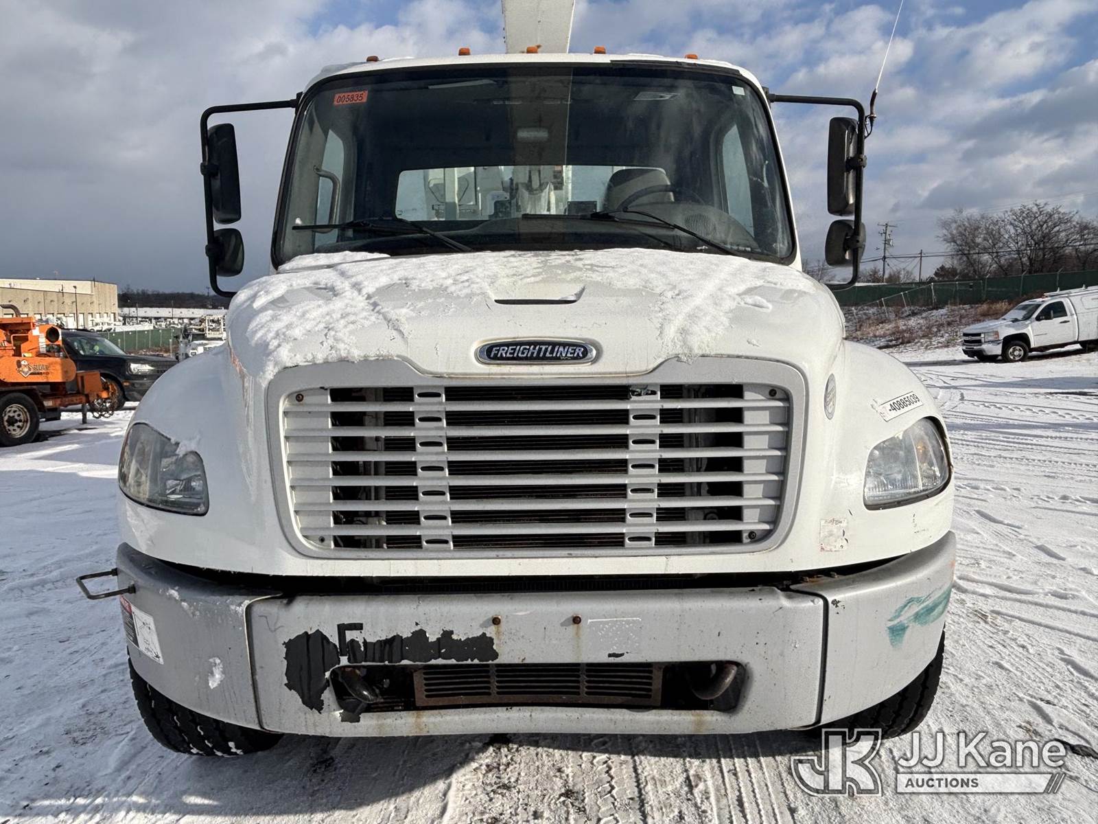 Altec AA55, 60 ft, Material Handling Bucket Truck s/n 0616FH5635, with two-man bucket & 4 hyd outriggers, rear mounted on 2017 Freightliner M2 106 Utility Truck, 6.7L L6 diesel, Auto, A/C, (62,064 miles) (Runs & Moves) (Red Tagged For Rotted Outriggers, Condition Unknown, Check & Service Engine Lights On Dash, Outrigger Feet Warped, Fiberglass Damage On Bucket, Missing Serial Plate, Serial Number Illegible, Main Boom Pin Bearings Damaged, Body & Rust Damage) (Reads 9,534 hours) This is a Titled Item NOTE: This unit is being sold AS IS/WHERE IS via Timed Auction and is located in Plains, PA. For pre-sale questions, please contact Mary Darlington @ 570-899-4930 or Mary.Darlington@JJKane.com. JJ Kane Plains, PA yard is open for inspection on the Friday and Monday before the sale date from 9:00 am to 3:00 pm. REMOVAL: All items must be removed by 10 calendar days after the sale, Monday - Friday (Excluding Holidays). (Manuals provided in cab) (Buyer is responsible for removal. Assistance by consignor or JJ Kane Auctions is not assured.)