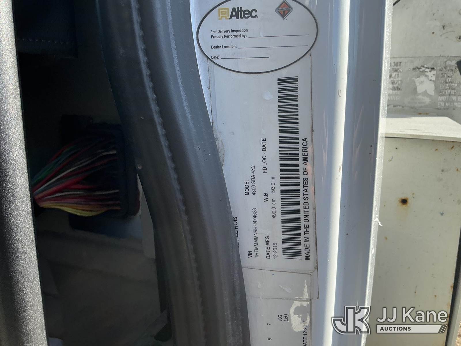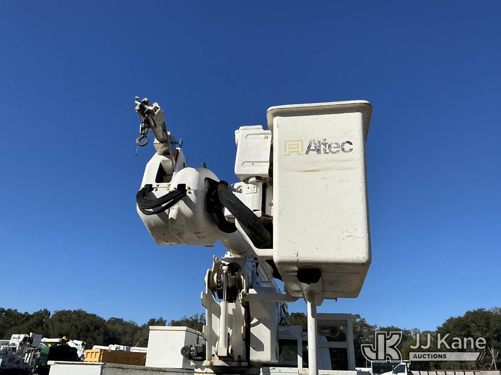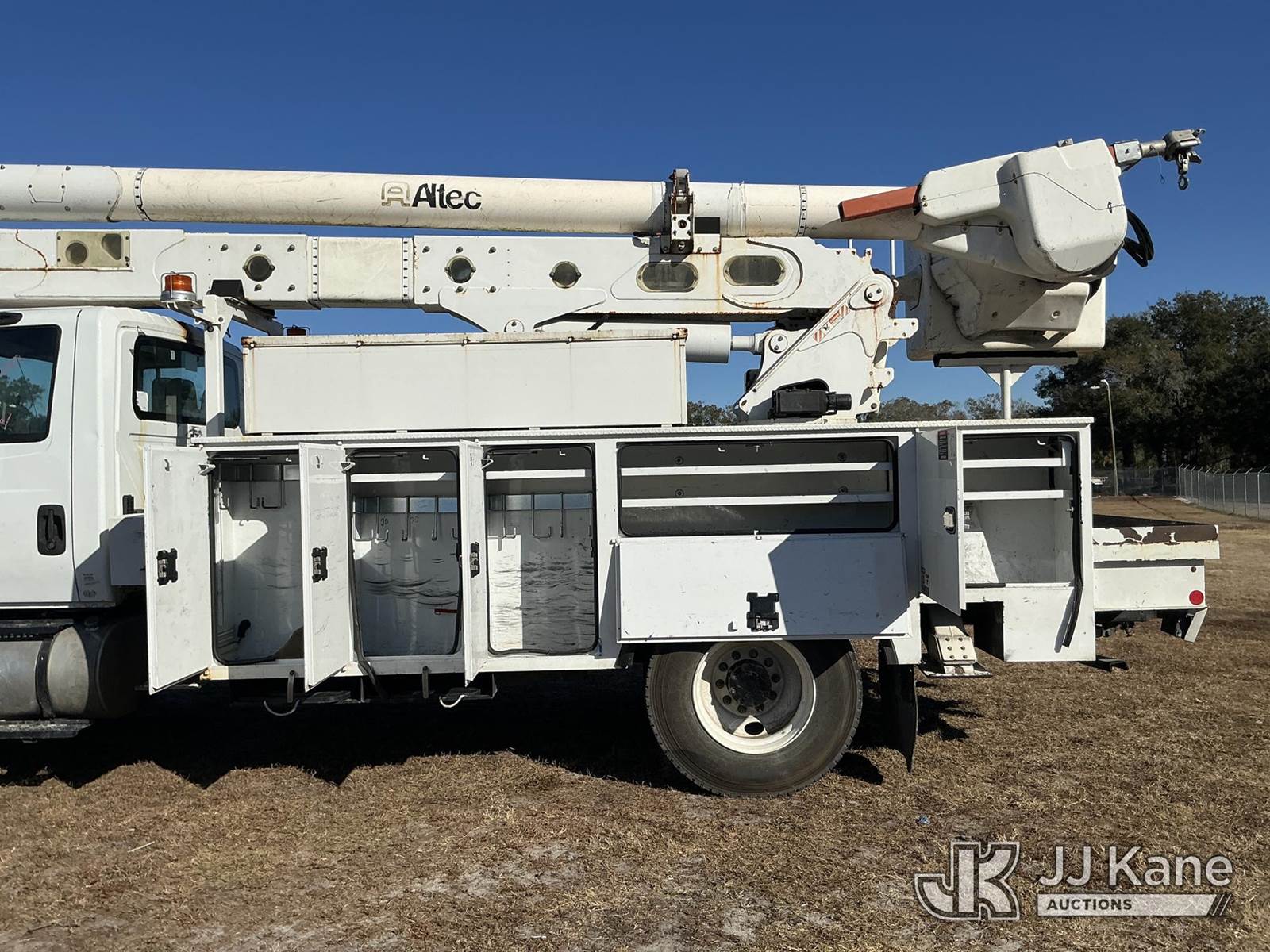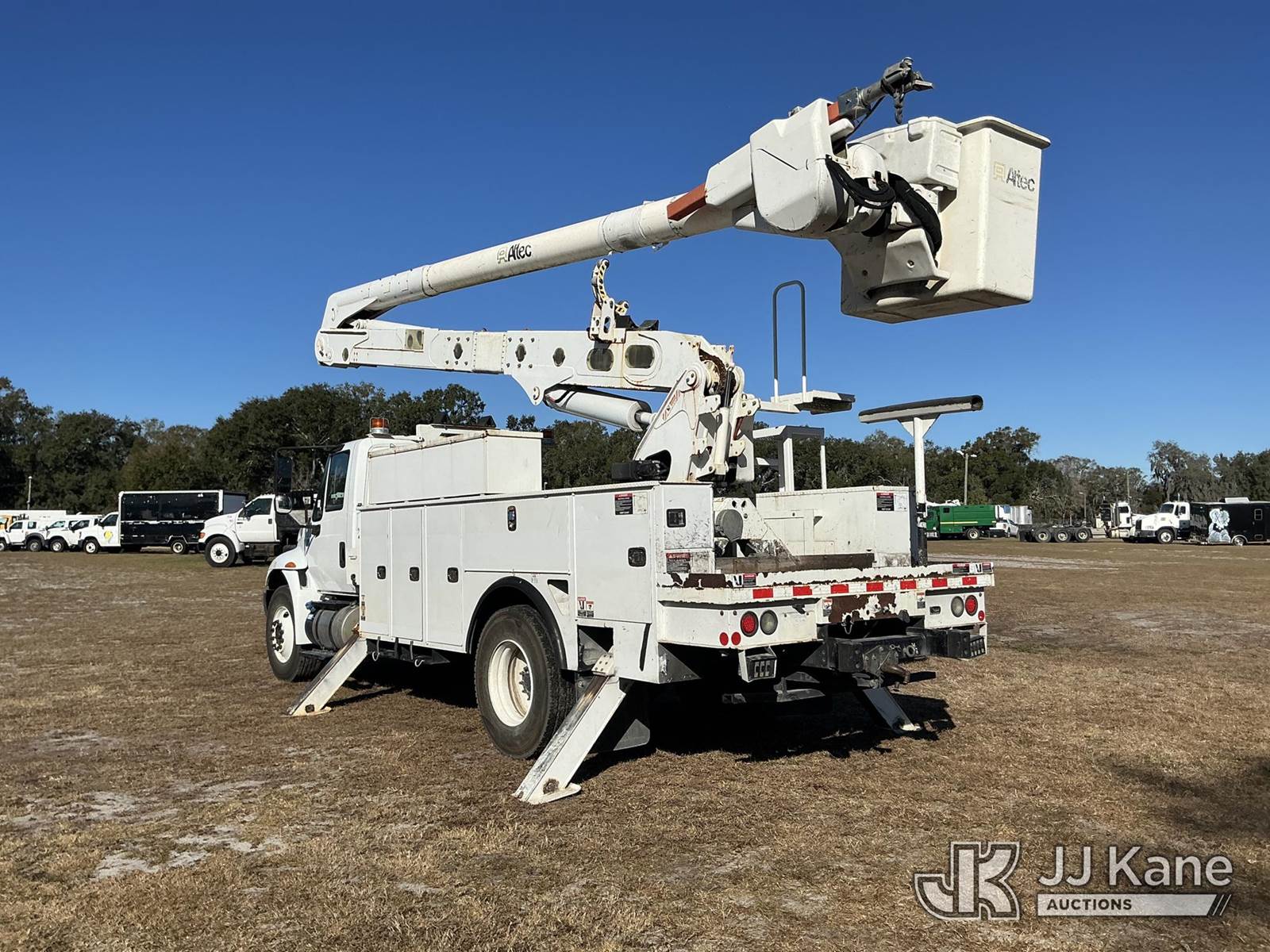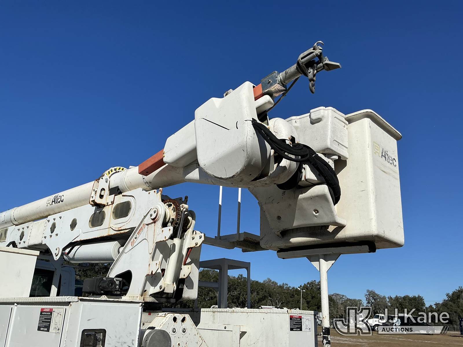 Altec AA55-MH, 61 ft, Material Handling Bucket Truck s/n 0217FH4102, with two-man bucket & 4 hyd outriggers, rear mounted on 2017 International 4300 Utility Truck, 6.7L diesel, 4X2, Auto, A/C, (74,197 miles) (Runs, Moves, Upper Operates) (Radio Not Included, Check Engine Light On, Paint Damage, Brake Light Issue) (FL Residents Purchasing Titled Items – tax, title & registration fees will be collected at the maximum rate of $400.00 under 25,999 and $800.00 for Over 26,000 and $250.00 trailers – Proof of insurance is mandatory; Out of State Residents Purchasing Title Items – tax will be collected based upon your state rate.) (Reads 12,529 hours) This is a Titled Item NOTE: This unit is being sold AS IS/WHERE IS via Timed Auction and is located in Thonotosassa, FL. For more information & removal arrangements please contact Office Staff @ 813-986-2485. (Manuals provided in cab) (Buyer is responsible for removal. Assistance by consignor or JJ Kane Auctions is not assured.)