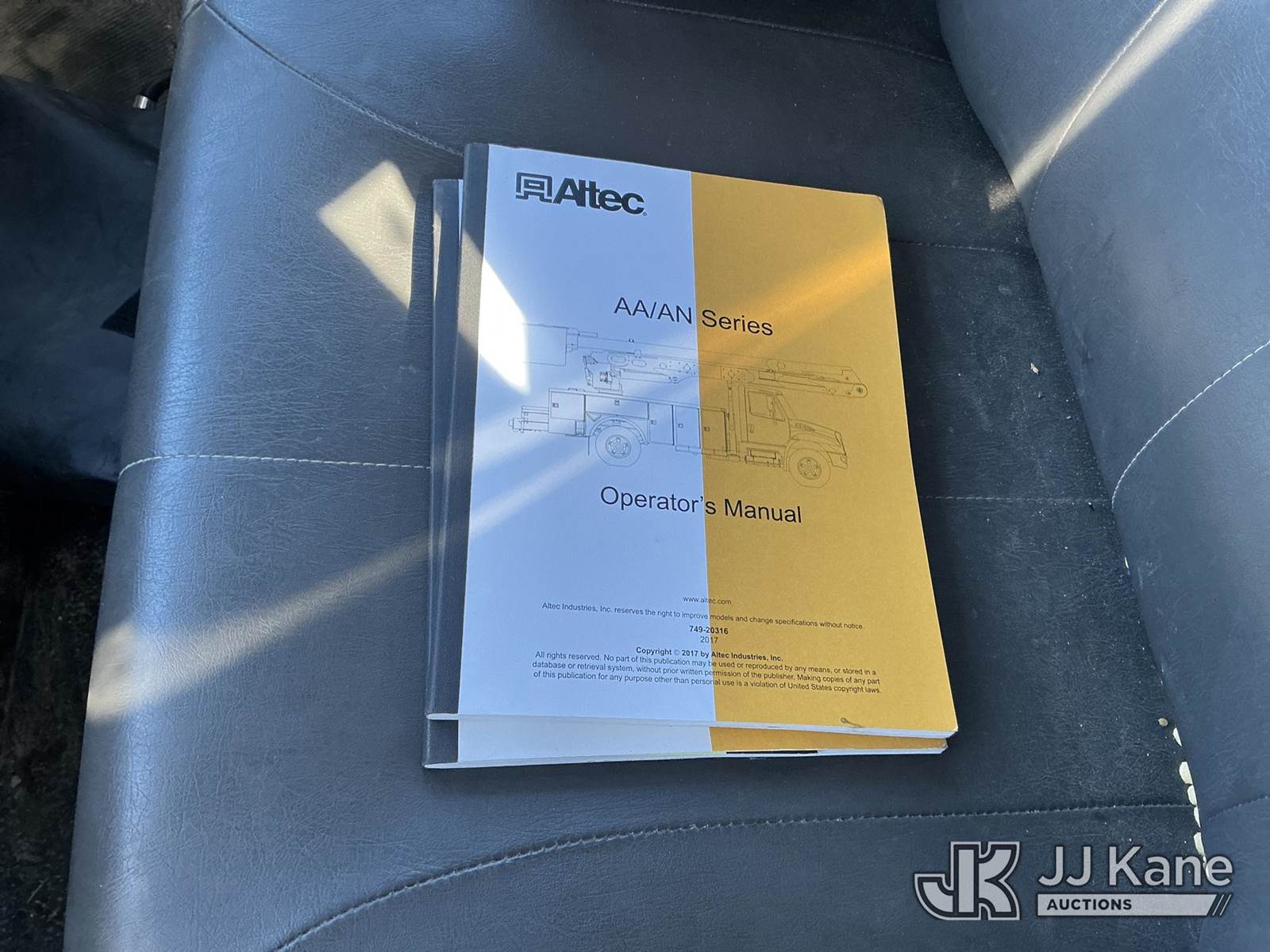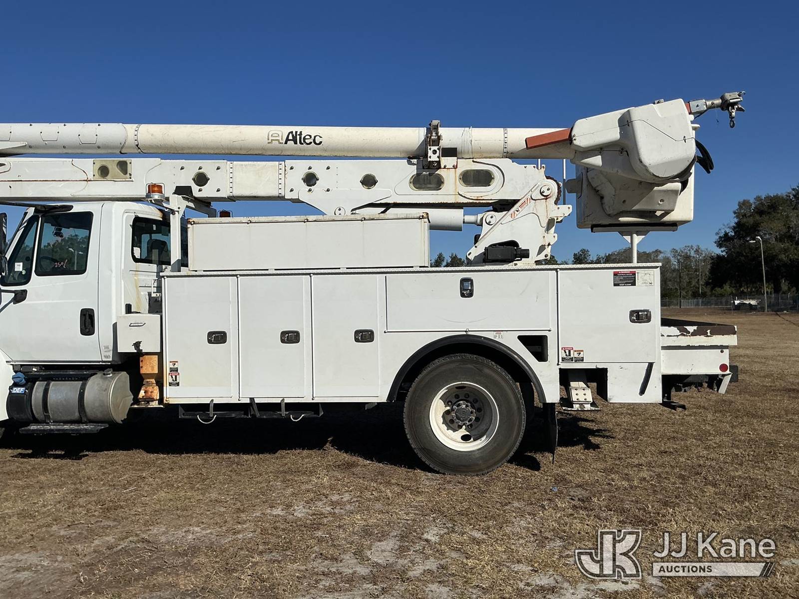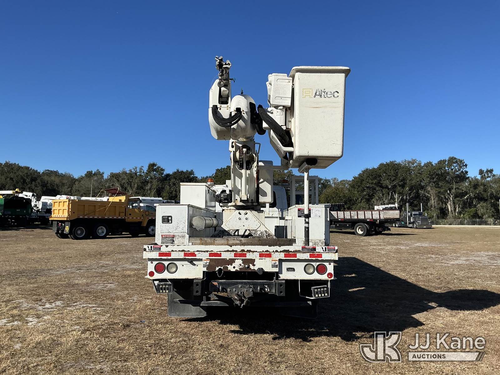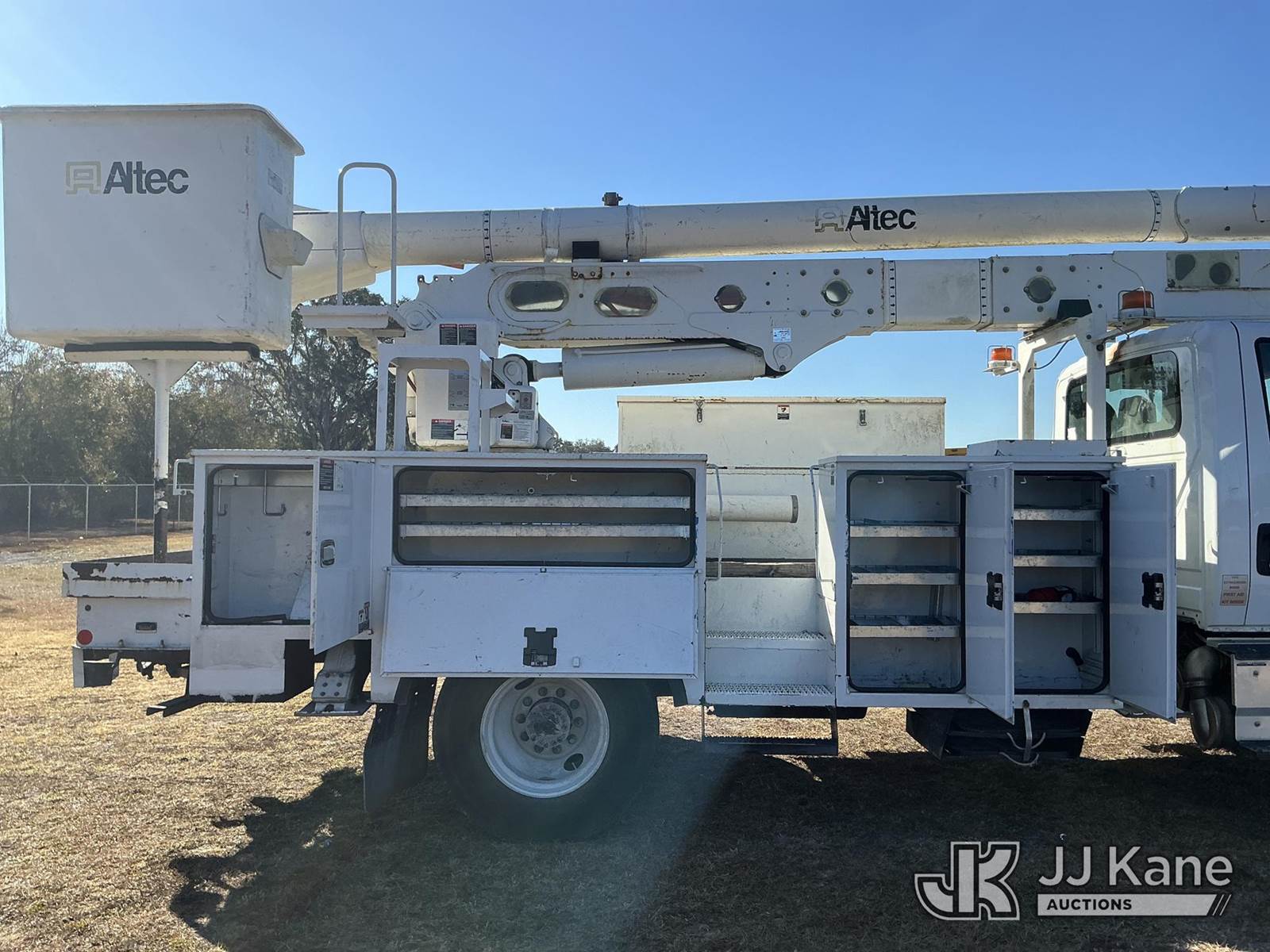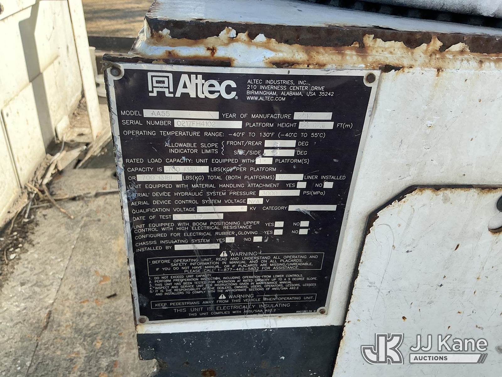 Altec AA55-MH, 61 ft, Material Handling Bucket Truck s/n 0217FH4102, with two-man bucket & 4 hyd outriggers, rear mounted on 2017 International 4300 Utility Truck, 6.7L diesel, 4X2, Auto, A/C, (74,197 miles) (Runs, Moves, Upper Operates) (Radio Not Included, Check Engine Light On, Paint Damage, Brake Light Issue) (FL Residents Purchasing Titled Items – tax, title & registration fees will be collected at the maximum rate of $400.00 under 25,999 and $800.00 for Over 26,000 and $250.00 trailers – Proof of insurance is mandatory; Out of State Residents Purchasing Title Items – tax will be collected based upon your state rate.) (Reads 12,529 hours) This is a Titled Item NOTE: This unit is being sold AS IS/WHERE IS via Timed Auction and is located in Thonotosassa, FL. For more information & removal arrangements please contact Office Staff @ 813-986-2485. (Manuals provided in cab) (Buyer is responsible for removal. Assistance by consignor or JJ Kane Auctions is not assured.)