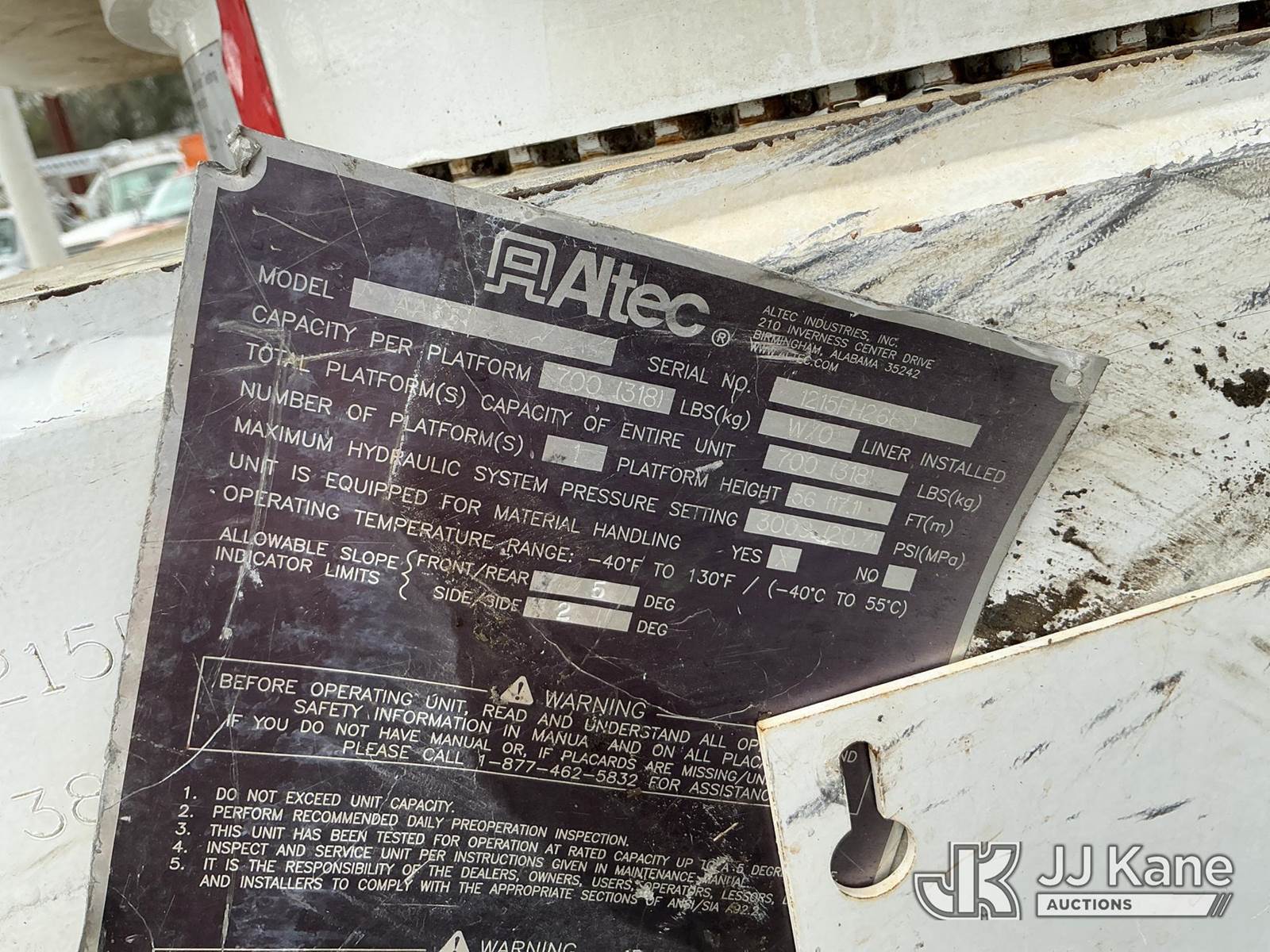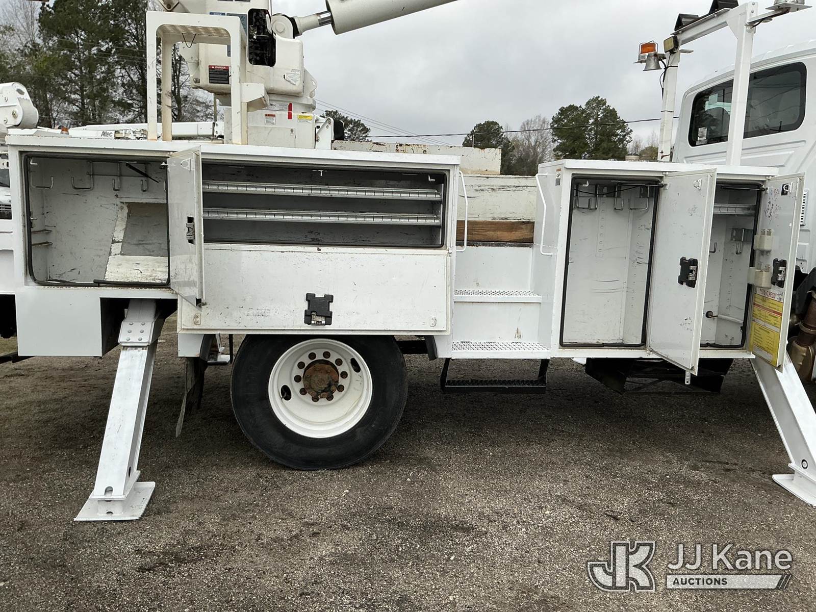 Altec AA55-MH, 61 ft, Material Handling Bucket Truck s/n 1215FH2680(YEAR 2015), with two-man bucket, rear mounted on 2017 International 7300 4x4 Utility Truck, Cummins ISB 6.7L diesel, Auto, A/C, (92,252 miles) (Runs, Moves & Upper Operates) (Remounted Upper Unit YEAR 2015) (Check Engine Light On) This is a Titled Item NOTE: This unit is being sold AS IS/WHERE IS via Timed Auction and is located in Florence, SC. Inspection & preview days for this unit are by appointment only; please contact us at contact@jjkane.com or 84-Go-JJKane for more details. (Missing manuals, See Auction Company for Manufacturers Information to obtain manuals) (Buyer is responsible for removal. Assistance by consignor or JJ Kane Auctions is not assured.)