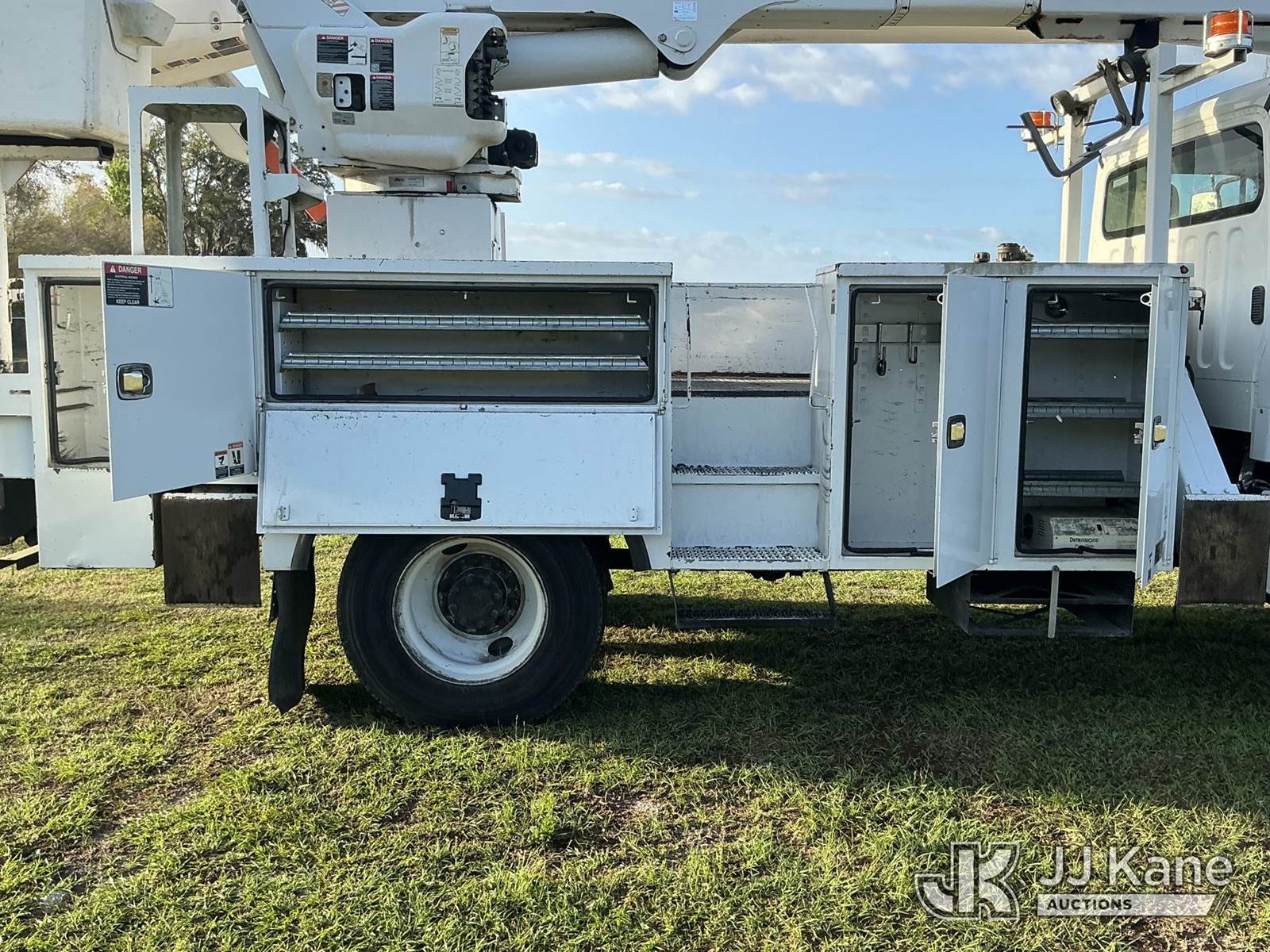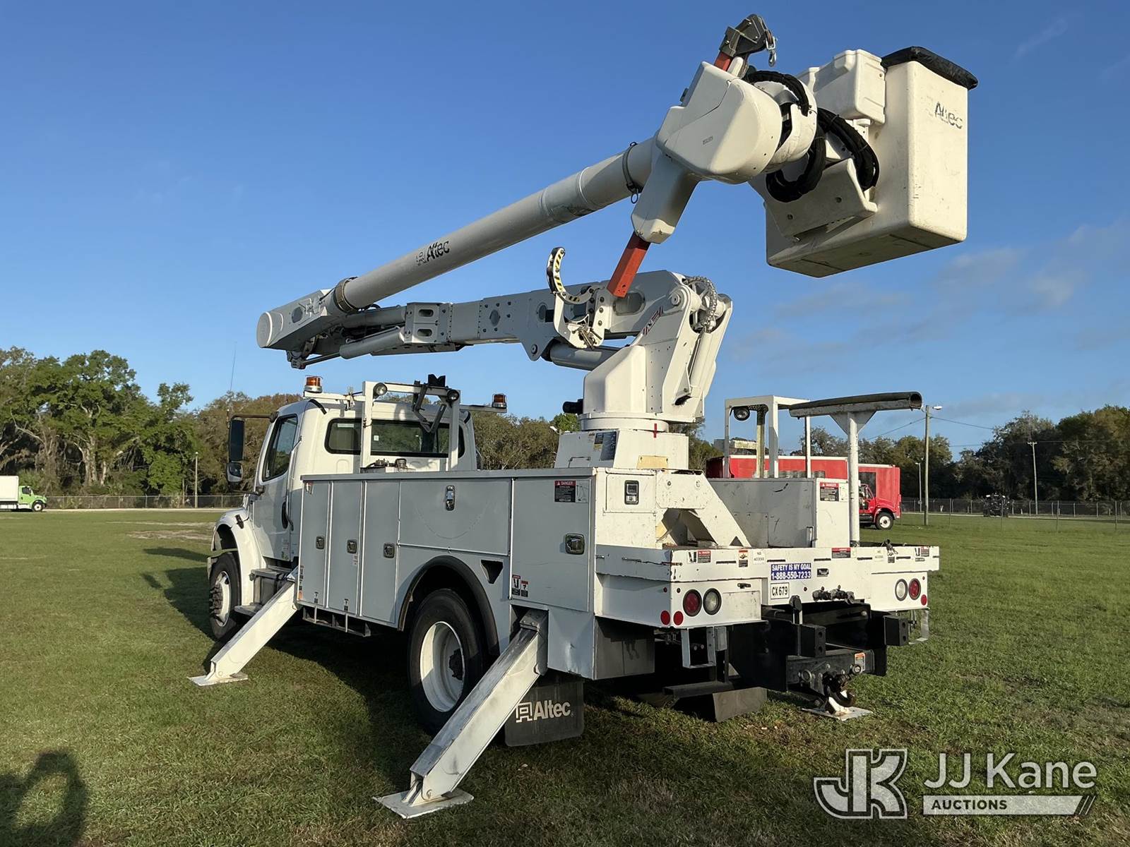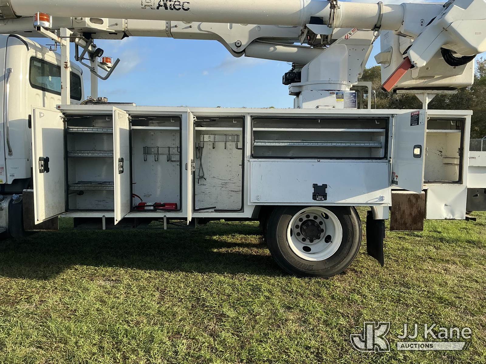 Altec AM55, 60 ft, Over-Center Material Handling Bucket s/n 0716DM6185, with two man bucket, rear mounted on 2017 Freightliner M2 106 Utility Truck, 6.7L diesel, 4X4, Auto, A/C, (149,059 miles) (Runs, Moves, Upper Operates)(FL Residents Purchasing Titled Items – tax, title & registration fees will be collected at the maximum rate of $400.00 under 25,999 and $800.00 for Over 26,000 and $250.00 trailers – Proof of insurance is mandatory; Out of State Residents Purchasing Title Items – tax will be collected based upon your state rate.) (Reads 16,805 hours) This is a Titled Item NOTE: This unit is being sold AS IS/WHERE IS via Timed Auction and is located in Thonotosassa, FL. Inspection & preview days for this unit are the 2 business days prior to the first day of items closing for this auction, item is located at 11720 N US 301 Thonotosassa, Fl 33592 and hours of operations are 8a-4p. For pre-sale questions, please contact Office Staff @ (813) 986-2485. (Manuals provided in cab) (Buyer is responsible for removal. Assistance by consignor or JJ Kane Auctions is not assured.)