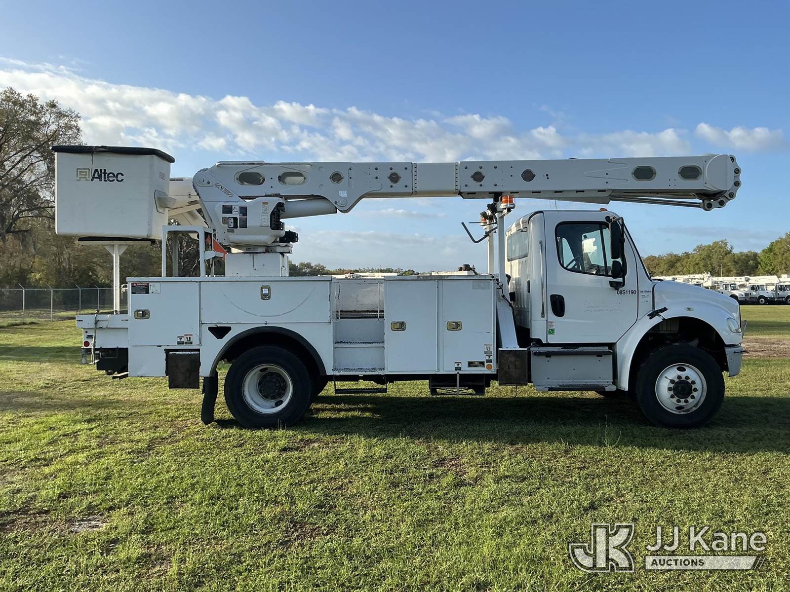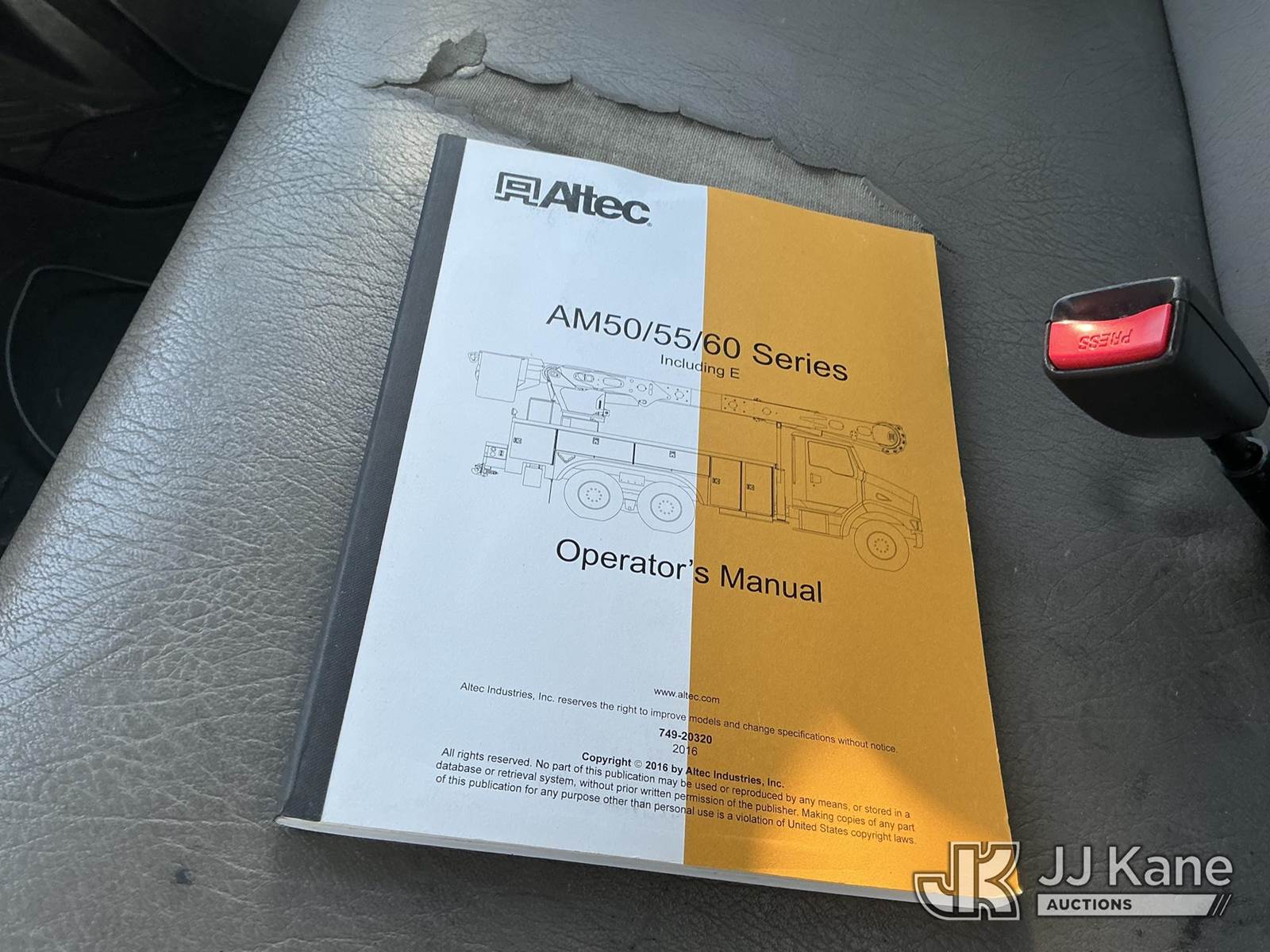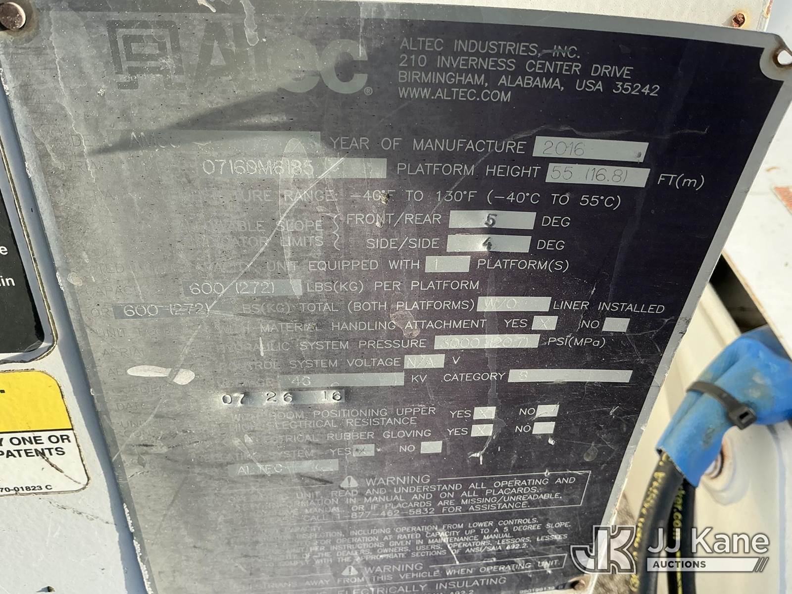 Altec AM55, 60 ft, Over-Center Material Handling Bucket s/n 0716DM6185, with two man bucket, rear mounted on 2017 Freightliner M2 106 Utility Truck, 6.7L diesel, 4X4, Auto, A/C, (149,059 miles) (Runs, Moves, Upper Operates)(FL Residents Purchasing Titled Items – tax, title & registration fees will be collected at the maximum rate of $400.00 under 25,999 and $800.00 for Over 26,000 and $250.00 trailers – Proof of insurance is mandatory; Out of State Residents Purchasing Title Items – tax will be collected based upon your state rate.) (Reads 16,805 hours) This is a Titled Item NOTE: This unit is being sold AS IS/WHERE IS via Timed Auction and is located in Thonotosassa, FL. Inspection & preview days for this unit are the 2 business days prior to the first day of items closing for this auction, item is located at 11720 N US 301 Thonotosassa, Fl 33592 and hours of operations are 8a-4p. For pre-sale questions, please contact Office Staff @ (813) 986-2485. (Manuals provided in cab) (Buyer is responsible for removal. Assistance by consignor or JJ Kane Auctions is not assured.)