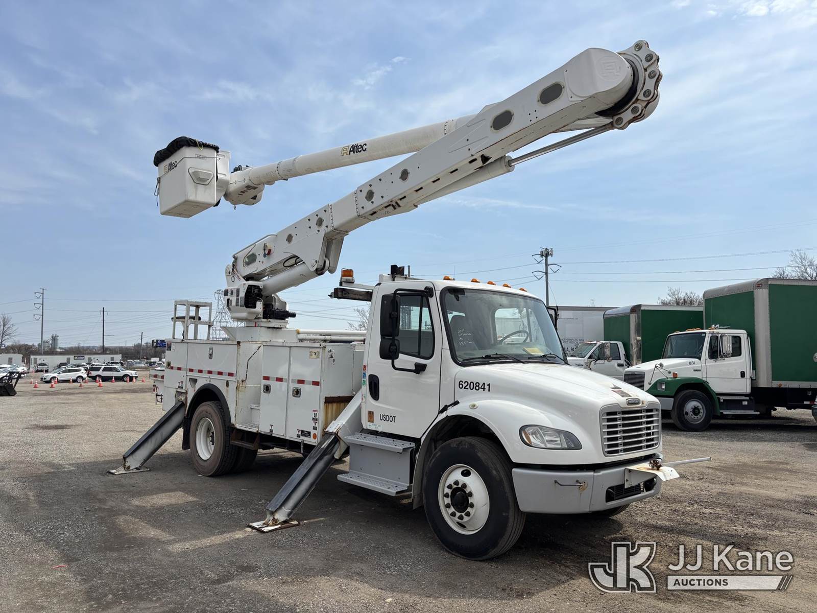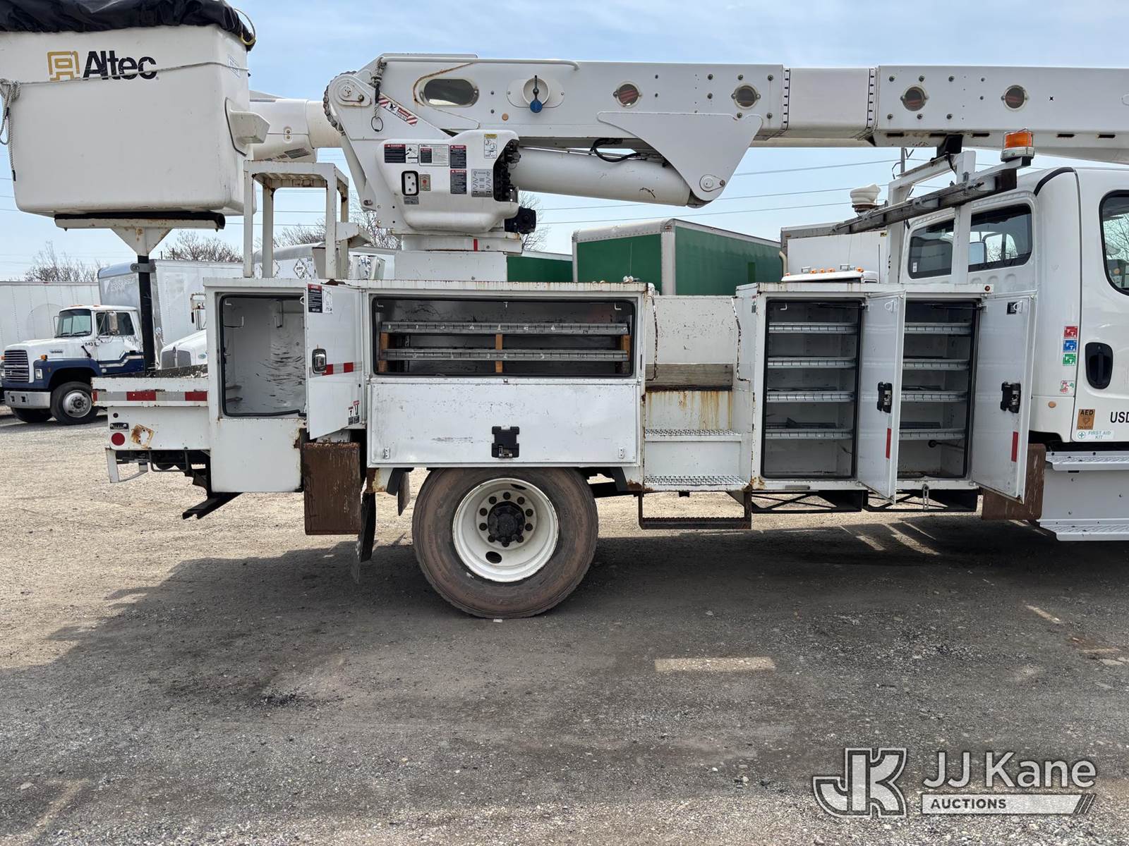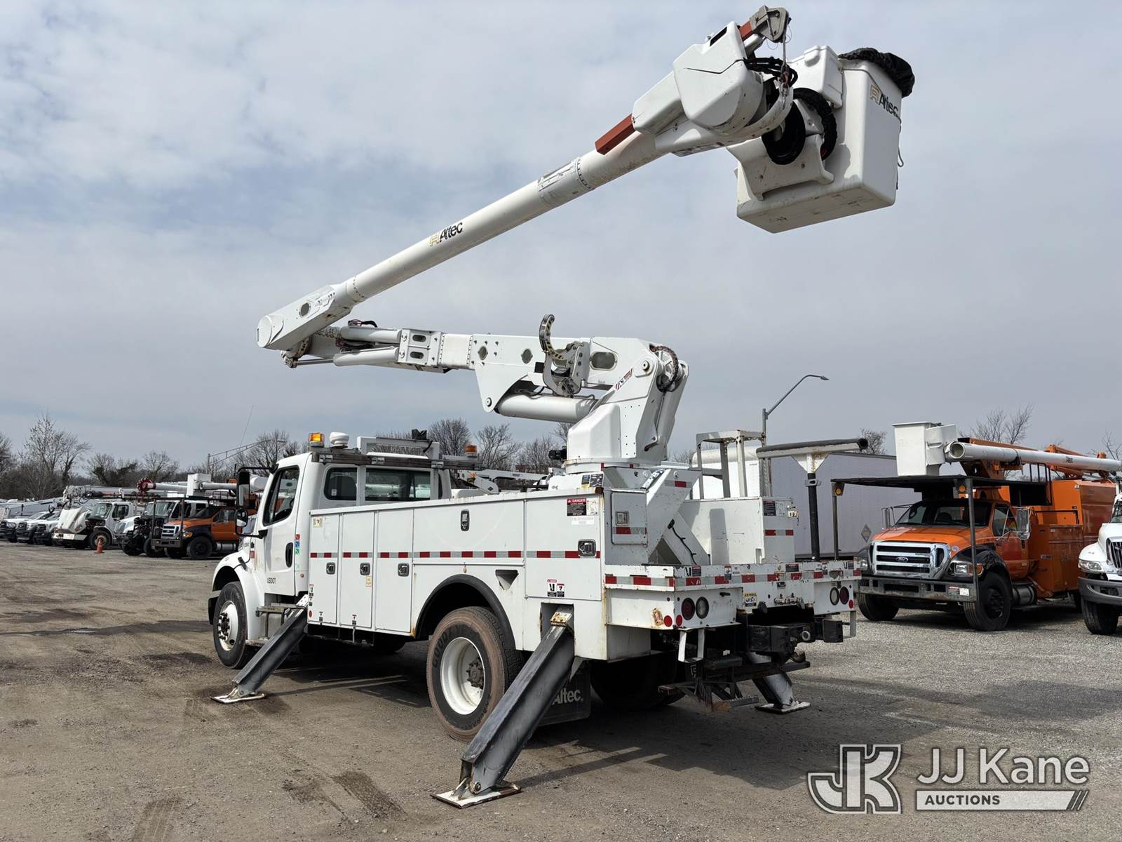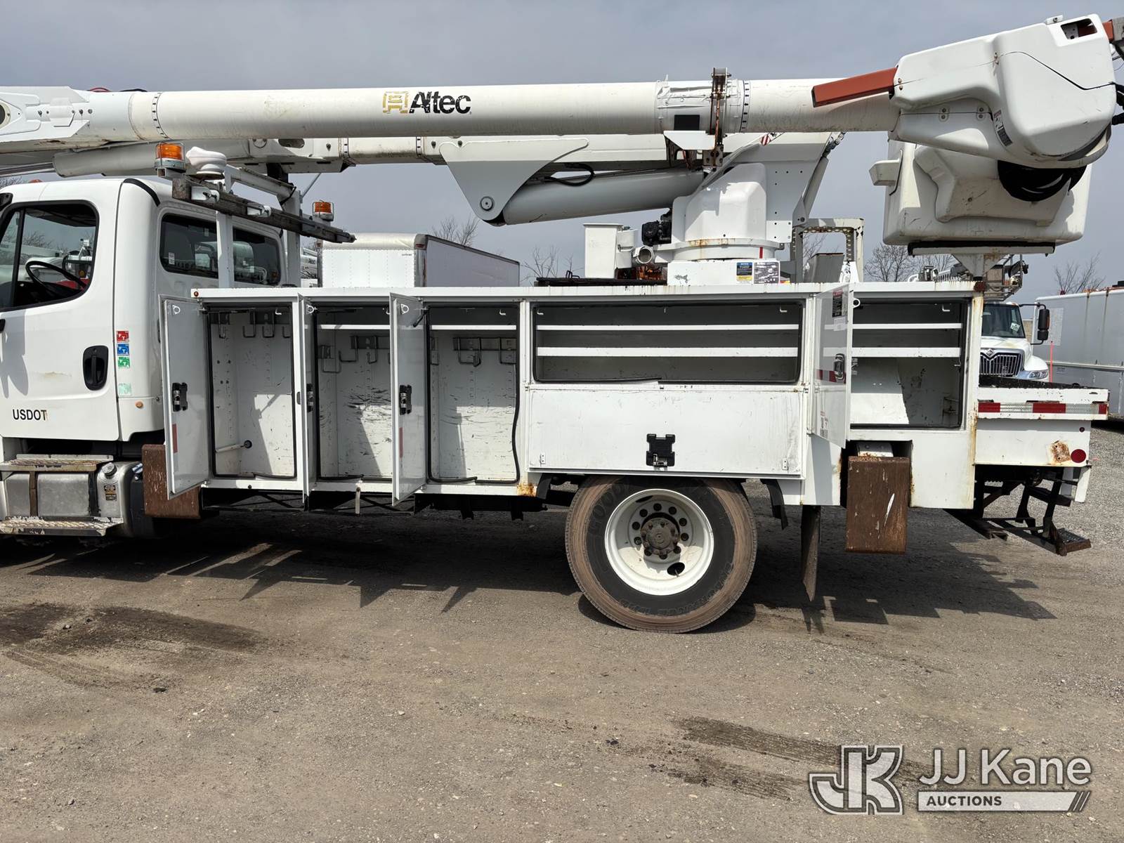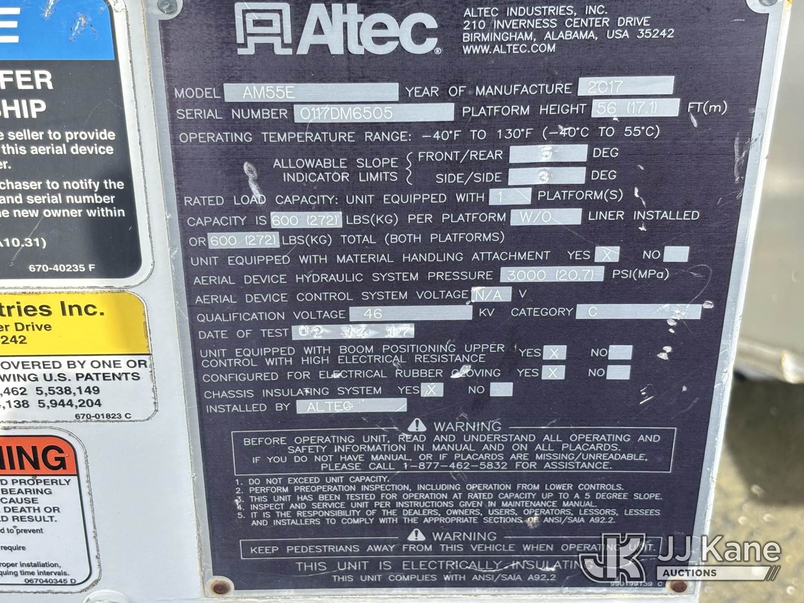 Altec AM55E-MH, 60 ft, Over-Center Material Handling Bucket Truck s/n 0117DM6505, with Two-Man Bucket & 4 Outriggers, rear mounted on 2017 Freightliner M2 106 Utility Truck, 6.7L Diesel, 4X2, Auto, A/C, (68,575 miles) (Runs, Moves & Upper Operates) This is a Titled Item NOTE: This unit is being sold AS IS/WHERE IS via Timed Auction and is located in Plymouth Meeting, PA. Inspection & preview days for this unit are the 2 business days prior to the first day of items closing for this auction, item is located at 1402 Conshohocken Rd Plymouth Meeting, PA 19462 and hours of operations are 8a-4p. For pre-sale questions, please contact Bruce Thomas @ (267) 887-0392 or bruce.thomas.jr@jjkane.com. (Manuals provided in cab) (Buyer is responsible for removal. Assistance by consignor or JJ Kane Auctions is not assured.)