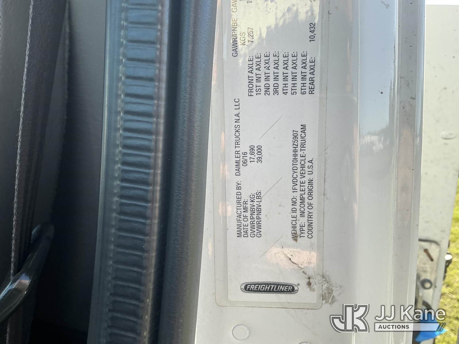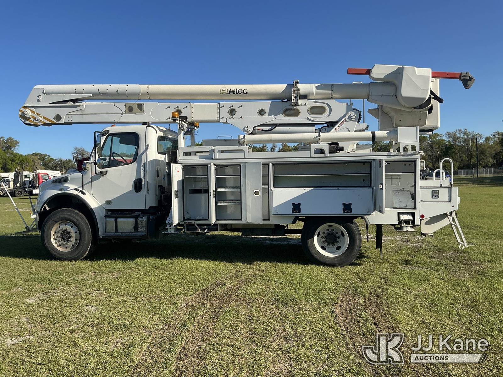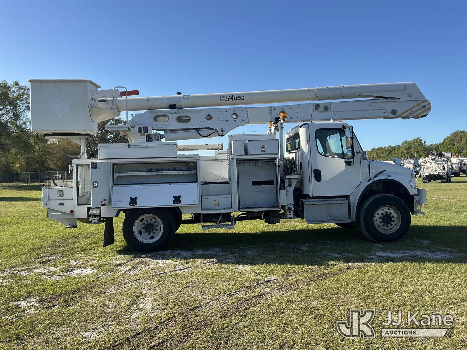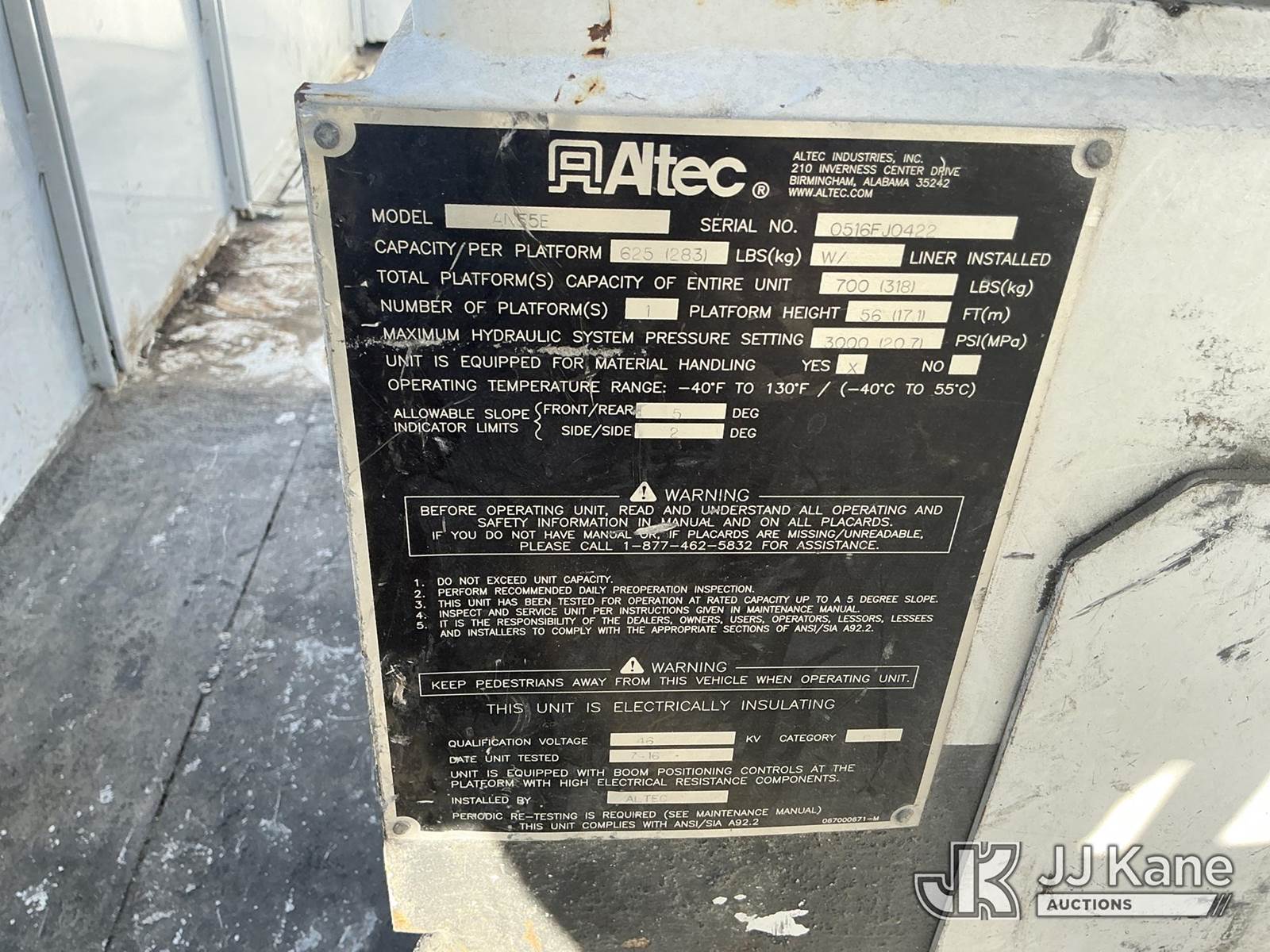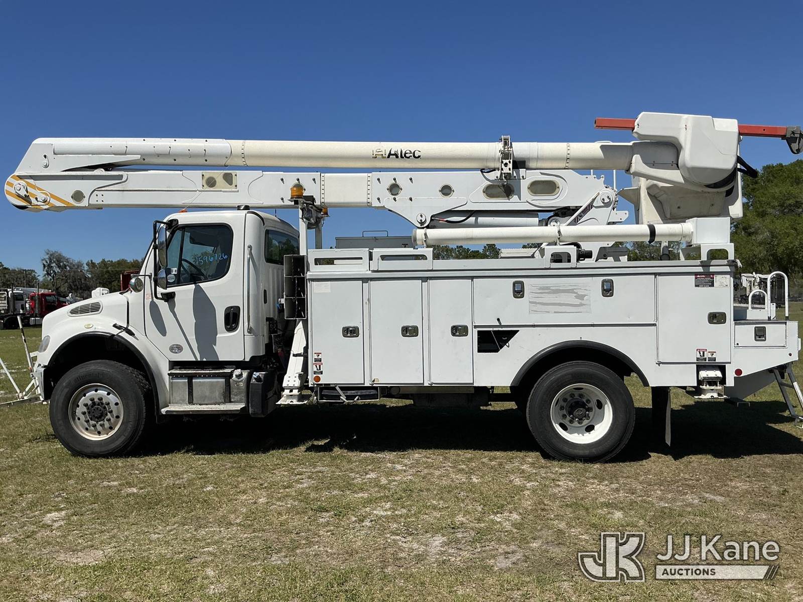 Altec AN55E, 61 ft, Material Handling Bucket Truck s/n 0516FJ0422, with two-man bucket & 4 hyd outriggers, rear mounted on 2017 Freightliner M2 106 4x4 Utility Truck, 6.7L L6 Diesel, Auto, A/C, (134,686 miles) (Runs, Moves, Upper Operates) (Missing Winch Cable) (Reads 8,513 hours) This is a Titled Item NOTE: This unit is being sold AS IS/WHERE IS via Timed Auction and is located in Thonotosassa, FL. Inspection & preview days for this unit are the 2 business days prior to the first day of items closing for this auction, item is located at 11720 N US 301 Thonotosassa, Fl 33592 and hours of operations are 8a-4p. For pre-sale questions, please contact Office Staff @ (813) 986-2485. (Missing manuals, See Auction Company for Manufacturers Information to obtain manuals) (Buyer is responsible for removal. Assistance by consignor or JJ Kane Auctions is not assured.)
