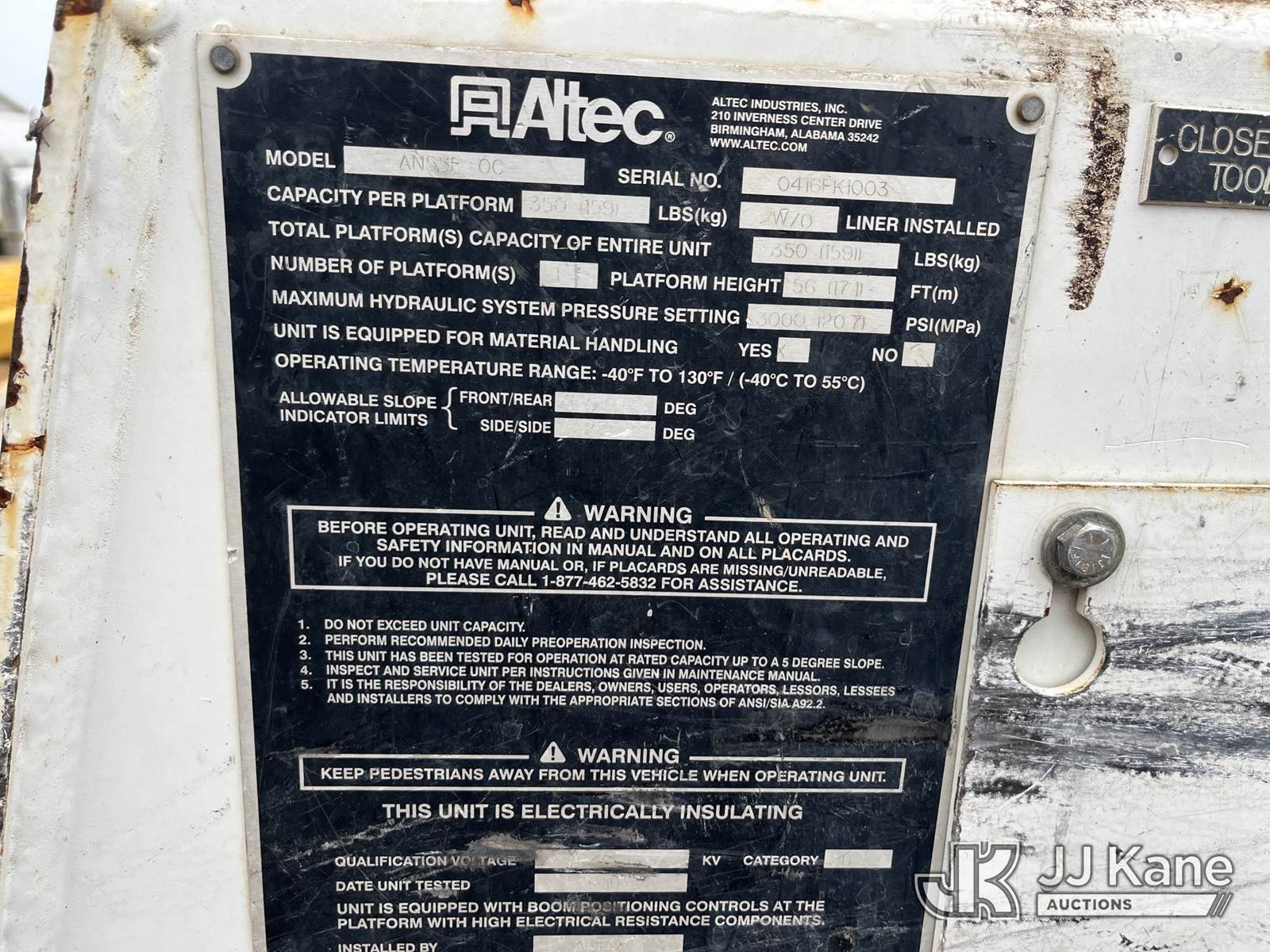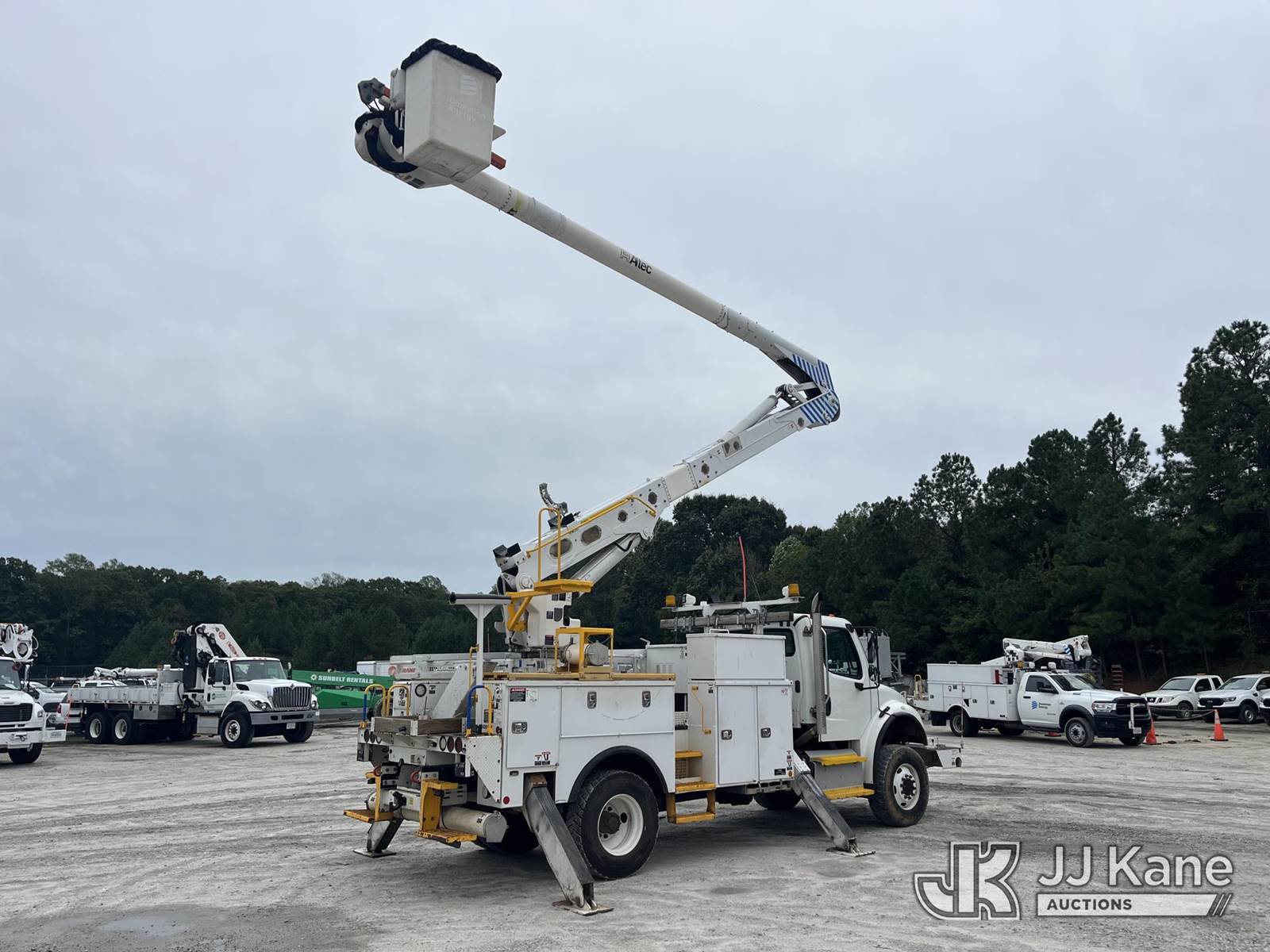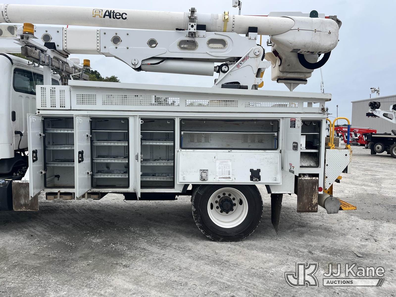 Altec AN55E-OC, 60 ft, Over-Center Material Handling Bucket Truck s/n 0416FK1003, with single man bucket, rear mounted on 2017 Freightliner M2 106 4x4 Utility Truck, Cummins 8.9L Auto, diesel, A/C, with front winch, (110,142 miles) (Runs, Moves, & Upper Operates) (TITLE DELAY) (Reads 10,561 hours) This is a Titled Item NOTE: This unit is being sold AS IS/WHERE IS via Timed Auction and is located in Chester, VA. Inspection & preview days for this unit are the 2 business days prior to the first day of items closing for this auction, item is located at 13301 Great Coastal Dr., Chester, VA 23836 and hours of operations are 7a-3p. For more information & removal arrangements please contact Zach Geller @ 804-807-4574. Buyer/Hauler must present copy of the Release Form upon arrival. Purchaser acknowledges ALL lots must be removed within 10 business days of auction, or a storage fee may be incurred. (Manuals provided in cab) Sales Tax Collected Based on Residency Title To Come From Leasing Company In 30 Days(Buyer is responsible for removal. Assistance by consignor or JJ Kane Auctioneers is not assured.)