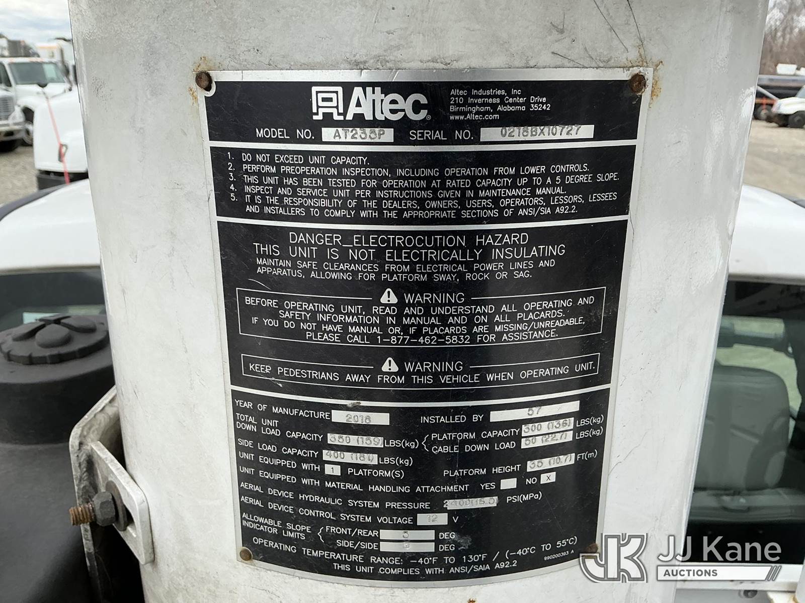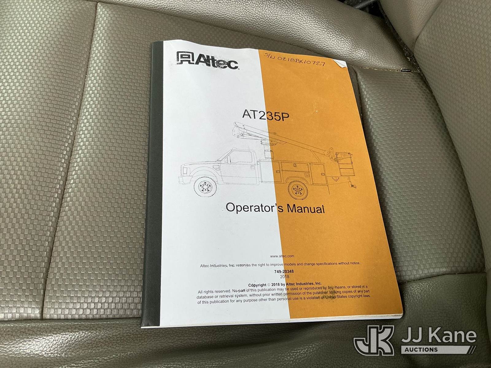 Altec AT235-P, 40 ft, Articulating & Telescopic Non-Insulated Cable Placing Bucket Truck s/n 0218BX10727, with single-man basket, mounted behind cab on 2017 Ford F-550 Service Truck, 6.7L RWD, diesel, Auto, A/C, (129,431 miles (unverified)) (Runs, Moves & Upper Operates) (Cracked Windshield ) This is a Titled Item NOTE: This unit is being sold AS IS/WHERE IS via Timed Auction and is located in Shrewsbury, MA. Inspection & preview days for this unit are the 2 business days prior to the first day of items closing for this auction, item is located at 11 Fortune Blvd Shrewsbury, MA 01545 and hours of operations are 8a-4p. For pre-sale questions, please contact Rob Gifford @ (508) 864-4126. (Manuals provided in cab) (Buyer is responsible for removal. Assistance by consignor or JJ Kane Auctions is not assured.)