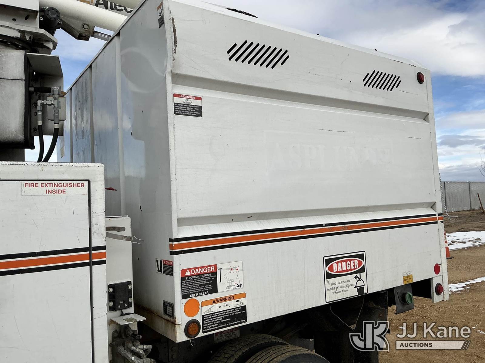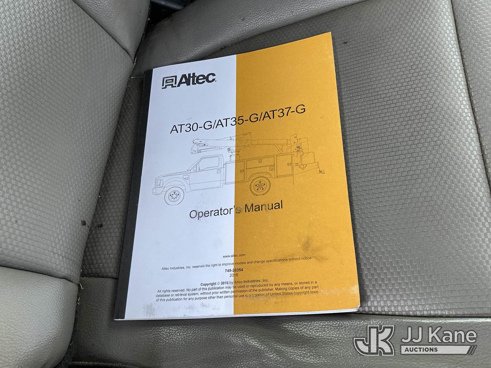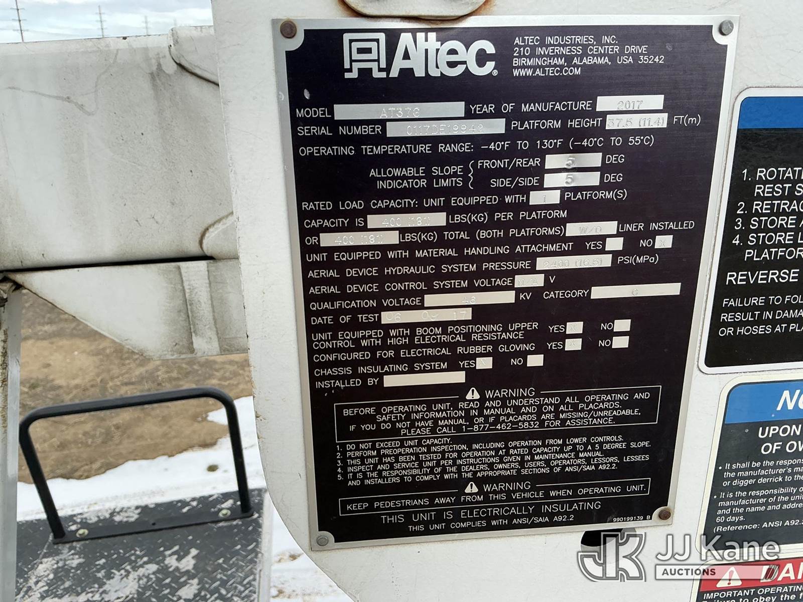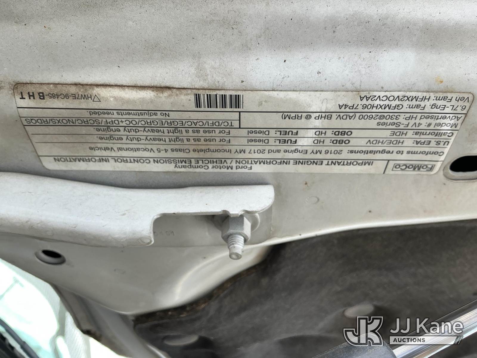 Altec AT37G, 42 ft, Articulating & Telescopic Bucket s/n 0117DE19942, with single man bucket, mounted behind cab on 2017 Ford F-550 Chipper Dump Truck, 6.7L diesel, 4wd, Auto, A/C, with Warn 16.5ti front winch, (59,671 miles) (PTO Reads: 4724 Hrs) (Runs & Moves) (Does Not Operate - Condition Unknown, PTO Does Not Engage, Boom, Dump & Outriggers Do Not Operate, Service Advance Trac Warning When PTO Engaged, Check Engine Light On: Condition Unknown) (No Emissions Provided, See Bidder Agreement) (Seller States: Needs Major Repairs, New Engine, Transmission, Hydraulic System) (Non Drive Away Removal Only: Fails Safety Inspect) (Reads 11,087 hours) This is a Titled Item NOTE: This unit is being sold AS IS/WHERE IS via Timed Auction and is located in Fort Lupton, CO. Inspection & preview days for this unit are the 2 business days prior to the first day of items closing for this auction, item is located at 2105 Northland Dr Fort Lupton, CO 80621 and hours of operations are 8a-4p. For pre-sale questions, please contact Dakota Hoffman @ (720) 621-0786. Dealer License Number 47109. (Manuals provided in cab) (Buyer is responsible for removal. Assistance by consignor or JJ Kane Auctions is not assured.)