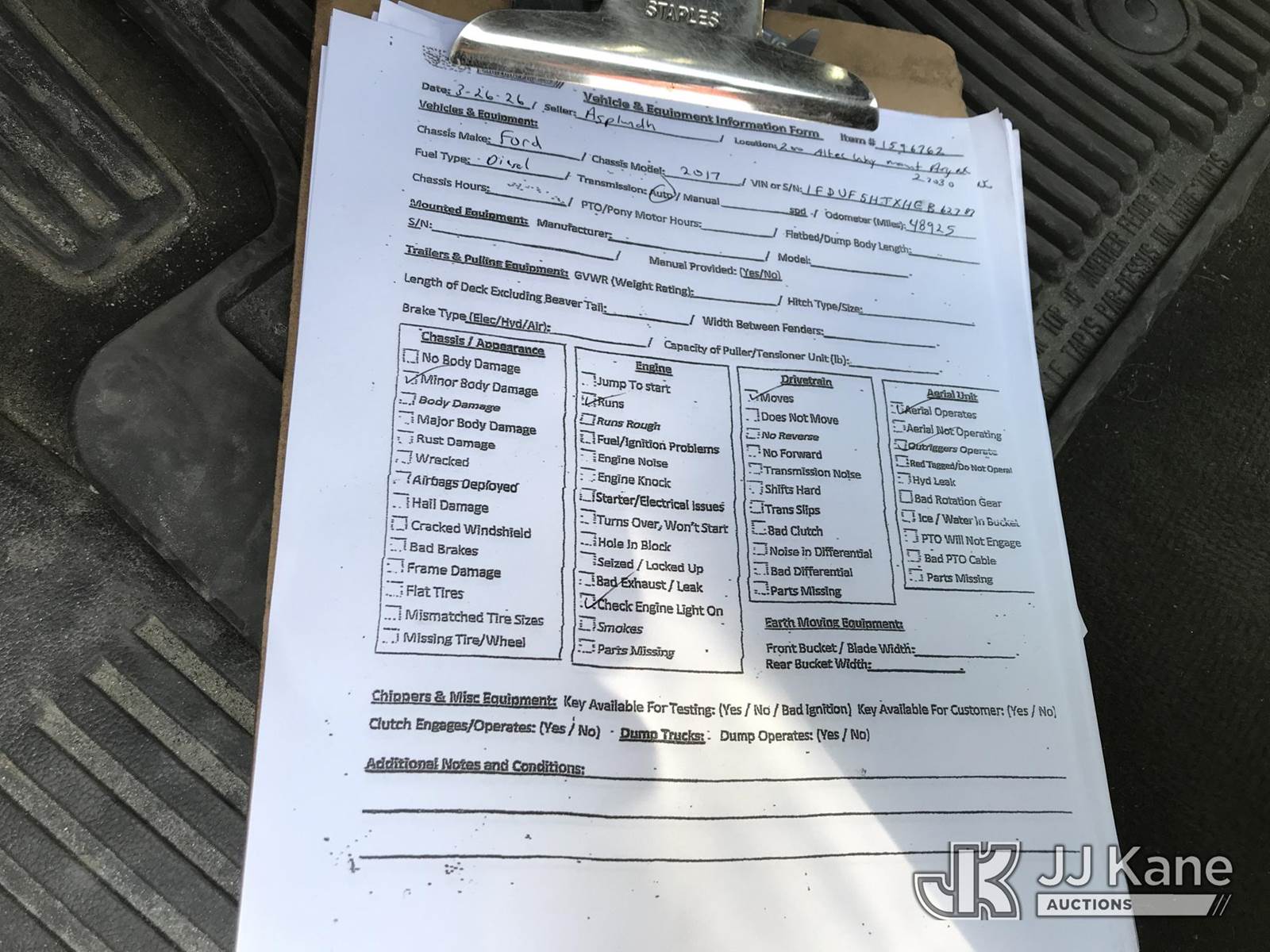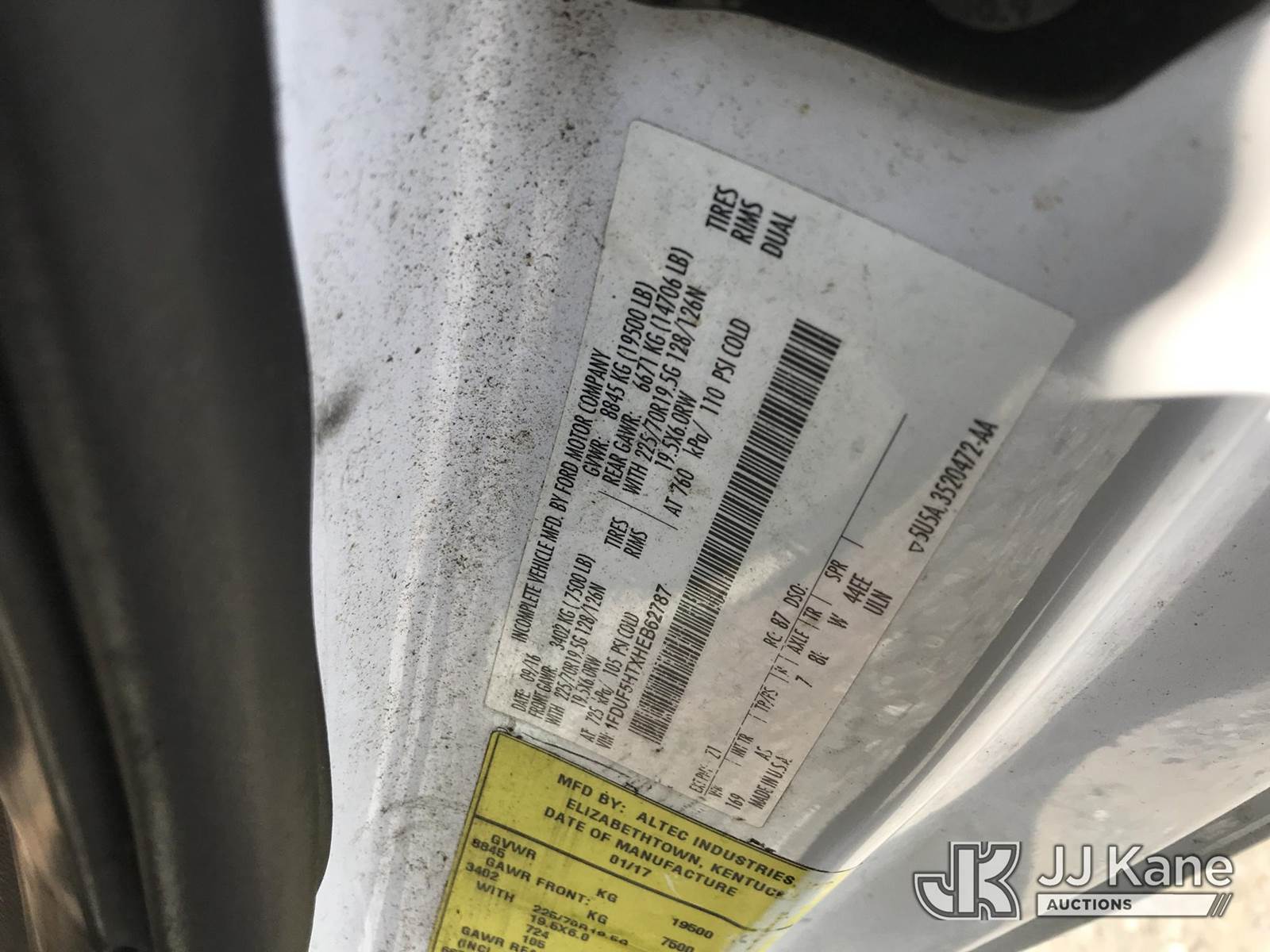 Altec AT37G, 42 ft, Articulating & Telescopic Bucket s/n 1116DE19788, with single-man bucket, mounted behind cab on 2017 Ford F550 4x4 Chipper Dump Truck, 6.7L V8 OHV 16V Diesel, Auto, with front winch, (48,925 miles) (Runs, Moves & Upper Operates) (Check Engine Light On) (Seller States: Rear end is going out and the trans pushes fluid out) This is a Titled Item NOTE: This unit is being sold AS IS/WHERE IS via Timed Auction and is located in Mount Airy, NC. Inspection & preview days for this unit are by appointment only; please contact us at contact@jjkane.com or 84-Go-JJKane for more details. (Missing manuals, See Auction Company for Manufacturers Information to obtain manuals) (Buyer is responsible for removal. Assistance by consignor or JJ Kane Auctions is not assured.)
