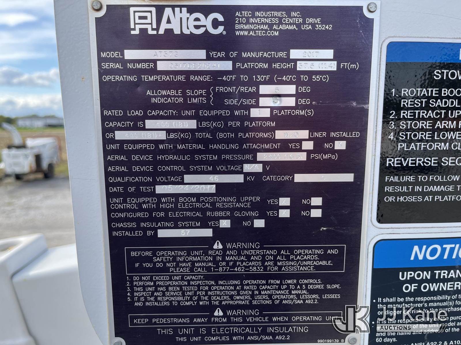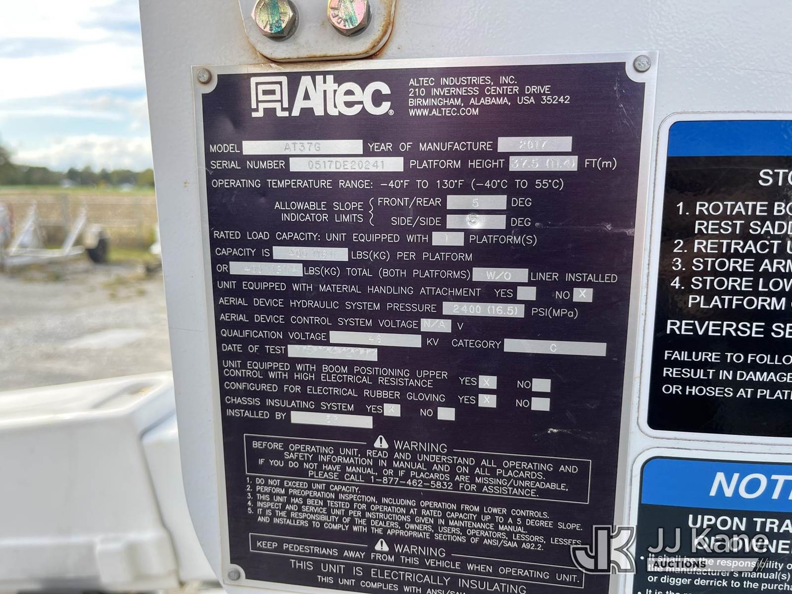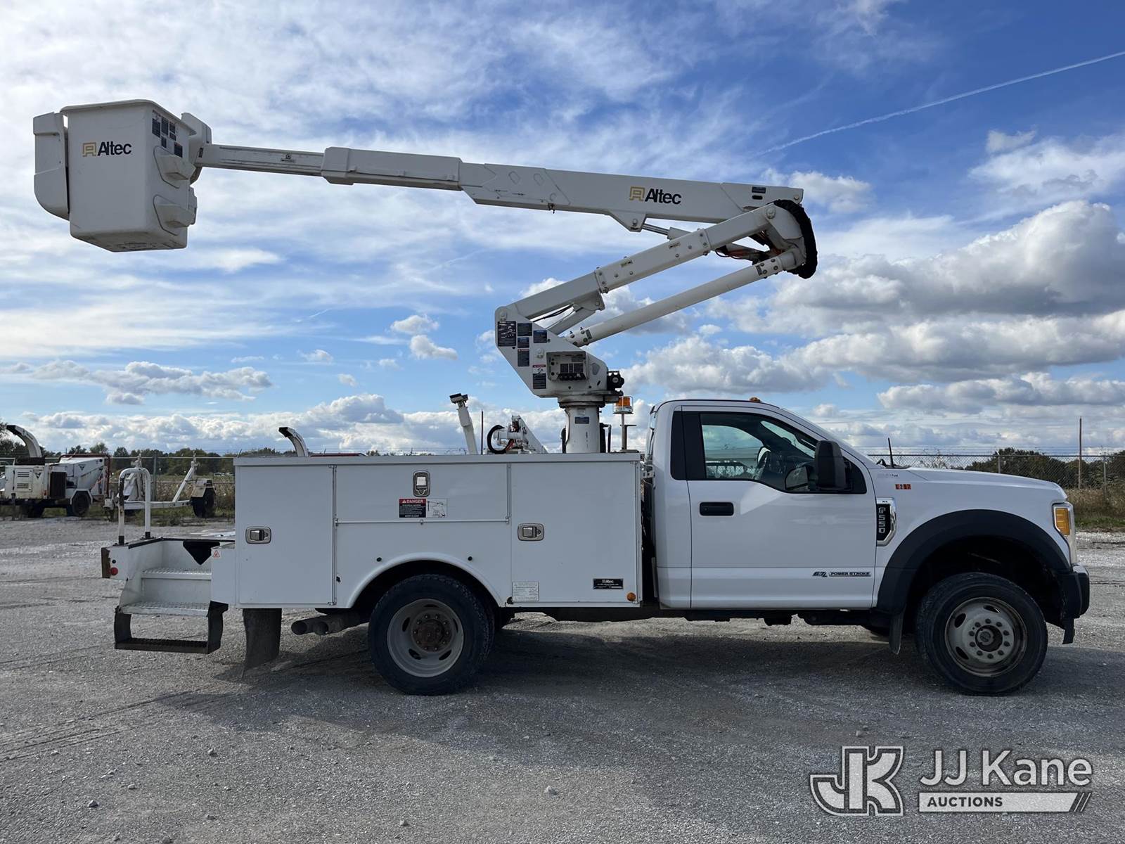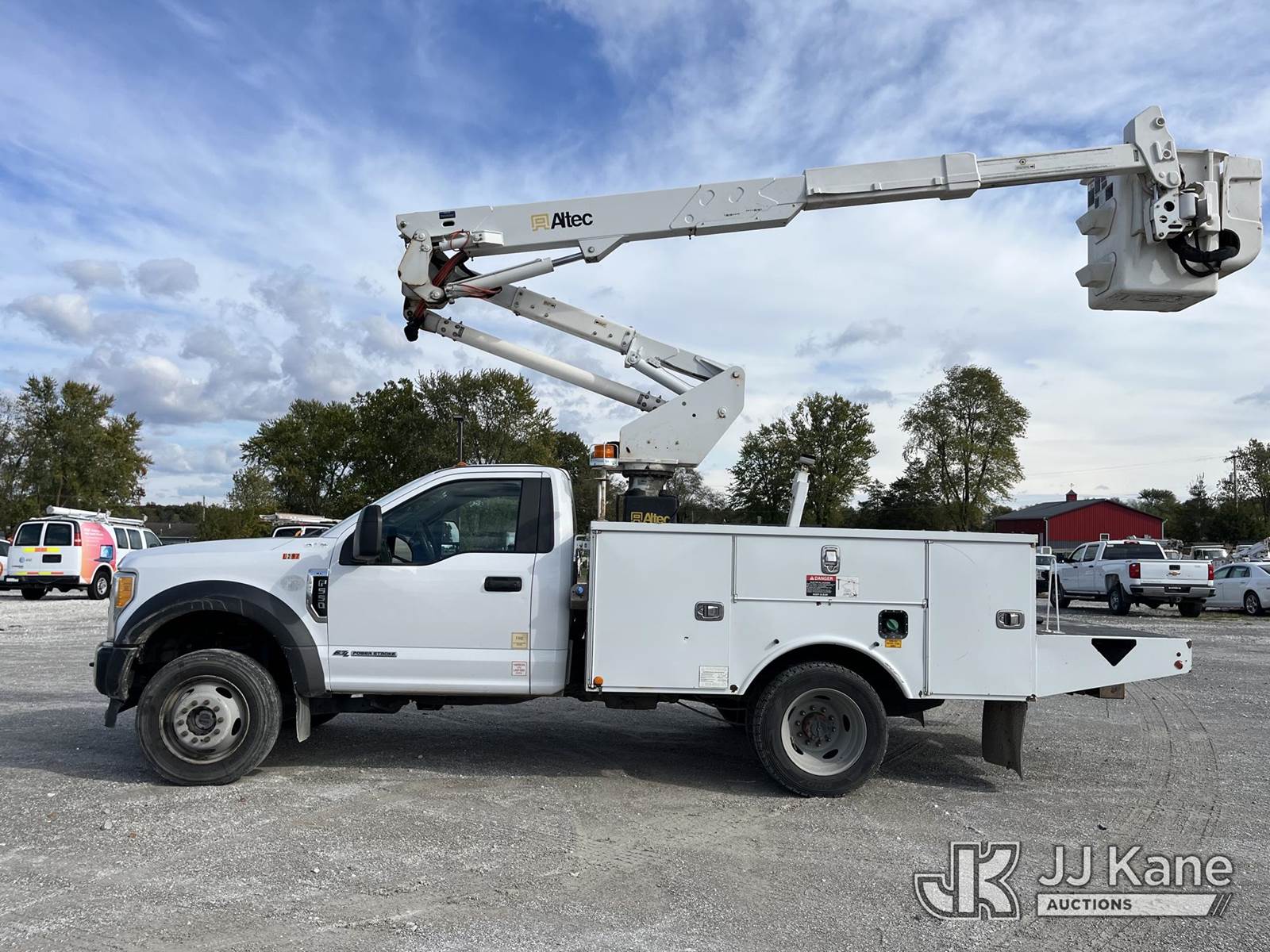 Altec AT37G, 42 ft, Articulating & Telescopic Bucket Truck s/n 0517DE20241, with single-man bucket, mounted behind cab on 2017 Ford F-550 4X4 Service Truck, 6.7L diesel, Auto, A/C, (185,280 miles) (Runs, Moves & Upper Operates) (Reads 12,346 hours) This is a Titled Item NOTE: This unit is being sold AS IS/WHERE IS via Timed Auction and is located in Hawk Point, MO. Inspection & preview days for this unit are the 2 business days prior to the first day of items closing for this auction, item is located at 25 State Highway A Hawk Point, MO 63349 and hours of operations are 8a-4p. For pre-sale questions, please contact Adam Stanek at (636) 295-1594. (Manuals provided in cab) (Buyer is responsible for removal. Assistance by consignor or JJ Kane Auctioneers is not assured.)